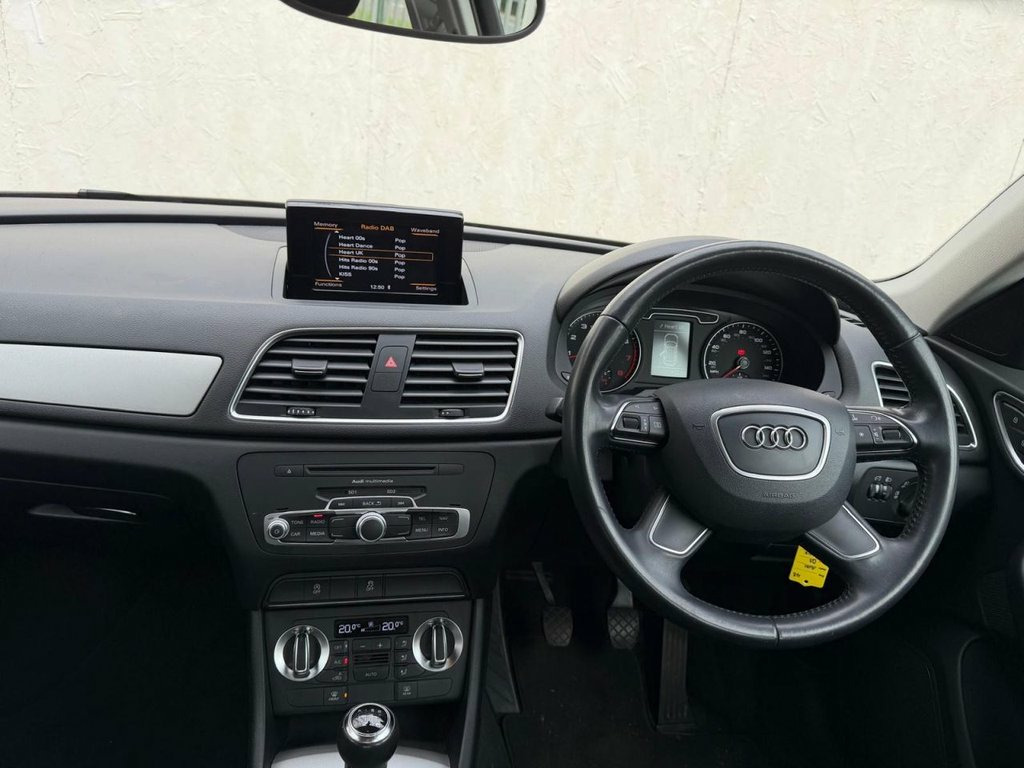 THIS WELL PRESENTED, LOW MILEAGE AUDI Q3 FINISHED IN METALLIC BLACK. COMES WITH 2 KEYS, SERVICE HISTORY AND FEATURES INCLUDING, DUAL CLIMATE CONTROL WITH AIR CONDITIONING, BLUETOOTH HANDS-FREE, REAR PARKING SENSORS, DAB DIGITAL RADIO/CD PLAYER WITH AUDI MULTI MEDIA, BLUETOOTH MEDIA CONNECTIVITY, MULIT FUNCTION LEATHER STEERING WHEEL, AUTO LIGHTS, DRIVERS HEIGHT ADJUSTER, 4 X ELECTRIC WINDOWS, ELECTRIC MIRRORS, REMOTE CENTRAL LOCKING, 6 SPEED MANUAL GEARBOX AND 17" ALLOY WHEELS. 12V Power Socket - Rear Centre Console, 17in Alloy Wheels - 7J 5-Spoke Y Design, 6.5in Display Screen, ABS - Anti-Lock Braking System, AMI - Audi Music Interface, ASR - Anti Slip Regulation, Airbags - Driver, Airbags - Front Passenger, Airbags - Front Side, Airbags - Head System, Alarm - Thatcham Category 1, Aluminium-Effect Door Mirror Housings, Anthracite Metallic Finish on Bumpers-Wh, Anti Theft Locking Wheel Bolts, Audi Drive Select, Automatic Wipers with Rain Sensor, Brake Lights - LED, Car Jack, Cloth Headlining in Lunar Silver, Concert Radio - MP3/CD Player, DAB Digital Radio, Door Mirrors - Body Coloured with Integr, Door Mirrors - Electrically Adjustable a, Door Sill Trims with Alum