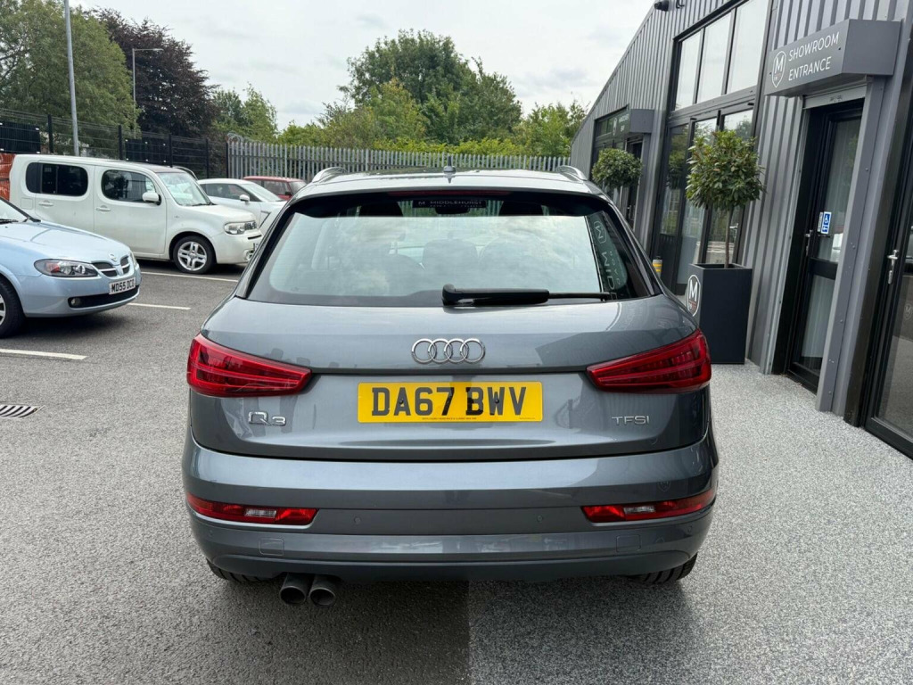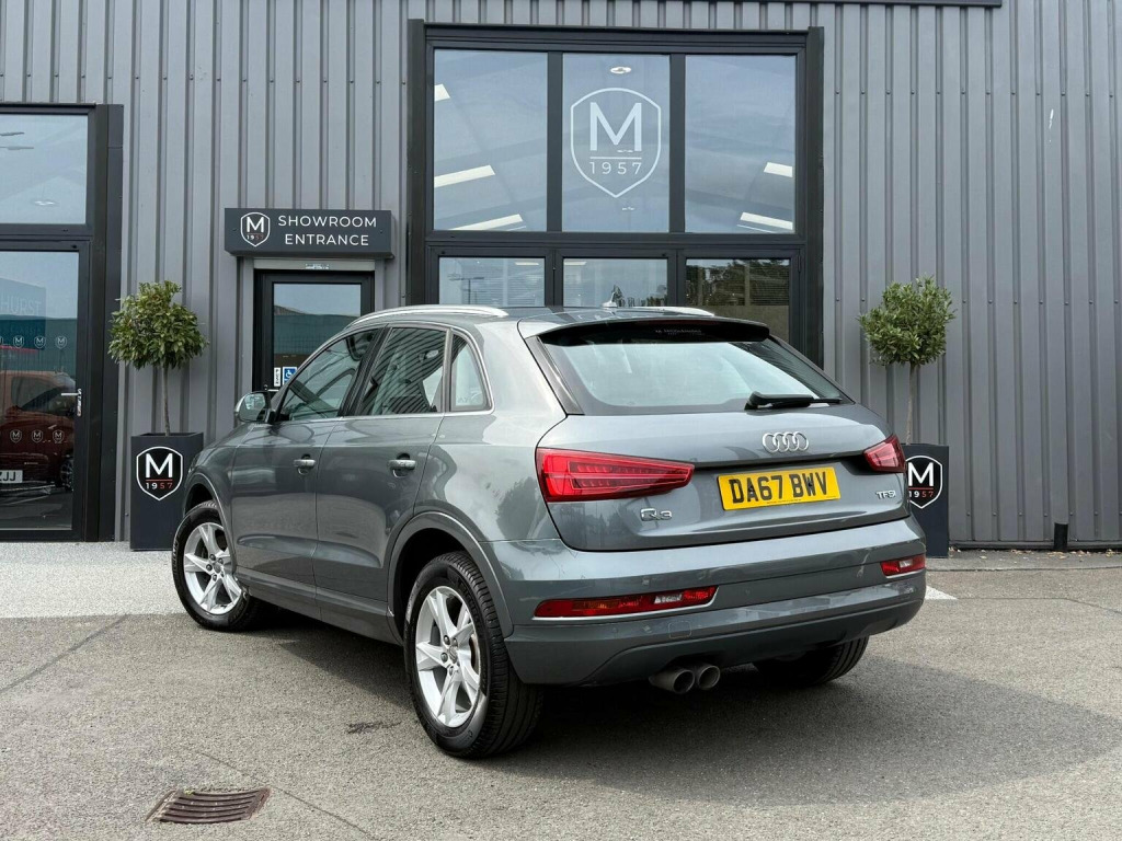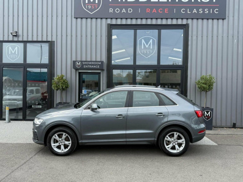 Middlehurst Road Race & Classic present this 2017/67 plate Audi Q3 1.4 TFSI Sport 6 speed manual finished in metallic Monsoon Grey with grey Sport cloth interior. It was first registered 26/10/2017 and has covered just 30,853 miles from new by its 2 registered keepers. Supplied serviced with 12 months MOT and 6 months Middlehurst Road Race & Classic warranty, With only 30,853 miles on the clock, this 2017 Audi Q3 is a rare find. As a TFSI Sport model with a Sport trim and a 1.4L petrol engine, this vehicle combines style and efficiency. The car includes dual-zone electronic climate control, ensuring a comfortable environment for both driver and passengers, and rear parking sensors to make parking a breeze. Xenon Plus headlights with LED daytime running lights provide enhanced visibility and a modern look, while the Bluetooth interface allows for seamless connectivity. The light and rain sensor automatically adjusts the headlights and wipers as needed, adding to the convenience. For peace of mind, a 6-month warranty is included, and a 12-month MOT will be provided on purchase. This Audi Q3 stands out with its fuel economy, achieving up to 51 mpg, meaning fewer trips to the petrol station and reduced running costs. The low CO2 emissions also make it an environmentally conscious choice, helping to reduce your carbon footprint. Furthermore, the vehicle can accelerate from 0 to 62mph in just 9.2 seconds, offering a responsive and engaging driving experience.