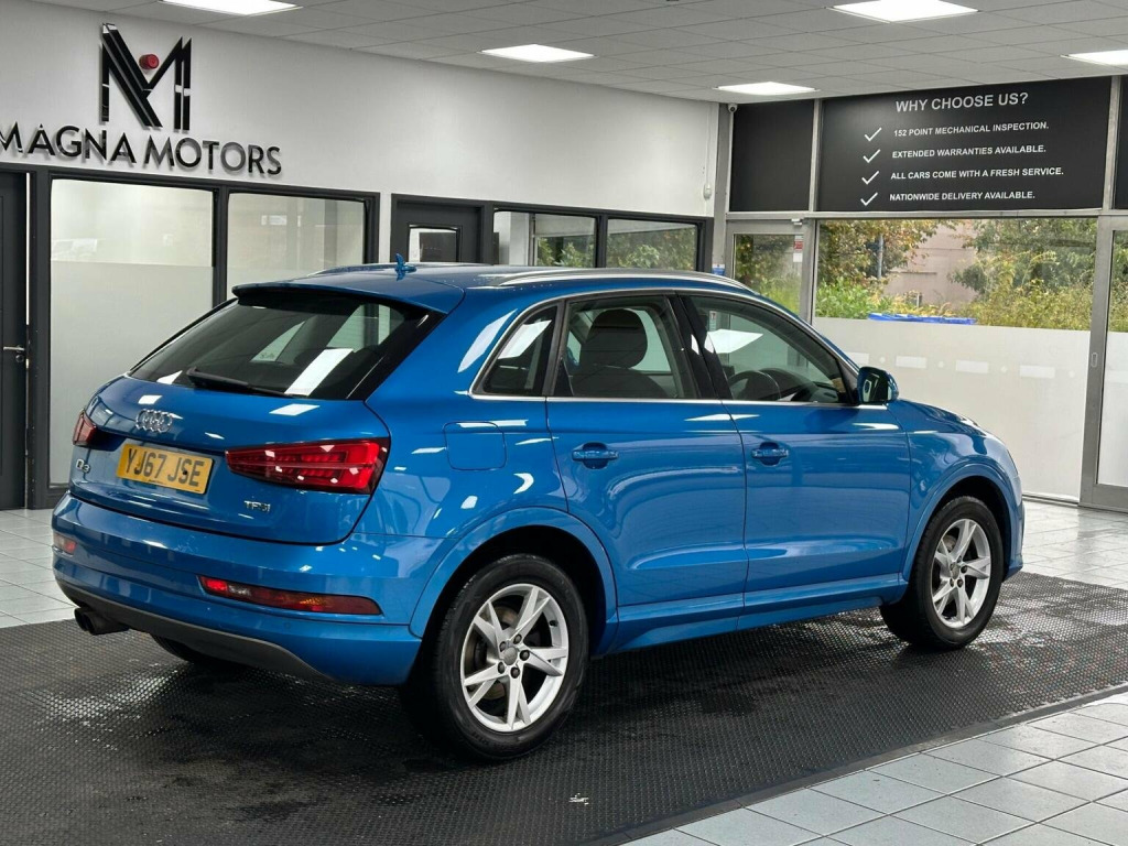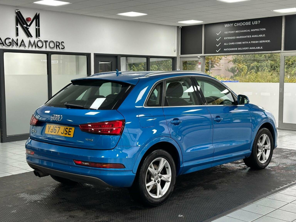 This 2018 Audi Q3 TFSI Sport is finished in the popular Sport trim, this stylish SUV is powered by an efficient 1.4 litre petrol engine, meeting Euro 6 emissions standards. Inside, youll find a comfortable and convenient cabin featuring Dual Zone Electronic Climate Control for personalised comfort, and a Bluetooth interface for seamless connectivity. The Q3 also comes equipped with Xenon Plus headlights with LED daytime running lights for enhanced visibility, rear parking sensors to aid manoeuvring, and a light and rain sensor that automatically adjusts the headlights. Experience impressive performance with this Audi Q3, accelerating from 0 to 62 miles per hour in just 8.9 seconds. This model also stands out with its excellent fuel economy, achieving up to 48 miles per gallon, and low CO2 emissions, making it a more economical and environmentally conscious choice compared to similar vehicles.