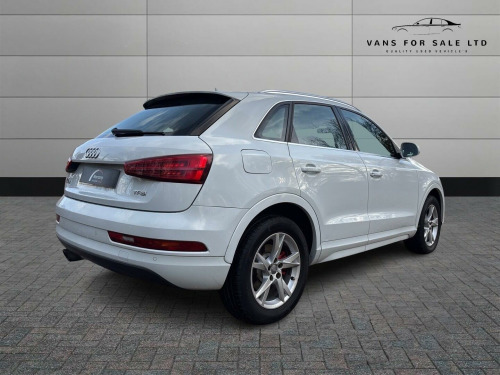 This 2017 Audi Q3 TFSI Sport is a well maintained example of this popular compact SUV. It features a 1.4 litre petrol engine and is Euro 6 compliant, meaning it meets the latest emissions standards. The Sport trim level includes Xenon Plus headlights with distinctive LED daytime running lights, and an automatic headlight function activated by the light and rain sensor. Inside, you'll find dual zone electronic climate control for personalised comfort and a Bluetooth interface for seamless connectivity. Parking is made easier with the inclusion of rear parking sensors.This Audi Q3 offers an impressive fuel economy of 48 miles per gallon, demonstrating its efficiency. Its low CO2 emissions also contribute to its economical running costs. For those who appreciate performance, it can accelerate from 0 to 62 miles per hour in just 8.9 seconds. These highlights indicate that this Q3 provides a compelling blend of efficiency, technology, and driving enjoyment compared to other vehicles in its class. Reg; HN67 OHXNav Card Required for Satellite Navigations Systems Administration fees are applicable with 3rd party finance companies to be paid as a deposit.Finance Available From 9.9% APR - *Subject to Status------------------------------------Please call = 07950663208 - 07537123749 - 01164849254Website: vansforsaleltd.co.uk - carsandvansforsaleltd.co.uk Email: [email protected] also stock Audi - A1, A3, A4, A5, A6, A7, Q3,Q5,Q7BMW 1 Series, 3 Series, 6 series, 116i, 116d, 118i, 118d, 320dMercedes, S Class, A Class, B Class, C Class, E Class, AMG, CLK, SLK Volkswagen, Golf, Polo, TiguanFord, Kuga, Focus, Fiesta, ST, Titanium, Zetec, RangerVauxhall, Astra, EcoFlexPeugeot, 107, 207, 208, 308, 3008, 5008, Active, SportLand Rover, Defender, Range Rover, Evoque, SportRenault - Hyundai - Porsche - Bentley Transit,Custom,Movano,Master,Vivaro,. 17in Alloy Wheels - 7J 5-Spoke Y Design, 4-Way Electric Lumbar Support for Front Seats, 6.5in Colour Display Screen, 8 Passive Speakers, AMI - Audi Music Interface, Aluminium Roof Rails, Aluminium Window Trims, Anti Theft Locking Wheel Bolts, Audi Drive Select, Bluetooth Interface, Body Coloured Door Mirrors, Cloth Headlining, Concert Radio, DAB Digital Radio, Door Sills with Aluminium Inlays, Driver - Front Passenger - Front Side and Head Airbag System, Drivers Information System - DIS, Dual-Zone Electronic Climate Control, Dynamic Suspension, Efficiency Program in the Drivers Information System - DIS, Electric Windows - Front and Rear, Electromechanical Parking Brake, Electromechanical Power Steering - Speed-Sensitive Provides a Precise Steering Feel at High Speeds and Excellent Assistance when Parking., Electronic Stability Programme - ESP includes ABS-EBD-ASR-EDL, Extendable Luggage Compartment Cover, First Aid Kit, Floor Mats - Front and Rear in Velour, Front Centre Armrest, Front Lip and Rear Diffuser in Grey, Front and Rear Fog Lights, Full Body-Colour Paint Finish, Heated Windscreen Washer Jets, ISOFIX Child Seat Mounting, Inlays - Micrometallic Flex Silver, Light and Rain Sensor, Rear Parking Sensors, Remote Central Locking, Reversible Luggage Compartment Floor, Satellite Navigation System - SD Card Based, Seat Belt Monitoring, Secondary Collision Brake Assist, Space Saver Spare Wheel, Split-Folding Rear Seats, Sport Bodystyling, Steering Wheel - 3-Spoke Leather-MultiFunction-Shift Paddles-Q-Design, Steering Wheel - Height and Reach Adjustable, Thatcham Category 1 Alarm and Immobiliser, Tool Kit and Car Jack, Tow Bar Bracket Preparation, Tyre Pressure Loss Indicator, Voice Control System, Warning Triangle, Washer Fluid Level Indicator, Windscreen with Sunband, Xenon Plus Headlights with LED Daytime Running Lights. Part service history