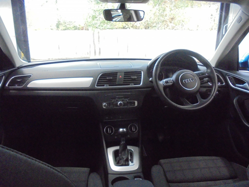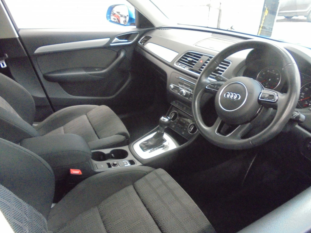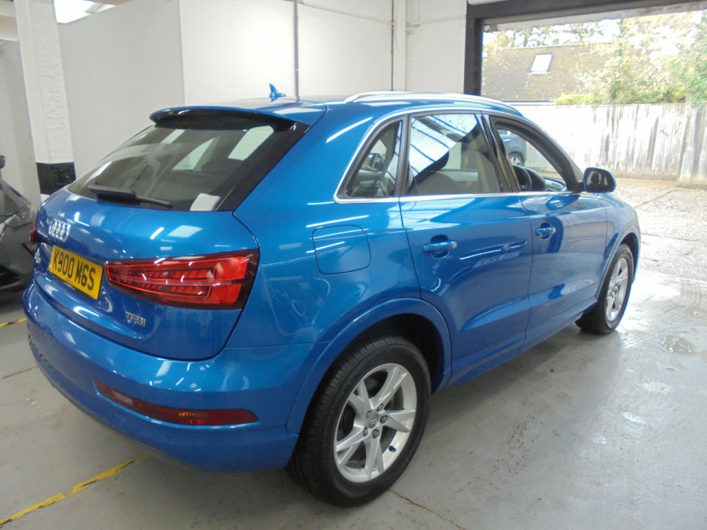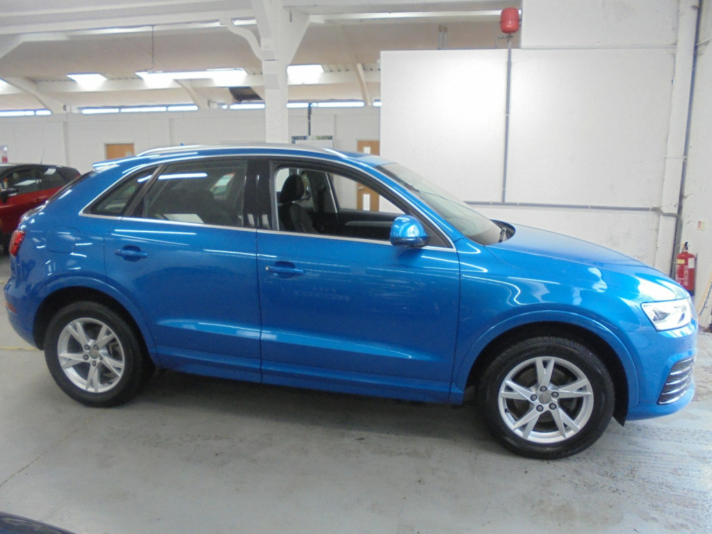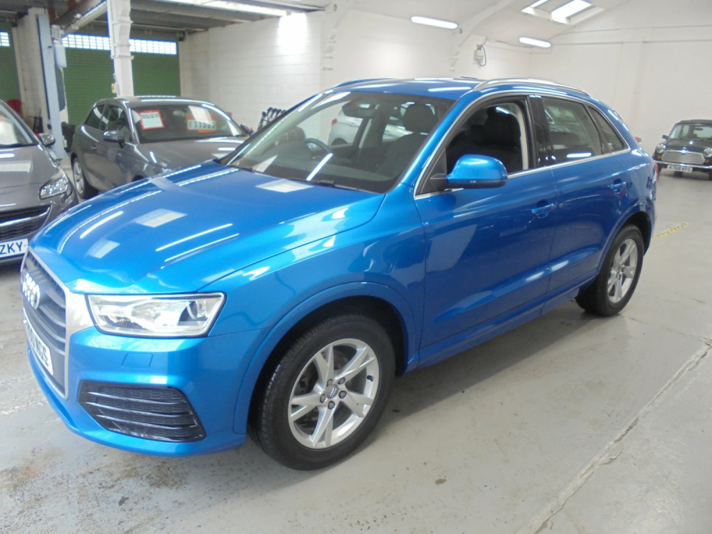 Now on Sale here at Leslie Cars Uckfield this 2017 Audi Q3 Sport TFSI 1.4 Petrol Automatic MPV Finished in Metallic Blue. Documented Services Recorded at: 4,375 miles, 9,728 miles, 15,769 miles, 17,649 miles, 21,096 miles, 27,920 miles,30,871 miles, 34,504 miles, 40,335 miles and most recently at 44,251 miles. Features Include: SAT NAV DAB Radio with CD Climate Control Bluetooth Auto Lights Isofix Rear Child Seat Fixings... All vehicles supplied by Leslie Cars come with a comprehensive parts and labour warranty which can be Upgraded & extended for up to 24 months. All our cars are supplied with a minimum of 6 months MOT and serviced if required, pre-delivery inspected, fully valeted and HPI checked. Full finance options available subject to eligibility. Please note all sales are subject to a £55 admin fee. Part exchange welcome. For more information, please call 01825 748 710. We are open 7 Days a week. If you are travelling over to see a particular vehicle, please call first to check availability and avoid disappointment.