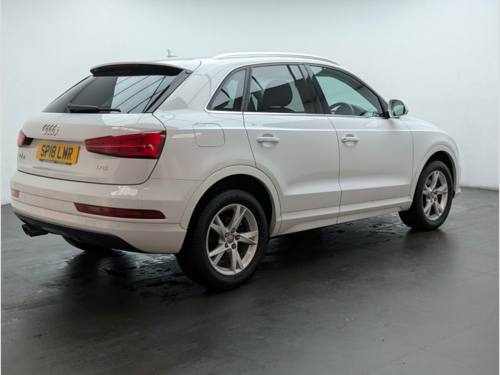 Stunning Audi Q3 in White with SAT NAV - Cruise Control - Privacy Glass - Customised Paint - Door Mirrors - Heated-Electrically Adjustable-Folding-Auto-Dimming Drivers - Bluetooth - DAB Radio 4 services - last service done at 42842 miles on 26/11/2021. This 2018 Audi Q3 TFSI Sport is a superb example of a well maintained compact SUV. Finished in the popular Sport trim, this model boasts a responsive 1.4 litre petrol engine, meeting the Euro 6 emission standards. Its efficient design contributes to an impressive fuel economy of 51 miles per gallon, making it a cost effective choice for everyday driving. The Audi Q3 TFSI Sport offers a compelling blend of performance and economy. Its low CO2 emissions are a testament to its modern engineering, and with an acceleration of 0 to 60 miles per hour in just 9.2 seconds, it provides a capable and enjoyable driving experience. These highlights demonstrate how this particular Q3 stands out from others in its class, offering a refined and efficient package for discerning drivers. 17in Alloy Wheels - 7J 5-Spoke Y Design, 4-Way Electric Lumbar Support for Front , 6.5in Colour Display Screen, 8 Passive Speakers, Aluminium Roof Rails, Aluminium Window Trims, AMI - Audi Music Interface, Anti Theft Locking Wheel Bolts, Anti-Theft Alarm, Audi Drive Select, Auto-Dimming Rear-View Mirror, Bluetooth Interface, Body Coloured Door Mirrors, Chrome-plated Tailpipe Trims, Cloth Headlining, Concert Radio, Cruise Control, Customised Paint, DAB Digital Radio, Door Mirrors - Electrically Adjustable a, Door Mirrors - Heated-Electrically Adjus, Door Sills with Aluminium Inlays, Driver - Front Passenger - Front Side an, Drivers Information System - DIS - 3.5in, Dual-Zone Electronic Climat
