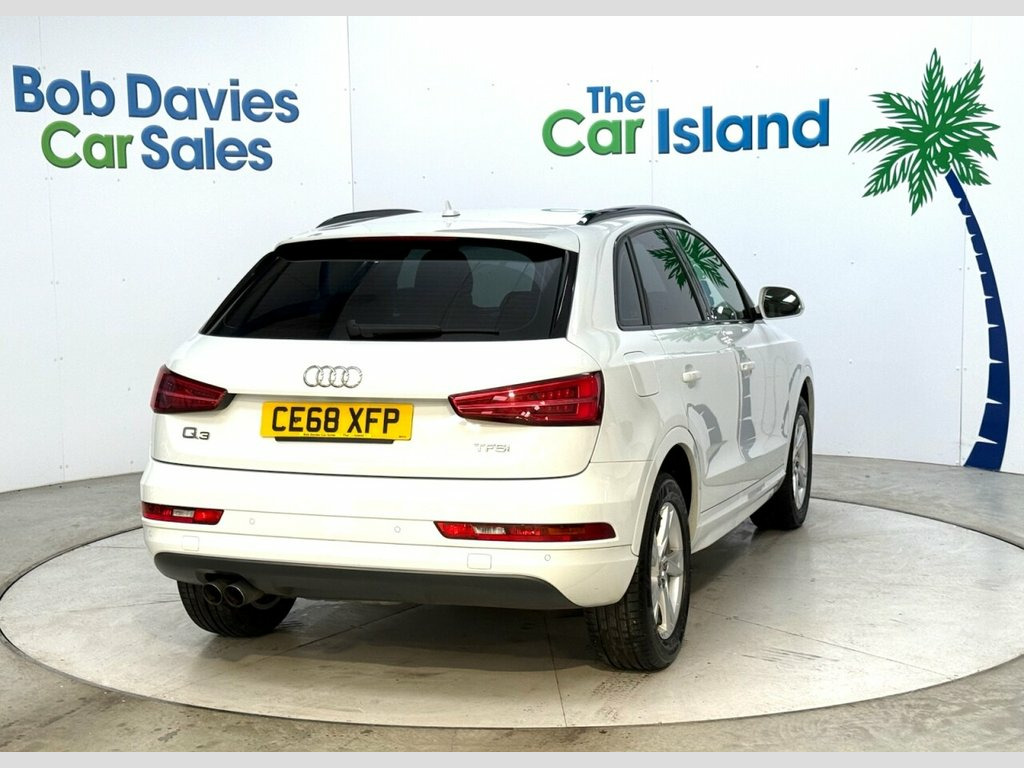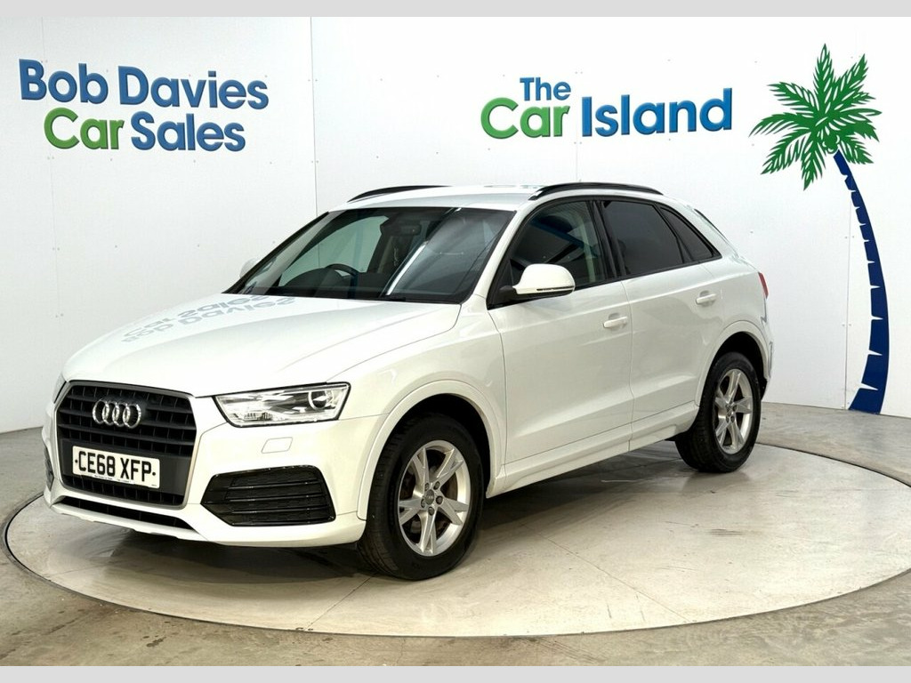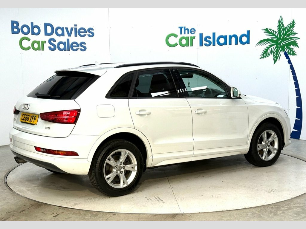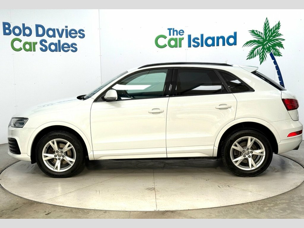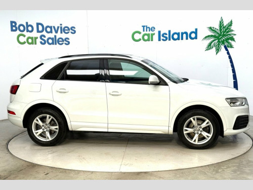 Beautiful 150 BHP Q3 in Shell White. Lovely Spec & Very Spacious Interior fitted with Satellite Navigation, Bluetooth Media, Cruise Control, Dual Zone Electronic Climate Control, Audi Drive Select, DAB Radio, Parking Sensors, AUX & USB Inputs, Electric Windows & Mirrors, Auto Lights & Wipers, 17" Alloys, 2 Keys and Great Service History to list a few.****** Bob Davies Car Sales is established as a trusted supplier of quality cars. Family business providing low mileage cars for over 40 years. High standards, great reputation & 5-star customer service. Open 6 days. Best value in 100 mile radius. ***** Request a personal walk round on any car and we'll make sure you're happy before reserving or travelling. No pressure, no fuss, no fees. Secure with £100 refundable deposit.***** We deliver all over the UK to your door with our successful "Mouse to House" delivery. Wherever you live, we will bring your perfect car to you. Feel confident in the quality and condition of our vehicles, our warranty covers the UK.****** Best Rate Finance available to all, even for poor credit. No deposit needed just get contact us and we will tailor to suit you. Shell White, Sport Bodystyling, 17in Alloy Wheels - 7J 5-Spoke Y Design, Satellite Navigation System , Cruise Control, Xenon Plus Headlights with LED Daytime R, Drivers Information System - DIS - 3.5in, Bluetooth Interface, Rear Parking Sensors, Aluminium Roof Rails, DAB Digital Radio, Door Mirrors - Electrically Adjustable a, Dual-Zone Electronic Climate Control, Electric Windows - Front, Remote Central Locking, ISOFIX Child Seat Mounting and Top Tethe, Light and Rain Sensor, Towbar Preparation, 8 Passive Speakers, Auto-Dimming Rear-View Mirror, Sport Cloth - Sports Seats - Black - Sil, 6.5in Colour Display Screen, AMI - Audi Music Interface, Audi Drive Select, Tyre Pressure Loss Indicator,