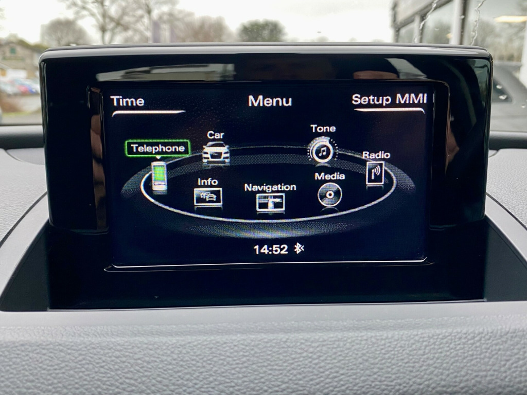 in alloy wheels - 7j 5-spoke y design, aluminium roof rails, aluminium window trims, anti theft locking wheel bolts, body coloured door mirrors, chrome-plated tailpipe trims, door mirrors - electrically adjustable and heated with integrated led side indicators, electric windows - front, front lip and rear diffuser in grey, space saver spare wheel, sport bodystyling, windscreen with acoustic glazing, 4-way electric lumbar support for front seats, auto-dimming rear-view mirror, cloth headlining, door sills with aluminium inlays, dual-zone electronic climate control, extendable luggage compartment cover, front centre armrest, front and rear floor mats, inlays - micrometallic silver, manual seat adjustment, reversible luggage compartment floor, split-folding rear seats, stainless steel loading sill protector, steering wheel - 3-spoke leather-multifunction-q-design, steering wheel - height and reach adjustable, tool kit and car jack, 6.5in colour display screen, 8 passive speakers, ami - audi music interface, bluetooth interface, concert radio, dab digital radio, drivers information system - dis - 3.5in - monochrome display, satellite navigation system - sd card based, towbar preparation, anti-theft alarm, driver - front passenger - front side and head airbag system, esc - electronic stabilisation control inc abs - asr and edl, electromechanical parking brake, first aid kit and warning triangle, isofix child seat mounting and top tether, remote central locking, seat belt monitoring, secondary collision brake assist, audi drive select, cruise control, dynamic suspension, electromechanical power steering - speed-sensitive provides a precise steering feel at high speeds and excellent assistance when parking., rear parking sensors, tyre pressure loss indicator, voice control system, front and rear fog lights, light and rain sensor, xenon plus headlights with led daytime running lights