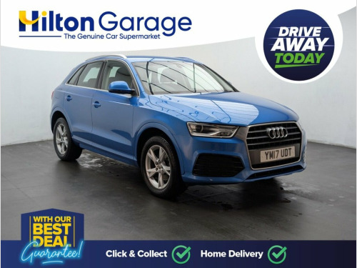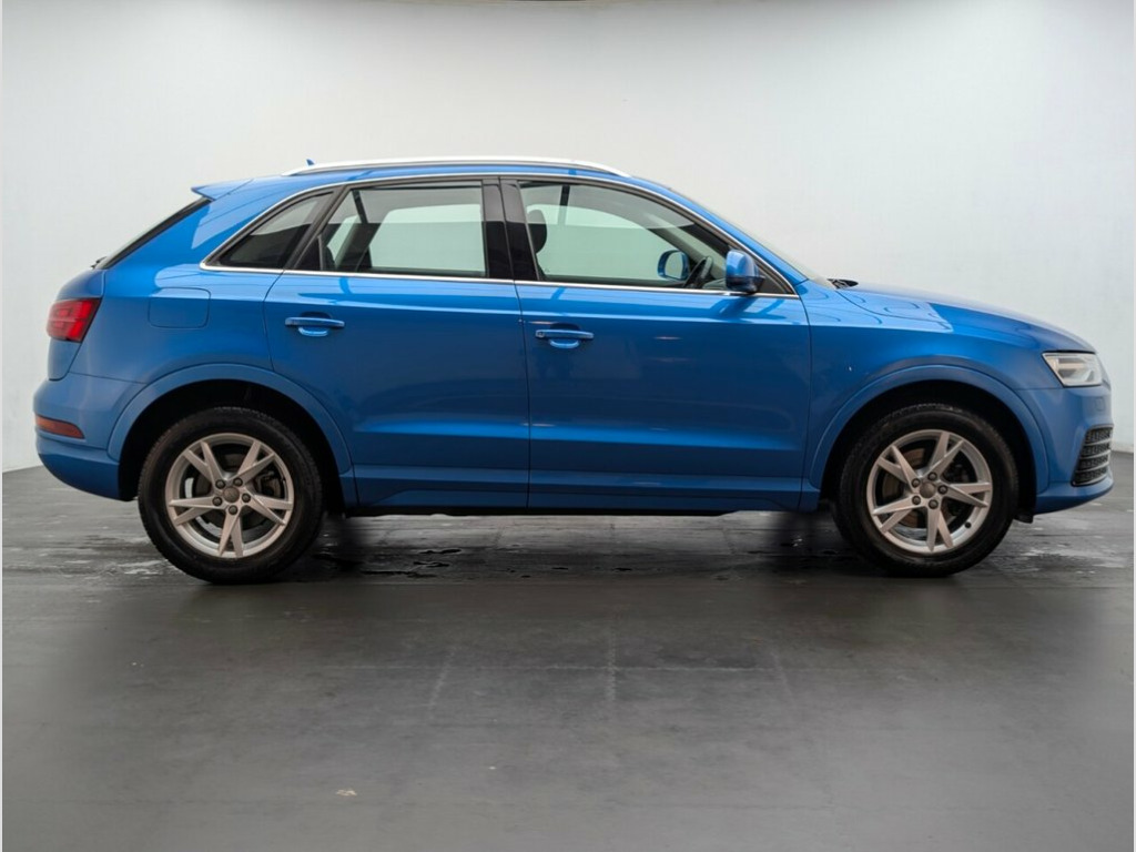 17" Alloys, Cruise Control, DAB Radio, SAT NAV, Rear Parking Sensors. Most recent service - 07/11/25 The Audi Q3 1.4 TFSI CoD Sport offers a perfect blend of power and efficiency with 150PS and S Tronic transmission. This stylish 5-door SUV combines advanced technology, a comfortable ride, and a compact design ideal for urban adventures. With dynamic handling and fuel-saving features, it's the ideal choice for those seeking performance and versatility. 17in Alloy Wheels - 7J 5-Spoke Y Design, 4-Way Electric Lumbar Support for Front , 6.5in Colour Display Screen, 8 Passive Speakers, Aluminium Roof Rails, Aluminium Window Trims, AMI - Audi Music Interface, Anti Theft Locking Wheel Bolts, Anti-Theft Alarm, Audi Drive Select, Auto-Dimming Rear-View Mirror, Bluetooth Interface, Body Coloured Door Mirrors, Chrome-plated Tailpipe Trims, Cloth Headlining, Concert Radio, Cruise Control, DAB Digital Radio, Door Mirrors - Electrically Adjustable a, Door Sills with Aluminium Inlays, Driver - Front Passenger - Front Side an, Drivers Information System - DIS - 3.5in, Dual-Zone Electronic Climate Control, Dynamic Suspension, Electric Windows - Front, Ele