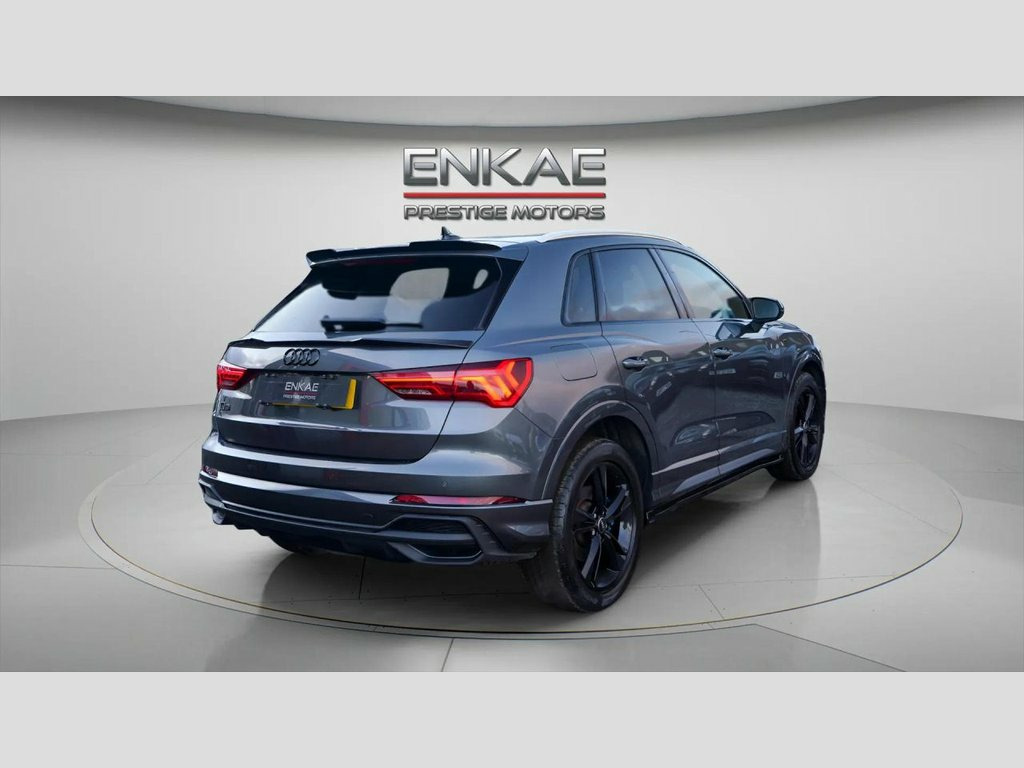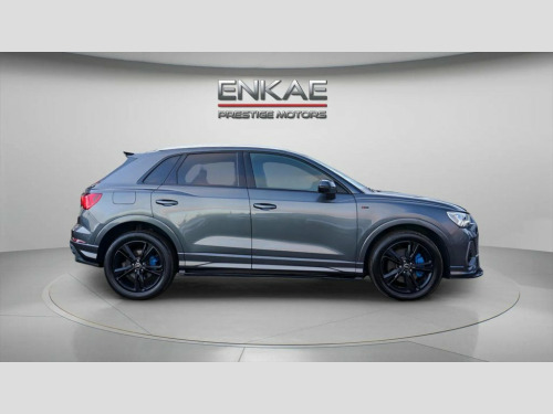 Enkae are proud to show you our 2022 Audi Q3 TFSIe S line is a superb example, boasting a clear vehicle history and having been cherished by just one owner from new. This stylish SUV features a 1.4 litre petrol plug in hybrid engine, meeting Euro 6 emissions standards, making it an efficient choice. The S line trim ensures a premium feel throughout. The Audi Q3 TFSIe S line offers a compelling blend of performance and economy. Its plug in hybrid technology provides flexibility for both short electric journeys and longer trips, setting it apart from conventional petrol or diesel models. This particular vehicle's single ownership and clean history further enhance its appeal, offering peace of mind for its next owner. 19in Alloy Wheels - 7.0J 5-Twin-Spoke - , 2 USB-C Ports with Charge and Data Funct, 3-Spoke Leather Multi-Function Steering , 6 Passive Loud Speakers, 6-Airbag System, Adjustable Rear Seat Bench-Backrest with, Aluminium Look Interior Elements, Aluminium Roof Rails, Aluminium Window Trims, Ambient Lighting Pack, Anti Theft Locking Wheel Bolts, Anti-Theft Alarm, Audi Connect Infotainment Services Plus , Audi Drive Select, Audi Pre-Sense Basic, Audi Pre-Sense Front with Pedestrian and, Audi Smartphone Interface includes Wirel, Audi Virtual Cockpit - 10.25in Display, Auto Dimming and Frameless Rear View Mir, B and C-Pillar Trim in High-Gloss Black, Bluetooth Interface, Body Coloured Door Mirrors
