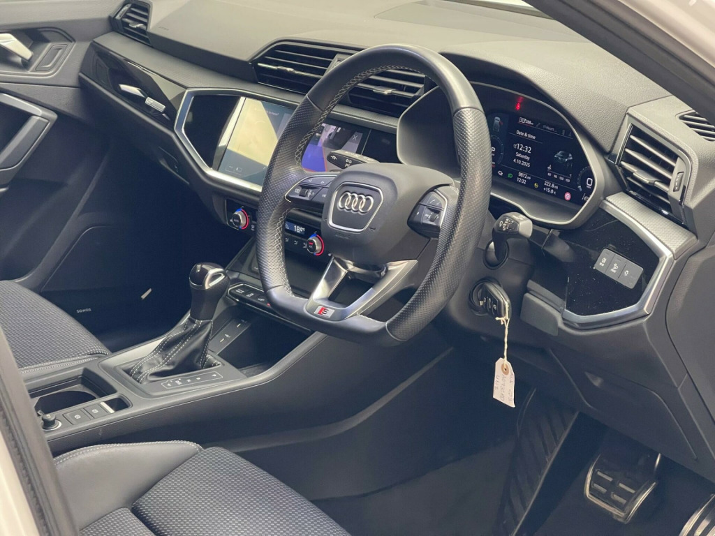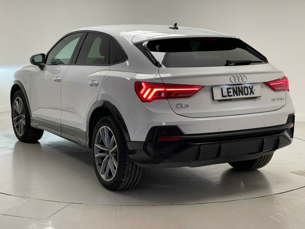 This 2023 Audi Q3 TFSIe Vorsprung offers an exceptional blend of efficiency and luxury, boasting a 1.4 litre petrol plug in hybrid engine that meets Euro 6 emissions standards. As a Vorsprung model, it comes equipped with the desirable Comfort and Sound Package, enhancing your driving experience with front and rear parking sensors, a rear camera, a premium branded sound system, and heated seats for ultimate comfort. Further adding to its appeal are the Light and Rain Sensor with automatic headlights, Advanced Key for keyless entry, and a panoramic glass sunroof with an opening function, all designed to make every journey more enjoyable.The Q3 TFSIe Vorsprung stands out with its advanced technology and premium appointments. The dual zone electronic climate control ensures a comfortable cabin temperature for all occupants, while the panoramic sunroof floods the interior with natural light. These features, combined with the plug in hybrid powertrain, position this Audi Q3 as a sophisticated and practical choice, offering a refined driving experience that surpasses many other vehicles in its class. usb-c ports with charge and data functions, 20in alloy wheels - 8.5j 5-v-spoke - star design in matt titanium look - diamond-cut finish - audi sport, 3 pin 10amp domestic charging cable, 360 degree camera, 4-way electric lumbar support, 6-airbag system, adaptive suspension with damping control, adjustable rear seat bench-backrest with centre armrest and cupholder, advanced key, anti theft locking wheel bolts, anti-theft alarm, audi beam, audi connect infotainment services plus including amazon alexa integration (3 year subscription from new), audi connect safety and service - e-call, audi drive select, audi matrix led headlights with dynamic front and rear indicators, audi pre-sense basic, audi pre-sense front with pedestrian and cyclist recognition, audi smartphone interface includes wireless apple carplay, audi virtual cockpit plus, auto dimming and frameless rear view mirror, b and c-pillar trim in high-gloss black, black styling package, bluetooth interface, camera-based traffic sign recognition, cloth headlining in black, comfort and sound package, cross-traffic assist rear, dab digital radio, detail in dashboard around the mmi touch colour display in glass look - black with surround in aluminium look, diffuser grille in grained matt black, diffuser trim in selenite silver, dual-zone electronic climate control, esc - electronic stabilisation control inc abs - asr and edl, electric windows - front, electrically adjustable front seats, electromechanical parking brake, extended ambient lighting pack - multi-coloured, first aid kit and warning triangle, folding door mirrors with auto-dimming function for both the drivers and passengers side electrically folding - adjustable and heated with built-in led side indicators and kerb-view function for passenger side, front centre armrest, front sport seats with s embossed logo, front underbody protection in manhattan grey paint finish, front and rear floor mats in black with contrast stitching, gear knob in perforated leather, headlights washers, hill descent control, hill hold assist, isofix child seat mounting for the front passenger seat with front passenger airbag deactivation and isofix child seat mounting and top tether for the outer rear seats, inlays - matt brushed aluminium - dark, interior elements in steel grey alcantara, interior lighting, led rear lights, lane departure warning, leatherette door armrests, light and rain sensor, luggage compartment sill protection in stainless steel, mmi navigation plus with high resolution 10.1in touchscreen colour display, non-smoking package, panoramic glass sunroof, pedals in stainless steel, power operated tailgate, privacy glass - dark-tinted rear and rear-side windows - from b-pillar backwards, progressive steering, rear underbody protection in matt black, s line badges on the front wings, s line front and rear bumpers and side skirts in contrasting manhattan grey paint finish, seat belt monitoring, steering wheel - 3-spoke leather - multifunction plus - shift paddles, tool kit, type 2 mode 3 32 amp charging cable, type 2 socket for ac charging, tyre pressure warning light, tyre repair kit, voice control system with natural language interaction, windscreen in acoustic glazing