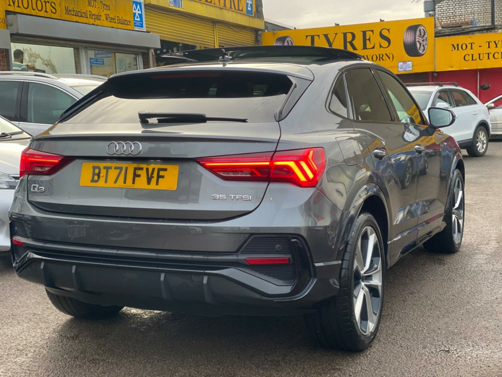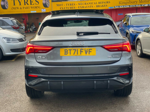 Cars Yard is delighted to present this stunning Audi Q3 1.5 TFSI CoD 35 Black Edition Sportback S Tronic Euro 6((((((***FREE 6 MONTHS WARRANTY + 12 MONTHS FREE AA BREAKDOWN COVER ****))))) USED BY ONE OWNER FROM NEW, FULL SERVICE HISTORY, GREAT CONDITION IN AND OUT ***Excellent condition*** 5 Day Driveaway Insurance at Additional cost available for cars up to 10 years old STS, FINANCE AVAILABLE, CALL US ON 02045392878. AA Approved Dealer, FCA registered Dealer in alloy wheels - 5-twin-arm design in matt titanium look - diamond cut finish - audi sport, 2 usb-c ports with charge and data functions, 6 passive loud speakers, 6-airbag system, adjustable rear seat bench-backrest with centre armrest and cupholder, aluminium look interior elements, ambient lighting pack, anti theft locking wheel bolts, anti-theft alarm, audi connect infotainment services plus (3 year subscription from new), audi connect safety and service - e-call, audi drive select, audi pre-sense basic, audi pre-sense front with pedestrian and cyclist recognition, audi smartphone interface includes wireless apple carplay, audi virtual cockpit - 10.25in display, auto dimming and frameless rear view mirror, b and c-pillar trim in high-gloss black, black styling package, bluetooth interface, camera-based traffic sign recognition, cloth headlining in black, cruise control system with speed limiter, dab digital radio, detail in dashboard around the mmi touch colour display in glass look - black with surround in aluminium look, diffuser grille in grained matt black, diffuser trim in selenite silver, door mirrors - electrically folding - adjustable and heated with integrated led side indicators and kerb-view function for passenger side, dual-zone electronic climate control, esc - electronic stabilisation control inc abs - asr and edl, electric windows - front, electromechanical parking brake, first aid kit and warning triangle, flat-bottomed 3-spoke leather-trimmed multi-function sport steering wheel with gear-shift paddles, front centre armrest, front underbody protection in manhattan grey paint finish, front and rear floor mats in black with contrast stitching in rock grey, gear knob in perforated leather, hill descent control, hill hold assist, isofix child seat mounting for the front passenger seat with front passenger airbag deactivation and isofix child seat mounting and top tether for the outer rear seats, inlays - piano black, interior lighting, led headlights with led daytime running lights and dynamic rear indicator, led rear lights, lane departure warning, leatherette door armrests, light and rain sensor, luggage compartment sill protection in stainless steel, mmi navigation plus with high resolution 10.1in touchscreen colour display, manually adjustable front seats, non-smoking package, pedals in stainless steel, power operated tailgate, privacy glass - dark-tinted rear and rear-side windows - from b-pillar backwards, progressive steering, rear parking sensors, rear underbody protection in matt black, s line badges on the front wings, s line front and rear bumpers and side skirts in contrasting manhattan grey paint finish, seat belt monitoring, sport suspension, tool kit, tyre pressure warning light, tyre repair kit, voice control system with natural language interaction, windscreen in acoustic glazing