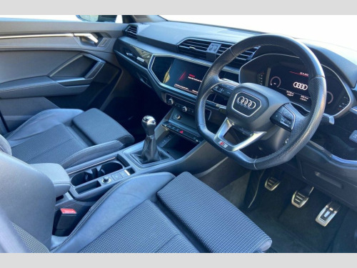 This 2021 Audi Q3 TFSI Black Edition offers peace of mind with a clear vehicle history check and an MOT valid until June 2026. This stylish SUV features a 1.5 litre Euro 6 petrol engine, ensuring efficient performance. Inside, you'll find a Flat Bottomed 3 Spoke Leather Trimmed Multi Function Sport Steering Wheel, a Bluetooth interface for seamless connectivity, and Dual Zone Electronic Climate Control for personalised comfort. The Light and Rain Sensor automatically activates the headlights, which are advanced LED units with distinctive LED Daytime Running Lights, enhancing both visibility and the vehicle's modern aesthetic. The Audi Q3 TFSI Black Edition is designed to impress, accelerating from 0 to 60mph in just 9.4 seconds, demonstrating its responsive nature. These features collectively highlight how this Q3 provides a superior driving experience compared to other vehicles in its class, offering a blend of sophisticated technology, comfort, and dynamic capability. 19in Alloy Wheels - 8.5J 5-Twin-Arm Desi, 2 USB-C Ports with Charge and Data Funct, 6 Passive Loud Speakers, 6-Airbag System, Adjustable Rear Seat Bench-Backrest with, Aluminium Look Interior Elements, Anti Theft Locking Wheel Bolts, Anti-Theft Alarm, Audi Connect Infotainment Services Plus , Audi Connect Safety and Service - e-call, Audi Drive Select, Audi Pre-Sense Basic, Audi Pre-Sense Front with Pedestrian and, Audi Smartphone Interface includes Wirel, Audi Virtual Cockpit - 10.25in Display, Auto Dimming and Frameless Rear View Mir, B and C-Pillar Trim in High-Gloss Black, Black Roof Rails, Black Styling Package, Bluetooth Interface, Camera-Based Traffic Sign Recognition, Child Locks - M
