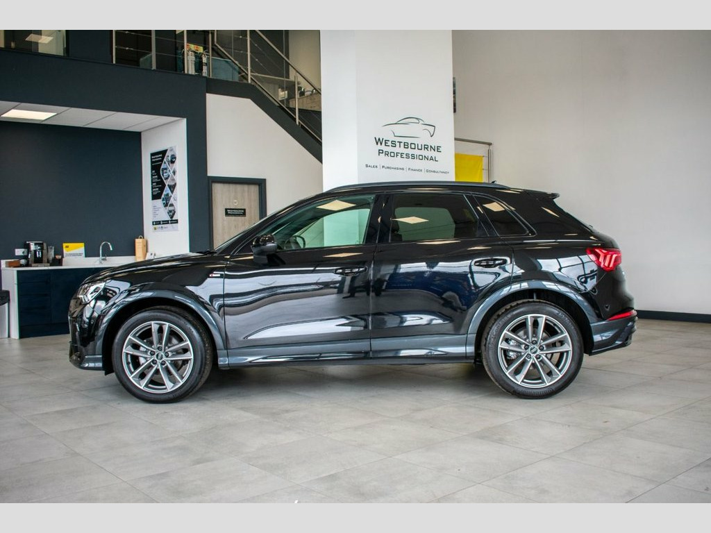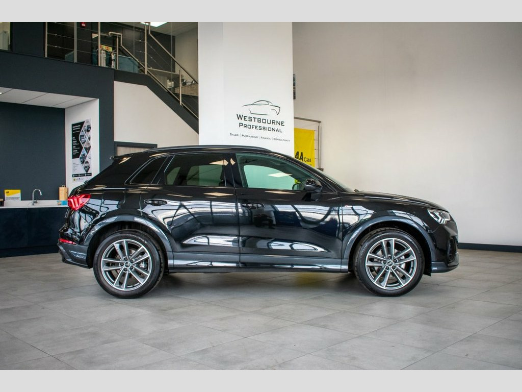 2022 '22' Audi Q3 1.5 TFSI 35 Black Edition, finished in Mythos Black with Black Half Leather interior. Audi MMI Satellite Navigation System, 19-inch Alloy Wheels, Wireless Smartphone Interface for Apple CarPlay / Android Auto, Audi Virtual Cockpit, DAB Radio, Bluetooth Telephone & Audio Connectivity, Cruise Control, Automatic LED Lights, Rear Parking Sensors, Heated Power Folding Mirrors, Leather Multifunction Steering Wheel, Automatic Dual Zone Climate Control, Rear Privacy Glass and much more. Mythos Black, 19in Alloy Wheels - 5-Twin-Arm Design in, 2 USB-C Ports with Charge and Data Funct, 6 Passive Loud Speakers, 6-Airbag System, Adjustable Rear Seat Bench-Backrest with, Aluminium Look Interior Elements, Ambient Lighting Pack, Anti Theft Locking Wheel Bolts, Anti-Theft Alarm, Audi Connect Infotainment Services Plus , Audi Drive Select, Audi Pre-Sense Basic, Audi Pre-Sense Front with Pedestrian and, Audi Smartphone Interface includes Wirel, Audi Virtual Cockpit - 10.25in Display, Auto Dimming and Frameless Rear View Mir, B and C-Pillar Trim in High-Gloss Black, Black Roof Rails, Black Styling Package, Bluetooth Interface, Camera-Based Traffic Sign Recognition, Cloth Headlining in