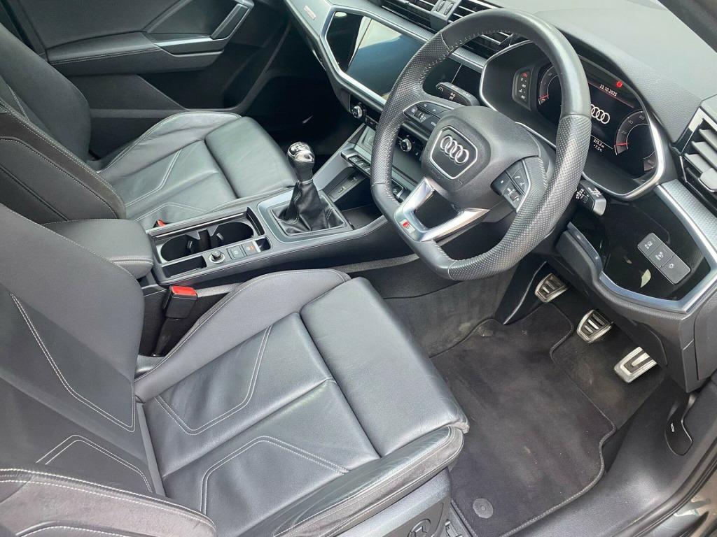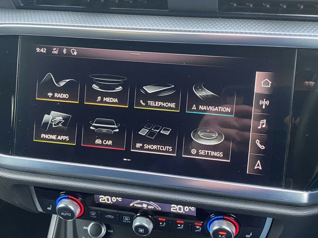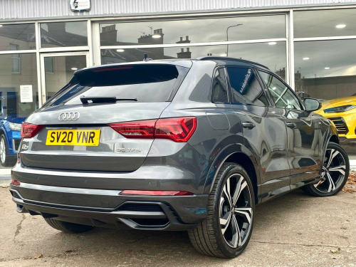 This 2020 Audi Q3 TFSI Edition 1 boasts a full service history and a clear vehicle history check, offering you complete peace of mind. This stylish SUV is equipped with a responsive 1.5 litre petrol engine, meeting Euro 6 emissions standards. You'll appreciate the convenience of rear parking sensors, dual zone electronic climate control, and a Bluetooth interface for seamless connectivity. The light and rain sensor automatically adjusts headlights, while the Audi Matrix LED headlights with dynamic indicators provide excellent visibility and a distinctive look.Experience impressive performance with a 0 to 62mph acceleration time of just 9.6 seconds. This Q3 also offers generous boot space, making it practical for all your needs. Its low CO2 emissions indicate it is a more environmentally conscious choice compared to similar vehicles. A 12 month MOT will be provided upon purchase, ensuring its roadworthiness.. 1 x USB-C and 1 x USB-A Port with Charge and Data Functions, 20in Alloy Wheels - 5-Twin-Spoke Rotor Design Audi Sport in Matt Black - Diamond Cut Finish, 6 Passive Loud Speakers, 6-Airbag System, Adjustable Rear Seat Bench-Backrest with Centre Armrest and Cupholder, Aluminium Look Interior Elements, Anti Theft Locking Wheel Bolts, Anti-Theft Alarm, Audi Beam, Audi Connect Infotainment Services Plus including Amazon Alexa Integration (3 Year Subscription From New), Audi Connect Safety and Service - e-call, Audi Drive Select, Audi Matrix LED Headlights with Dynamic Front and Rear Indicators, Audi Pre-Sense Front with Pedestrian and Cyclist Recognition, Audi Side Assist, Audi Smartphone Interface Includes Wireless Apple CarPlay, Audi Virtual Cockpit Plus, Auto Dimming and Frameless Rear View Mirror, B and C-Pillar Trim in High-Gloss Black, Black Roof Rails, Black Styling Package, Bluetooth Interface, Camera-Based Traffic Sign Recognition, Cloth Headlining in Black, Cruise Control with Speed Limiter, DAB Digital Radio, Detail in Dashboard Around the MMI Touch Colour Display in Glass Look - Black with Surround in Aluminium Look, Door Mirrors - Electrically Folding - Adjustable and Heated with Integrated LED Side Indicators and Kerb-view Function for Passenger Side, Dual-Zone Electronic Climate Control, ESC - Electronic Stabilisation Control inc ABS - ASR and EDL, Electric Windows - Front, Electrically Adjustable Front Seats, Electromechanical Parking Brake, Electronically Operated Child Locks, Extended Ambient Lighting Pack - Multi-Coloured, First Aid Kit and Warning Triangle, Flat-Bottomed 3-Spoke Leather-Trimmed Multi-Function Sport Steering Wheel, Frame of Front Side Air Inlets in Platinum Grey - Matt, Front Centre Armrest, Front Spoiler Blade in Platinum Grey - Matt, Front Spoiler in Selenite Silver - Matt, Front and Rear Floor Mats in Black with Contrast Stitching in Rock Grey, Gear Knob in Perforated Leather, Headlights Washers, Hill Descent Control, Hill Hold Assist, ISOFIX Child Seat Mounting for the Front Passenger Seat with Front Passenger Airbag Deactivation and ISOFIX Child Seat Mounting and Top Tether for the Outer Rear Seats, Illuminated Door Sill Trims with S Logo, Inlays - Matt Brushed Aluminium - Dark, Interior Lighting, LED Rear Lights, Lane Departure Warning, Leatherette Armrests, Light and Rain Sensor, Luggage Compartment Sill Protection in Stainless Steel, MMI Navigation Plus with High Resolution 10.1in Touchscreen Colour Display, Non-Smoking Package, Pedals in Stainless Steel, Power Operated Tailgate, Pre-Sense Basic, Privacy Glass - Dark-Tinted Rear and Rear-Side Windows - From B-Pillar Backwards, Progressive Steering, Rear Diffuser in Titanium Black Matt, Rear Parking Sensors, S Line Badges on the Front Wings, S Line Bumpers in Contrasting Manhattan Grey Paint Finish, Seat Belt Monitoring, Sport Suspension, Tool Kit, Tyre Pressure Warning Light, Tyre Repair Kit, Voice Control System with Natural Language Interaction, Windscreen in Acoustic Glazing. Full service history