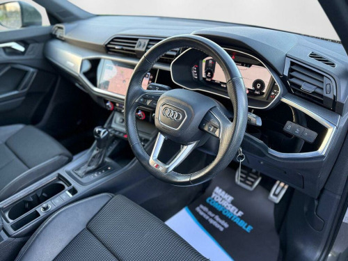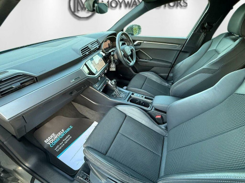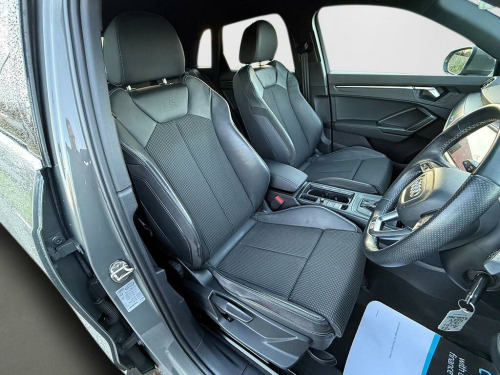 This 2022 Audi Q3 TFSI S line boasts a clear vehicle history and has had only one owner, offering you peace of mind. This stylish SUV features a 1.5 litre Euro 6 petrol engine, delivering an impressive 0-62mph in just 9.4 seconds. Inside, you'll find the convenience of rear parking sensors with parking assistance, a Bluetooth interface for seamless connectivity, and the Audi Smartphone Interface which includes wireless Apple CarPlay and Android Auto. The light and rain sensor automatically controls the headlights, while the dual zone electronic climate control ensures comfort for all occupants.The S line trim level enhances the Q3's already sophisticated appeal. The inclusion of the Audi Smartphone Interface, offering wireless Apple CarPlay, highlights how this vehicle provides a more connected and convenient driving experience compared to others. Furthermore, the automatic headlights activated by the light and rain sensor demonstrate a thoughtful integration of technology designed to simplify your journeys. This Q3 TFSI S line is a well maintained and feature rich option for those seeking a premium compact SUV.. 19in Alloy Wheels - 7.0J 5-Twin-Spoke - Dynamic Design, 2 USB-C Ports with Charge and Data Functions, 3-Spoke Leather Multi-Function Steering Wheel - S Badging and Grips in Perforated Leather with Contrast Stitching, 6 Passive Loud Speakers, 6-Airbag System, Adjustable Rear Seat Bench-Backrest with Centre Armrest and Cupholder, Aluminium Look Interior Elements, Aluminium Roof Rails, Aluminium Window Trims, Anti Theft Locking Wheel Bolts, Anti-Theft Alarm, Audi Connect Infotainment Services Plus (3 Year Subscription From New), Audi Connect Safety and Service - e-call, Audi Drive Select, Audi Pre-Sense Basic, Audi Pre-Sense Front with Pedestrian and Cyclist Recognition, Audi Smartphone Interface includes Wireless Apple CarPlay, Audi Virtual Cockpit - 10.25in Display, Auto Dimming and Frameless Rear View Mirror, B and C-Pillar Trim in High-Gloss Black, Bluetooth Interface, Body Coloured Door Mirrors, Bumpers in Full Body Colour Paint Finish, Camera-Based Traffic Sign Recognition, Child Locks - Manual, Cloth Headlining in Black, Cruise Control System with Speed Limiter, DAB Digital Radio, Detail in Dashboard Around the MMI Touch Colour Display in Glass Look - Black with Surround in Aluminium Look, Door Mirrors - Electrically Folding - Adjustable and Heated with Integrated LED Side Indicators and Kerb-view Function for Passenger Side, Dual-Zone Electronic Climate Control, ESC - Electronic Stabilisation Control inc ABS - ASR and EDL, Electric Windows - Front, Electromechanical Parking Brake, First Aid Kit and Warning Triangle, Frame of Front Side Air Inlets in Platinum Grey - Matt, Front Centre Armrest, Front Spoiler Blade in Platinum Grey - Matt, Front and Rear Floor Mats in Black with Contrast Stitching in Rock Grey, Gear Knob in Perforated Leather, Grille Surround in Silver - Chrome, Grille Vertical Bars in Aluminium Silver - Matt, Hill Descent Control, Hill Hold Assist, ISOFIX Child Seat Mounting for the Front Passenger Seat with Front Passenger Airbag Deactivation and ISOFIX Child Seat Mounting and Top Tether for the Outer Rear Seats, Illuminated Door Sill Trims with S Logo, Inlays - Matt Brushed Aluminium - Dark, Interior Lighting, LED Headlights with LED Daytime Running Lights, Lane Departure Warning, Leatherette Door Armrests, Light and Rain Sensor, Luggage Compartment Sill Protection in Stainless Steel, MMI Navigation Plus with High Resolution 10.1in Touchscreen Colour Display, Manually Adjustable Front Seats, Non-Smoking Package, Pedals in Stainless Steel, Power Operated Tailgate, Privacy Glass - Dark-Tinted Rear and Rear-Side Windows - From B-Pillar Backwards, Progressive Steering, Radiator Grille - Titanium Black, Rear Diffuser in Titanium Black Matt, Rear Parking Sensors, S Line Badges on the Front Wings, S line Front and Rear Bumpers and Side Skirts, Seat Belt Monitoring, Side Skirt Insert in Platinum Grey - Matt, Sport Suspension, Tool Kit, Tyre Pressure Warning Light, Tyre Repair Kit, Voice Control System with Natural Language Interaction, Windscreen in Acoustic Glazing.
