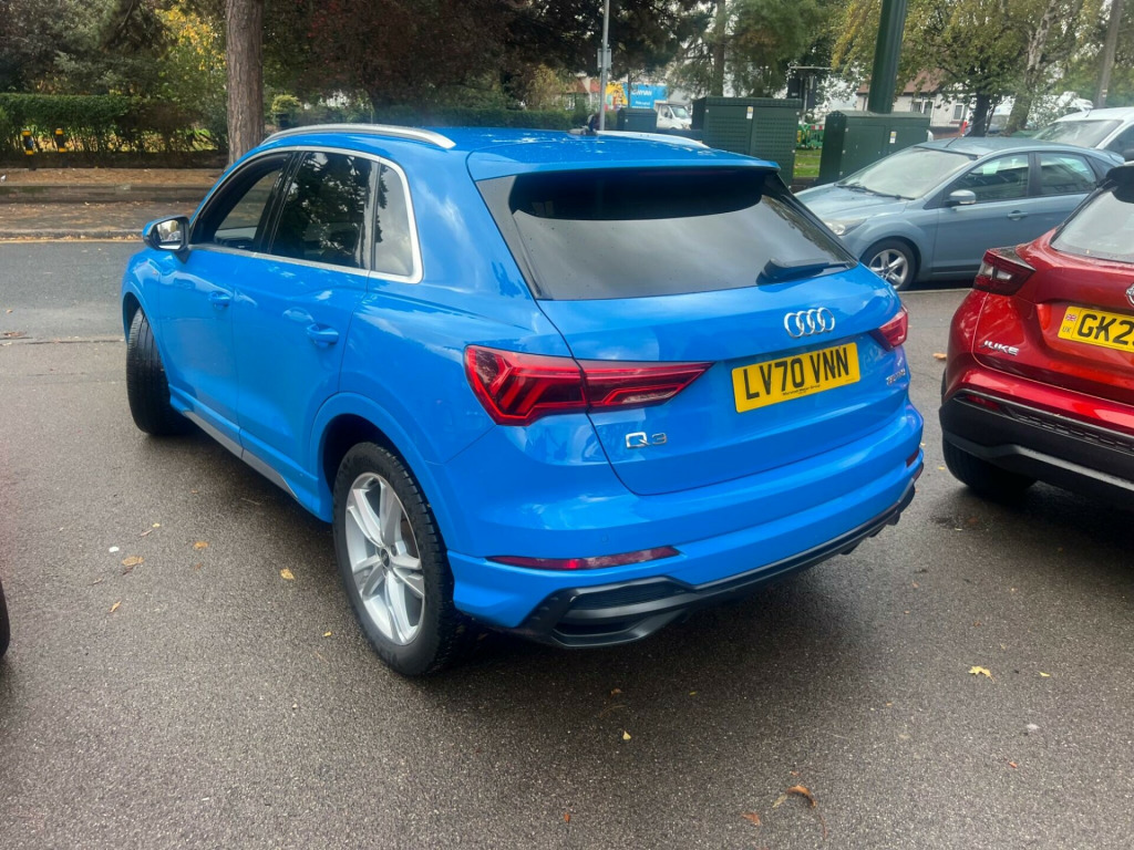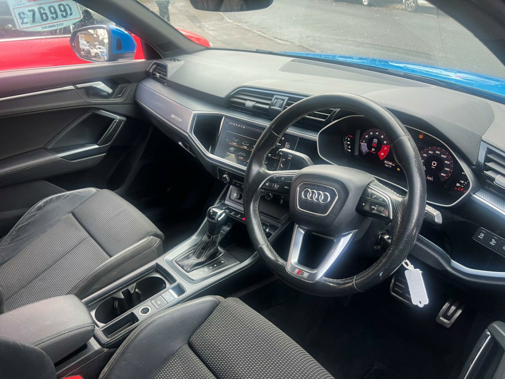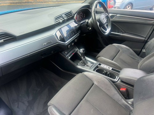 This 2021 Audi Q3 TFSI S line is a superb example, having been owned by only one careful keeper since new. This stylish SUV boasts a 1.5 litre petrol engine, meeting Euro 6 emissions standards, and comes in the desirable S line trim. You'll appreciate the advanced LED headlights, complete with LED daytime running lights and dynamic rear indicators, ensuring excellent visibility. Parking is made easier with rear parking sensors and Audi Side Assist, which provides blind spot assistance. Inside, the dual zone electronic climate control allows for personalised comfort, while the light and rain sensor automatically adjusts the headlights and wipers.The Audi Q3 TFSI S line offers a compelling driving experience, accelerating from 0 to 62 miles per hour in just 9.4 seconds. These features collectively demonstrate how this particular Q3 stands out from other similar vehicles, offering a refined and technologically advanced package for any discerning driver.having just the one  private owner and full Audi service records please call x usb-c and 1 x usb-a port with charge and data functions, 19in alloy wheels - 5-twin-spoke dynamic, 3-spoke leather multi-function steering wheel - s badging and grips in perforated leather with contrast stitching, 6 passive loud speakers, 6-airbag system, adjustable rear seat bench-backrest with centre armrest and cupholder, aluminium look interior elements, aluminium roof rails, aluminium window trims, ambient lighting pack, anti theft locking wheel bolts, anti-theft alarm, audi connect infotainment services plus including amazon alexa integration (3 year subscription from new), audi connect safety and service - e-call, audi drive select, audi pre-sense front with pedestrian and cyclist recognition, audi side assist, audi smartphone interface includes wireless apple carplay, audi virtual cockpit - 10.25in display, auto dimming and frameless rear view mirror, b and c-pillar trim in high-gloss black, bluetooth interface, body coloured door mirrors, bumpers in full body colour paint finish, camera-based traffic sign recognition, cloth headlining in black, cruise control with speed limiter, dab digital radio, detail in dashboard around the mmi touch colour display in glass look - black with surround in aluminium look, door mirrors - electrically folding - adjustable and heated with integrated led side indicators and kerb-view function for passenger side, dual-zone electronic climate control, esc - electronic stabilisation control inc abs - asr and edl, electric windows - front, electromechanical parking brake, electronically operated child locks, first aid kit and warning triangle, frame of front side air inlets in platinum grey - matt, front centre armrest, front spoiler blade in platinum grey - matt, front spoiler in selenite silver - matt, front and rear floor mats in black with contrast stitching in rock grey, gear knob in perforated leather, grille surround in silver - chrome, grille vertical bars in aluminium silver - matt, hill descent control, hill hold assist, isofix child seat mounting for the front passenger seat with front passenger airbag deactivation and isofix child seat mounting and top tether for the outer rear seats, illuminated door sill trims with s logo, inlays - matt brushed aluminium - dark, interior lighting, led headlights with led daytime running lights and dynamic rear indicator, led rear lights, lane departure warning, leatherette armrests, light and rain sensor, luggage compartment sill protection in stainless steel, mmi navigation plus with high resolution 10.1in touchscreen colour display, manual seat adjustment for front seats, non-smoking package, pedals in stainless steel, power operated tailgate, pre-sense basic, privacy glass - dark-tinted rear and rear-side windows - from b-pillar backwards, progressive steering, radiator grille - titanium black, rear diffuser in titanium black matt, rear parking sensors, s line badges on the front wings, s line front and rear bumpers and side skirts, seat belt monitoring, side skirt insert in platinum grey - matt, sport suspension, tool kit, tyre pressure warning light, tyre repair kit, voice control system with natural language interaction, windscreen in acoustic glazing