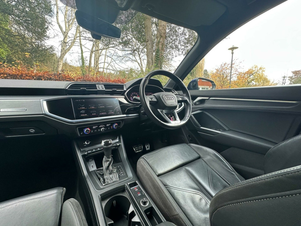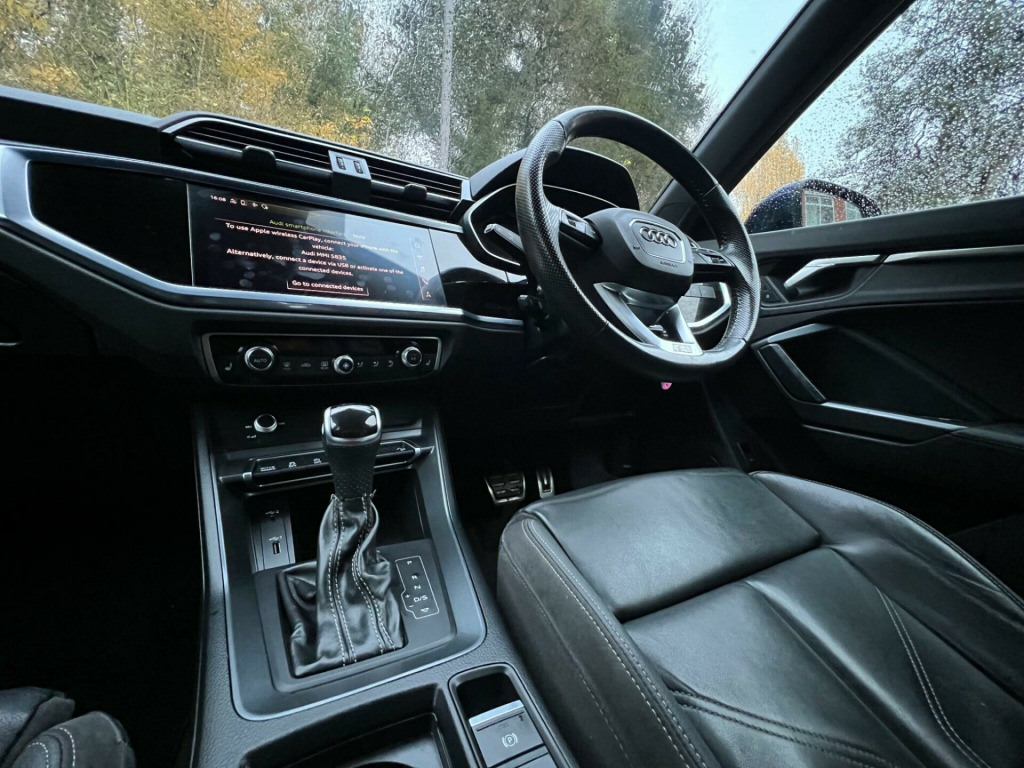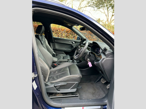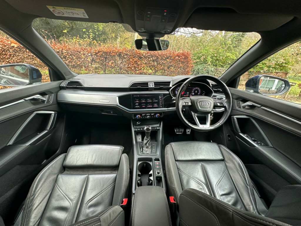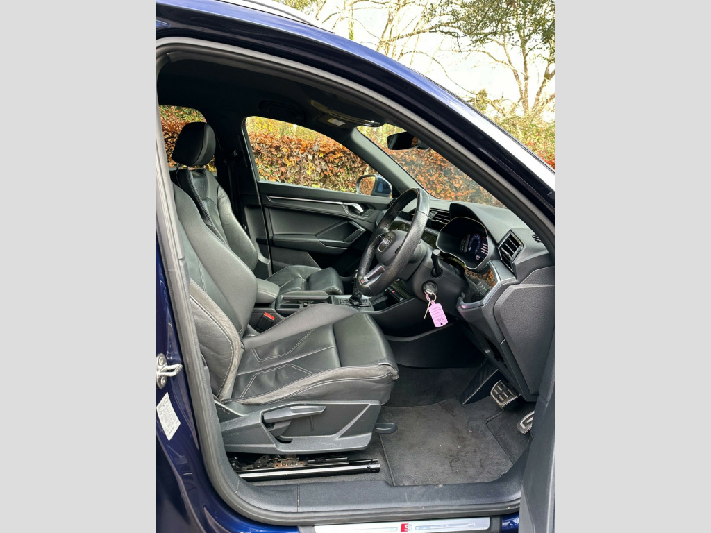This 2020 Audi Q3 TFSI S line offers a refined driving experience with its Euro 6 compliant 1.5 litre petrol engine. This particular model boasts the sought after S line trim, enhancing its sporty appeal. Inside, you'll find the Comfort and Sound Package, which includes heated seats for those colder journeys, and striking Twin Leather Sport Seats in Black with Rock Grey Stitching. The convenience of automatic headlights, activated by the Light and Rain Sensor, along with a Bluetooth interface for seamless connectivity, are also key features.The Q3 TFSI S line is designed for both comfort and performance, accelerating from 0 to 62 miles per hour in a brisk 9.4 seconds. This performance, combined with the Dual Zone Electronic Climate Control, ensures a pleasant environment for all occupants. These features collectively demonstrate how this Audi Q3 provides a superior driving experience compared to other vehicles in its class, offering a blend of advanced technology, comfort, and dynamic capability.. 1 x USB-C and 1 x USB-A Port with Charge and Data Functions, 19in Alloy Wheels - 5-Twin-Spoke Dynamic, 3-Spoke Leather Multi-Function Steering Wheel - S Badging and Grips in Perforated Leather with Contrast Stitching, 6 Passive Loud Speakers, 6-Airbag System, Adjustable Rear Seat Bench-Backrest with Centre Armrest and Cupholder, Aluminium Look Interior Elements, Aluminium Roof Rails, Aluminium Window Trims, Ambient Lighting Pack, Anti Theft Locking Wheel Bolts, Anti-Theft Alarm, Audi Connect Infotainment Services Plus including Amazon Alexa Integration (3 Year Subscription From New), Audi Connect Safety and Service - e-call, Audi Drive Select, Audi Pre-Sense Front with Pedestrian and Cyclist Recognition, Audi Side Assist, Audi Smartphone Interface Includes Wireless Apple CarPlay, Audi Virtual Cockpit - 10.25in Display, Auto Dimming and Frameless Rear View Mirror, B and C-Pillar Trim in High-Gloss Black, Bluetooth Interface, Body Coloured Door Mirrors, Bumpers in Full Body Colour Paint Finish, Camera-Based Traffic Sign Recognition, Cloth Headlining in Black, Cruise Control with Speed Limiter, DAB Digital Radio, Detail in Dashboard Around the MMI Touch Colour Display in Glass Look - Black with Surround in Aluminium Look, Door Mirrors - Electrically Folding - Adjustable and Heated with Integrated LED Side Indicators and Kerb-view Function for Passenger Side, Dual-Zone Electronic Climate Control, ESC - Electronic Stabilisation Control inc ABS - ASR and EDL, Electric Windows - Front, Electromechanical Parking Brake, Electronically Operated Child Locks, First Aid Kit and Warning Triangle, Frame of Front Side Air Inlets in Platinum Grey - Matt, Front Centre Armrest, Front Spoiler Blade in Platinum Grey - Matt, Front Spoiler in Selenite Silver - Matt, Front and Rear Floor Mats in Black with Contrast Stitching in Rock Grey, Gear Knob in Perforated Leather, Grille Surround in Silver - Chrome, Grille Vertical Bars in Aluminium Silver - Matt, Hill Descent Control, Hill Hold Assist, ISOFIX Child Seat Mounting for the Front Passenger Seat with Front Passenger Airbag Deactivation and ISOFIX Child Seat Mounting and Top Tether for the Outer Rear Seats, Illuminated Door Sill Trims with S Logo, Inlays - Matt Brushed Aluminium - Dark, Interior Lighting, LED Headlights with LED Daytime Running Lights and Dynamic Rear Indicator, LED Rear Lights, Lane Departure Warning, Leatherette Armrests, Light and Rain Sensor, Luggage Compartment Sill Protection in Stainless Steel, MMI Navigation Plus with High Resolution 10.1in Touchscreen Colour Display, Manual Seat Adjustment for Front Seats, Non-Smoking Package, Pedals in Stainless Steel, Power Operated Tailgate, Pre-Sense Basic, Privacy Glass - Dark-Tinted Rear and Rear-Side Windows - From B-Pillar Backwards, Progressive Steering, Radiator Grille - Titanium Black, Rear Diffuser in Titanium Black Matt, Rear Parking Sensors, S Line Badges on the Front Wings, S line Front and Rear Bumpers and Side Skirts, Seat Belt Monitoring, Side Skirt Insert in Platinum Grey - Matt, Sport Suspension, Tool Kit, Tyre Pressure Warning Light, Tyre Repair Kit, Voice Control System with Natural Language Interaction, Windscreen in Acoustic Glazing, Comfort and Sound Package, Twin Leather - Sport Seats - Black with Rock Grey Stitching.