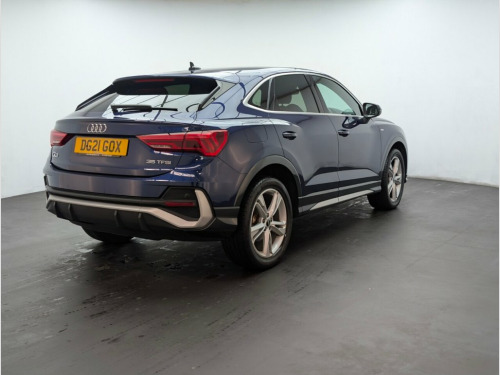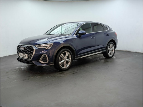 Sporty SUV. Modern Style. Efficient Performance - 19in Alloy Wheels, Bluetooth Interface, Cruise Control, Front Sport Seats with S Embossed Logo, Rear Parking Sensors. 3 Services. Last serviced 17.01.2025 at 43318 miles. The Audi Q3 35 S line Sportback blends coupe-like styling with SUV practicality, delivering a sporty yet versatile driving experience. With S line enhancements, advanced technology, and a premium interior, this Q3 is perfect for drivers who want style, comfort, and efficiency in one compact SUV. Powered by a 1.5-litre TFSI petrol engine producing 150 PS, paired with the S Tronic automatic transmission, this Q3 delivers smooth, responsive performance and excellent efficiency. Its Euro 6 (s/s) compliance makes it ULEZ-friendly, ideal for city and motorway driving. 19in Alloy Wheels - 7.0J 5-Twin-Spoke - , 2 USB-C Ports with Charge and Data Funct, 3-Spoke Leather Multi-Function Steering , 6 Passive Loud Speakers, 6-Airbag System, Adjustable Rear Seat Bench-Backrest with, Aluminium Look Interior Elements, Aluminium Window Trims, Anti Theft Locking Wheel Bolts, Anti-Theft Alarm, Audi Connect Infotainment Services Plus , Audi Connect Safety and Service - e-call, Audi Drive Select, Audi Pre-Sense Basic, Audi Pre-Sense Front with Pedestrian and, Audi Smartphone Interface includes Wirel, Audi Virtual Cockpit - 10.25in Display, Auto Dimming and Frameless Rear View Mir, B and C-Pillar Trim in High-Gloss Black, Bluetooth Interface, Body Coloured Door Mirrors, C
