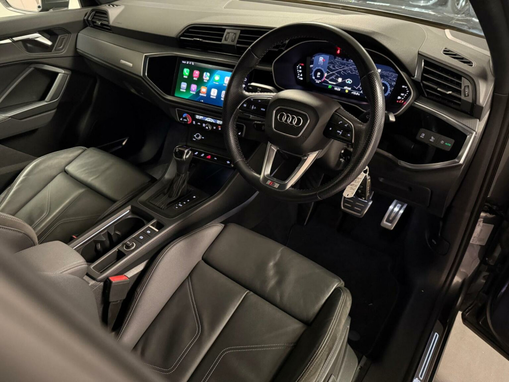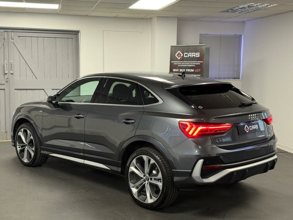 We have just bought this stunning Q3 Sportback directly from the previous owner, registration LF70 DHM. , This is the S line 35 TFSI 150ps with S tronic gearbox finished in Daytona grey metallic with the optional S line full leather in black. , Specification and Features;, >Comfort and sound pack, >Rear view camera, >Bang and Olufsen sound system, >Heated front seats, >20 5 arm alloys, >Apple car play or Android auto, >Electric folding, heated mirrors, >Electric tailgate, Plus more!, This Q3 has 2 owners from new and the following service history; , (First service to follow), 05/09/2023 at 30,542 miles at Audi, We have carried out the next service during preparation including oil & filter, pollen filter, spark plugs and brake fluid change. , NB - the service interval on this S tronic gearbox is every 80k, not the usual 40k. , Please do call for more information and to discuss this car in more detail, do also make sure you watch our detailed walk-around video on the video tab in the Gallery! We offer competitive finance options with APRs starting from 9.9% over 2-5 years, and can provide any quotations required. All of this can also be done online. We take any make in part exchange - while we only retail VAG product we will still seek the best value we can for your car. If it is easier you can text or WhatsApp on 07564 053855 or go to our website www.qtcars.co.uk and use the WhatsApp icon. We ensure the car receives a structured mechanical check, 12 months MOT upon arrival and 6 months warranty which can be used at any VAT registered garage nationally. Please take a moment to read our reviews to see what our customers are saying