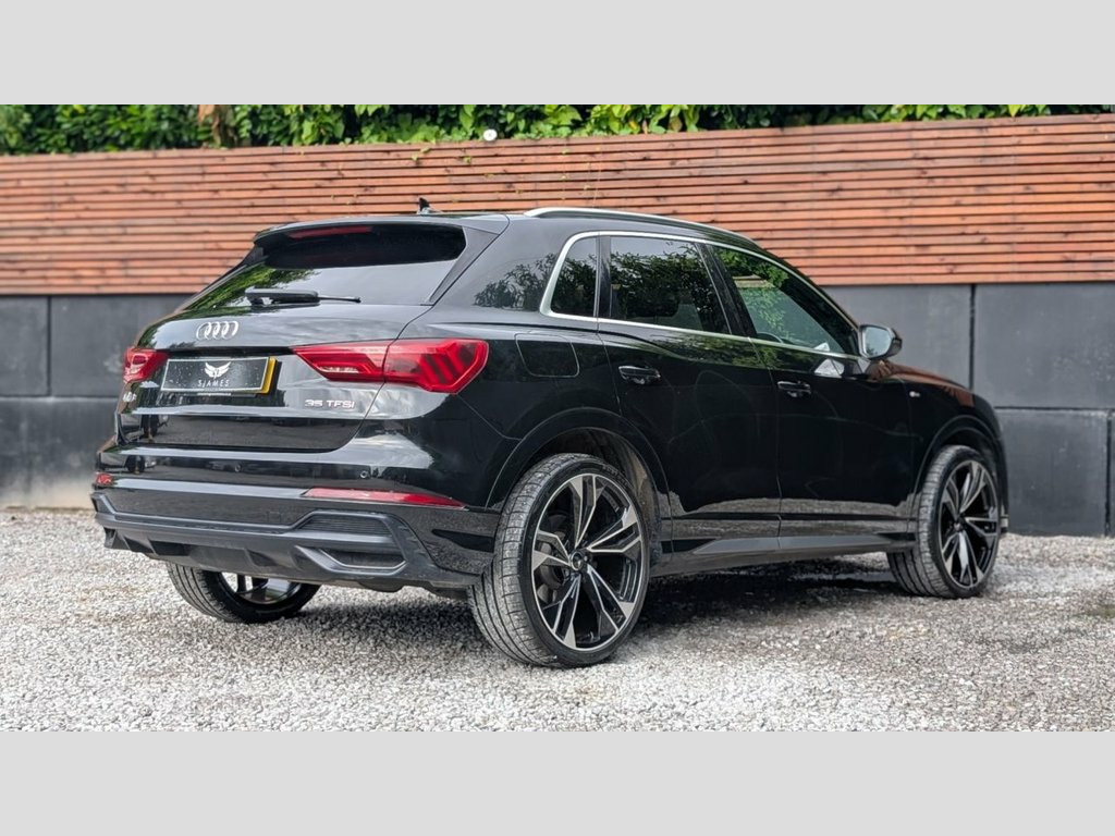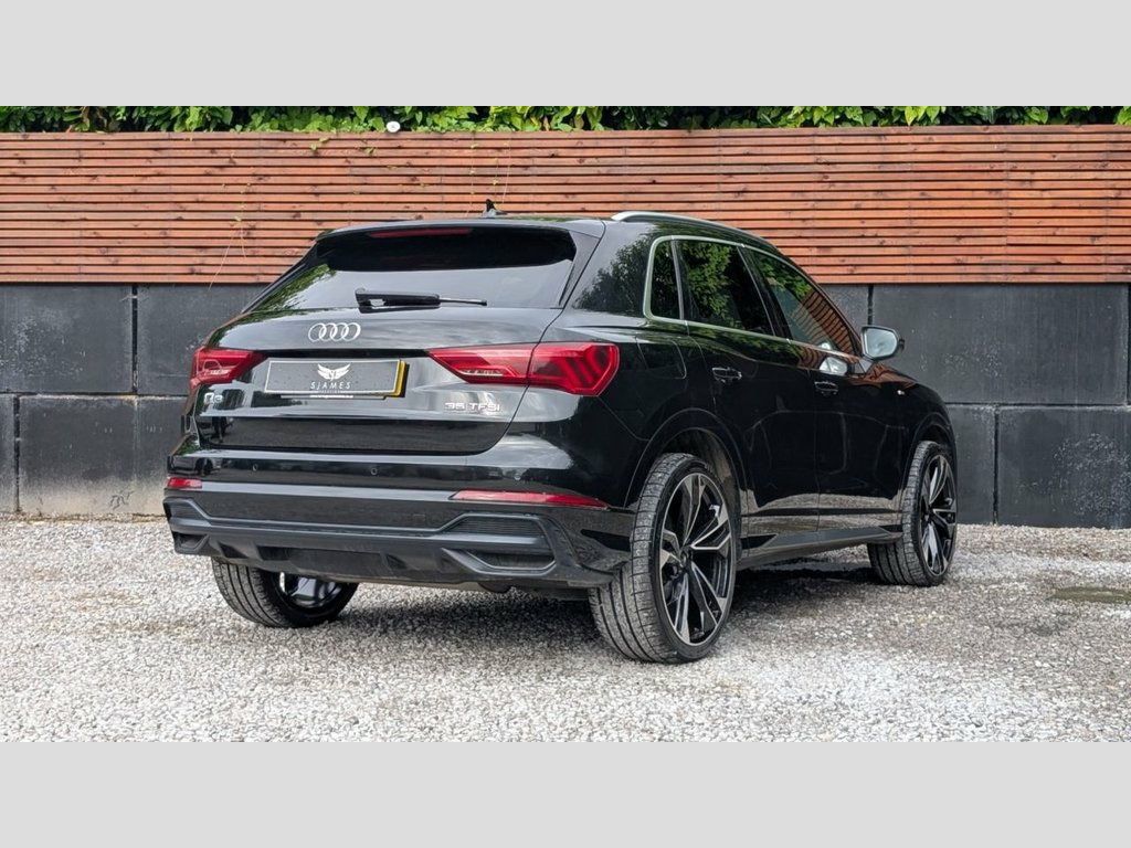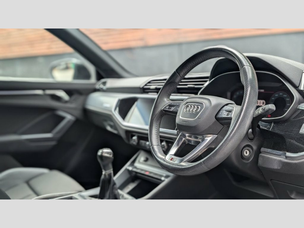 This stunning Q3 comes with a great spec including  - RS Style honeycomb grille - 21" Alloy wheels  - Virtual cockpit - Satellite navigation - LED headlights with daytime running lights - Manual transmission - Mythos Black - Half leather seats with S logo  - OPTIONAL EXTRA'S / UPGRADES AVAILABLE:    - Optional 3 year manufacturer equivalent warranty available  - Optional brake caliper painting to a colour of your choice - Optional gloss black wing mirrors - Optional de-badge - Optional gloss black badges - Optional exterior de-chrome  - The fitment of the brand new tyres, alloy wheels and styling parts are subject to a fee of £249. This also warrants the fitted parts for 12 months. - Number of keys to be confirmed at the point of sale. Alcantara Frequency-Twin Leather - Sport, Mythos Black, 3-Spoke Leather Multi-Function Steering , 6 Passive Loud Speakers, 6-Airbag System, Adjustable Rear Seat Bench-Backrest with, Aluminium Roof Rails, Aluminium Window Trims, Ambient Lighting Pack, Anti Theft Locking Wheel Bolts, Anti-Theft Alarm, Audi Connect Infotainment Services Plus , Audi Connect Safety and Service - e-call, Audi Drive Select, Audi Pre-Sense Front with Pedestrian and, Audi Side Assist, Audi Smartphone Interface, Audi Virtual Cockpit - 10.25in Display, Auto Dimming and Frameless Rear View Mir, B and C-Pillar Trim in High-Gloss Black, Bluetooth Interface, Body Coloured Door Mirrors, Bumpers in Full Body Colour Paint Fin