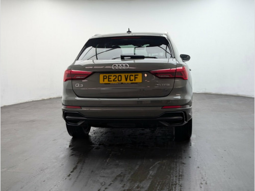 19" alloys, Bluetooth, Side assist, Cruise control and Rear parking sensors. This 2020 Audi Q3 TFSI S line boasts an MOT valid until May 2026, offering you peace of mind for the road ahead. This stylish SUV features a 1.5 litre Euro 6 compliant petrol engine, ensuring efficient performance. The S line trim level signifies a sporty and well equipped vehicle, ready for your everyday journeys. Experience the responsive acceleration of this Q3, reaching 0 to 60 miles per hour in just 9.4 seconds, a testament to its capable 1.5 litre engine. You'll also appreciate the generous boot space, making it ideal for carrying luggage, shopping, or sports equipment. These features combine to make this Audi Q3 a compelling choice for those seeking a blend of performance, practicality, and sophisticated design. 1 x USB-C and 1 x USB-A Port with Charge, 19in Alloy Wheels - 7.0J 5-Twin-Spoke - , 3-Spoke Leather Multi-Function Steering , 6 Passive Loud Speakers, 6-Airbag System, Adjustable Rear Seat Bench-Backrest with, Aluminium Look Interior Elements, Aluminium Roof Rails, Aluminium Window Trims, Ambient Lighting Pack, Anti Theft Locking Wheel Bolts, Anti-Theft Alarm, Audi Connect Infotainment Services Plus , Audi Connect Safety and Service - e-call, Audi Drive Select, Audi Pre-Sense Basic, Audi Pre-Sense Front with Pedestrian and, Audi Side Assist, Audi Smartphone Interface includes Wirel, Audi Virtual Cockpit - 10.25in Display, Auto Dimming and Frameless Rear View Mir, B and C-Pillar Trim in High-