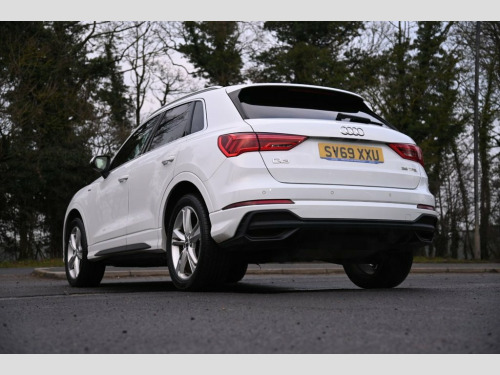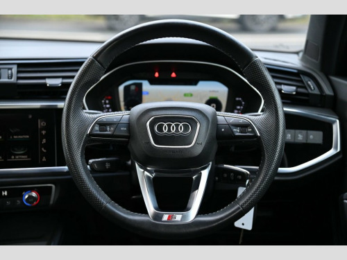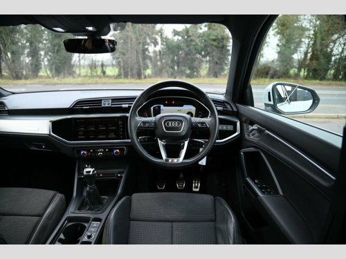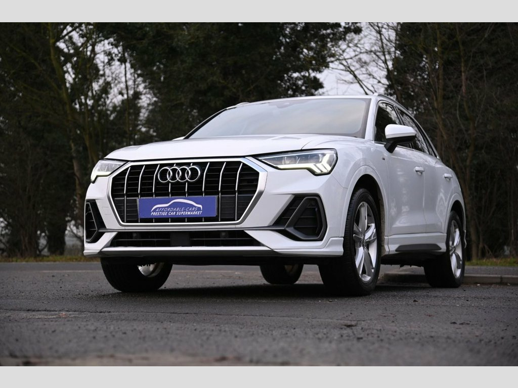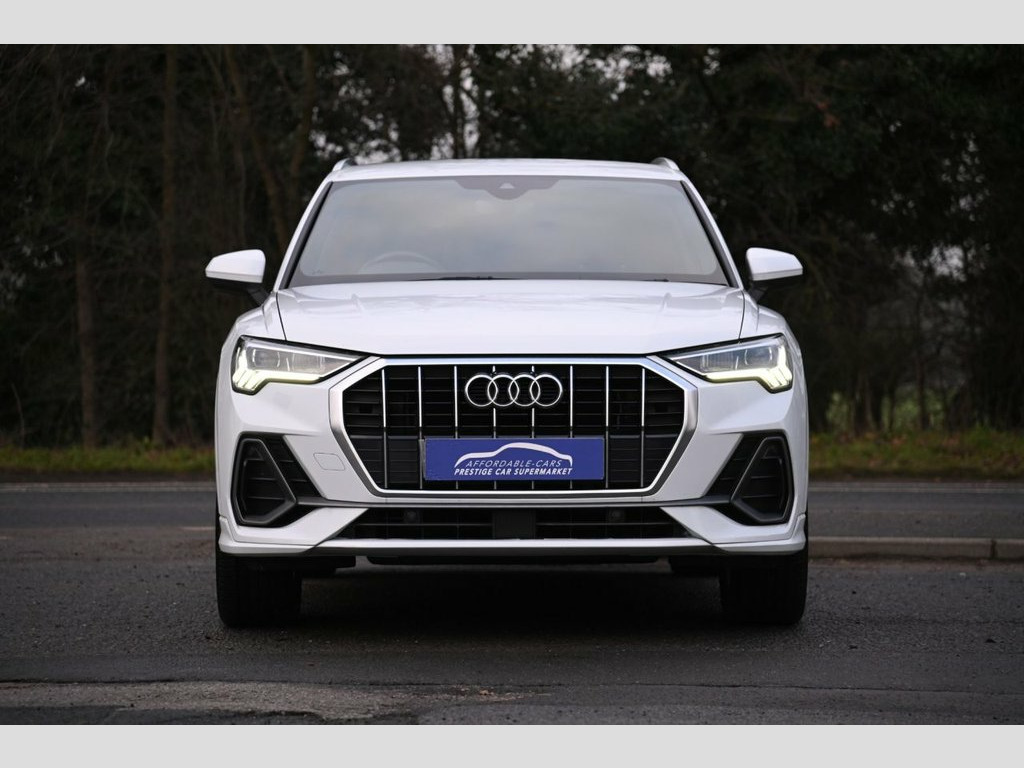 Prestige Car Supermarket in York presents this 2019 Audi Q3 1.5 TFSI CoD 35 S line, a well balanced and engaging petrol SUV producing 150 ps and paired with a smooth manual gearbox. Finished in Glacier White, this S line model benefits from distinctive front and rear S line bumpers, S line side skirts, aluminium roof rails, aluminium window trims, privacy glass and striking 19in 5-twin-spoke dynamic alloy wheels. The exterior is further enhanced by LED headlights with LED daytime running lights, dynamic rear indicators and titanium black detailing to the grille and rear diffuser. Inside, the cabin features Pulse cloth and twin leather sport seats in black and red with rock grey stitching, complemented by dark brushed aluminium inlays, ambient lighting pack, black cloth headlining and illuminated S line door sill trims. Driver-focused technology includes the Audi Virtual Cockpit with 10.25in display, MMI Navigation Plus with high resolution 10.1in touchscreen, Audi Smartphone Interface with wireless Apple CarPlay, voice control with natural language interaction, Bluetooth connectivity and DAB digital radio. Comfort and practicality are supported by dual-zone electronic climate control, adjustable rear seat bench, power operated tailgate and acoustic glazing. Advanced safety and assistance systems include Audi pre-sense front with pedestrian and cyclist recognition, lane departure warning, Audi side assist, traffic sign recognition, cruise control with speed limiter, rear parki Pulse Cloth-Twin Leather - Sport Seats -, Glacier White, 1 x USB-C and 1 x USB-A Port with Charge, 19in Alloy Wheels - 5-Twin-Spoke Dynamic, 3-Spoke Leather Multi-Function Steering , 6 Passive Loud Speakers, 6-Airbag System, Adjustable Rear Seat Bench-Backrest with, Aluminium Look Interior Elements, Aluminium Roof Rails, Aluminium Window Trims, Ambient Lighting Pack, Anti Theft Locking Wheel Bolts, Anti-Theft Alarm, Audi Connect Safety and Service - e-call, Audi Drive Select, Audi Pre-Sense Front with Pedestrian and, Audi Side Assist, Audi Smartphone Interface Includes Wirel, Audi Virtual Cockpit - 10.25in Display, Auto Dimming and Frameless Rear View Mir, B and C-Pillar Trim in High-Gloss B