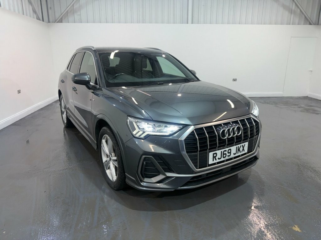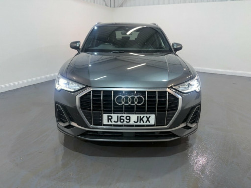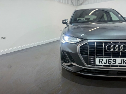 Audi Q3 1.5 TFSI CoD 35 S line SUV 5dr Petrol Manual Euro 6 (s/s) 150ps. This Audi Q3 S line is supplied with two keys and benefits from a documented service history recorded at 20,000, 29,000 and 38,000 miles. Powered by the efficient and responsive 1.5 TFSI petrol engine with cylinder on demand technology, it delivers strong performance with excellent fuel economy and is Euro 6 and ULEZ compliant. The S line specification gives the car a sporty and refined appearance, complemented by alloy wheels and privacy glass. Inside, the half leather interior is paired with climate control to provide a comfortable driving environment in all seasons. The cabin also features Audi's digital dashboard, offering a modern and intuitive display for the driver. Convenience and technology features include an electric power tailgate, front and rear parking sensors, heated folding door mirrors, automatic lights and cruise control. Infotainment is well covered with satellite navigation, DAB radio, Apple CarPlay and Bluetooth connectivity. A stylish, practical and well equipped premium SUV that drives very well and is ideal for everyday use or longer journeys. 1 x USB-C and 1 x USB-A Port with Charge, 19in Alloy Wheels - 5-Twin-Spoke Dynamic, 3-Spoke Leather Multi-Function Steering , 6 Passive Loud Speakers, 6-Airbag System, Adjustable Rear Seat Bench-Backrest with, Aluminium Look Interior Elements, Aluminium Roof Rails, Aluminium Window Trims, Ambient Lighting Pack, Anti Theft Locking Wheel Bolts, Anti-Theft Alarm, Audi Connect Infotainment Services Plus , Audi Connect Safety and Service - e-call, Audi Drive Select, Audi Pre-Sense Front with Pedestrian and, Audi Side Assist, Audi Smartphone Interface Includes Wirel, Audi Virtual Cockpit - 10.25in Display, Auto Dimming and Frameless Rear View Mir, B and C-Pillar Trim in High-Gloss Black, Bluetooth