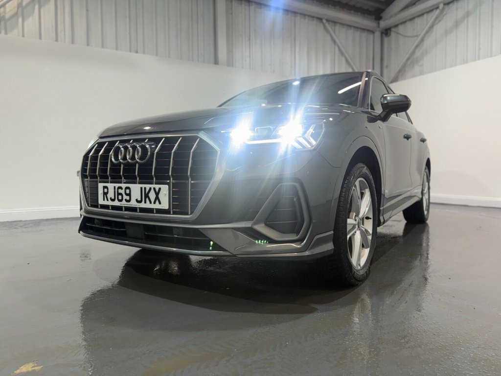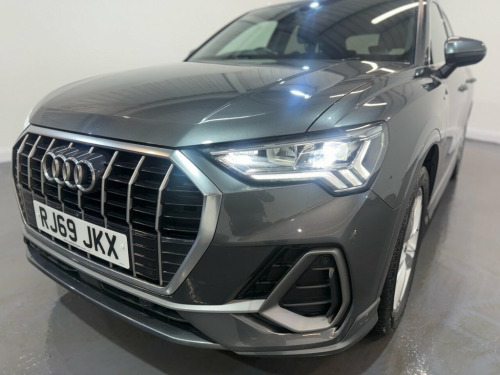 Audi Q3 1.5 TFSI CoD 35 S line SUV 5dr Petrol Manual Euro 6 (s/s) 150ps. This Audi Q3 S line is supplied with two keys and benefits from a documented service history recorded at 20,000, 29,000 and 38,000 miles. Powered by the efficient and responsive 1.5 TFSI petrol engine with cylinder on demand technology, it delivers strong performance with excellent fuel economy and is Euro 6 and ULEZ compliant. The S line specification gives the car a sporty and refined appearance, complemented by alloy wheels and privacy glass. Inside, the half leather interior is paired with climate control to provide a comfortable driving environment in all seasons. The cabin also features Audi's digital dashboard, offering a modern and intuitive display for the driver. Convenience and technology features include an electric power tailgate, front and rear parking sensors, heated folding door mirrors, automatic lights and cruise control. Infotainment is well covered with satellite navigation, DAB radio, Apple CarPlay and Bluetooth connectivity. A stylish, practical and well equipped premium SUV that drives very well and is ideal for everyday use or longer journeys. 1 x USB-C and 1 x USB-A Port with Charge, 19in Alloy Wheels - 5-Twin-Spoke Dynamic, 3-Spoke Leather Multi-Function Steering , 6 Passive Loud Speakers, 6-Airbag System, Adjustable Rear Seat Bench-Backrest with, Aluminium Look Interior Elements, Aluminium Roof Rails, Aluminium Window Trims, Ambient Lighting Pack, Anti Theft Locking Wheel Bolts, Anti-Theft Alarm, Audi Connect Infotainment Services Plus , Audi Connect Safety and Service - e-call, Audi Drive Select, Audi Pre-Sense Front with Pedestrian and, Audi Side Assist, Audi Smartphone Interface Includes Wirel, Audi Virtual Cockpit - 10.25in Display, Auto Dimming and Frameless Rear View Mir, B and C-Pillar Trim in High-Gloss Black, Bluetooth
