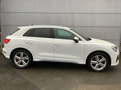 This 2022 Audi Q3 TFSI S line presents an exceptional ownership proposition, having been meticulously maintained by a single owner and boasting a remarkably low mileage of just 24,500 miles for its age. Under the bonnet, a responsive 1.5 litre petrol engine powers this Euro 6 compliant vehicle, offering a smooth and efficient driving experience. Inside, you'll find the comfort of Dual-Zone Electronic Climate Control, ensuring a pleasant cabin temperature for all occupants. Connectivity is seamless thanks to the Bluetooth Interface and the Audi Smartphone Interface, which includes Wireless Apple CarPlay and Android Auto. Navigating and parking are made easier with the Light and Rain Sensor, which automatically activates the headlights, and the Rear Parking Sensors providing audible assistance. The Q3 TFSI S line is designed for practicality and performance. Its acceleration from 0-60mph in 9.4 seconds demonstrates its capable performance, while the generous boot space ensures you have ample room for luggage, shopping, or sporting equipment. These attributes, combined with its low mileage and single owner history, set this Audi Q3 apart from other vehicles in its class, offering a compelling package of style, comfort, and everyday usability. Straight sale price, part ex welcome, for more details contact Gary anytime on 02890645770 or 07789758884. 19in Alloy Wheels - 7.0J 5-Twin-Spoke - , 2 USB-C Ports with Charge and Data Funct, 3-Spoke Leather Multi-Function Steering , 6 Passive Loud Speakers, 6-Airbag System, Adjustable Rear Seat Bench-Backrest with, Aluminium Look Interior Elements, Aluminium Roof Rails, Aluminium Window Trims, Anti Theft Locking Wheel Bolts, Anti-Theft Alarm, Audi Connect Infotainment Services Plus , Audi Connect Safety and Service - e-call, Audi Drive Select, Audi Pre-Sense Basic, Audi Pre-Sense Front with Pedestrian and, Audi Smartphone Interface includes Wirel, Audi Virtual Cockpit - 10.25in Display, Auto Dimming and Frameless Rear View Mir, B and C-Pillar Trim in High-Gloss Black, Bluetooth Interface, Body Co