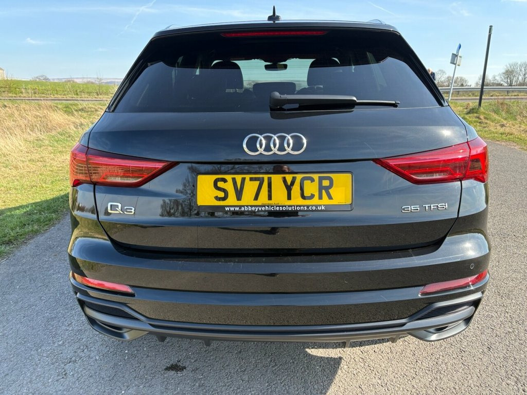 This 2021 Audi Q3 TFSI S line boasts a full service history and has had only one owner from new, ensuring excellent provenance. This Euro 6 compliant 1.5 litre petrol model comes with a clear vehicle history check and a 6 month warranty for your peace of mind. It features a flat-bottomed 3-spoke leather-trimmed multi-function sport steering wheel with gear shift paddles, a Bluetooth interface, and dual-zone electronic climate control. The light and rain sensor automatically adjusts headlights, while rear parking sensors aid manoeuvrability. With a 0-60mph time of 9.4 seconds, this Q3 TFSI S line offers responsive performance. The 12 months MOT provided on purchase and the last service completed at 48,000 miles further demonstrate its well-maintained condition. These factors, combined with its comprehensive features and single owner history, position this Audi Q3 as a superior choice compared to other vehicles in its class. Mythos Black, Pulse Cloth-Twin Leather - Sport Seats -, Flat-Bottomed 3-Spoke Leather-Trimmed Mu, 19in Alloy Wheels - 7.0J 5-Twin-Spoke - , 2 USB-C Ports with Charge and Data Funct, 3-Spoke Leather Multi-Function Steering , 6 Passive Loud Speakers, 6-Airbag System, Adjustable Rear Seat Bench-Backrest with, Aluminium Look Interior Elements, Aluminium Roof Rails, Aluminium Window Trims, Anti Theft Locking Wheel Bolts, Anti-Theft Alarm, Audi Connect Infotainment Services Plus , Audi Connect Safety and Service - e-call, Audi Drive Select, Audi Pre-Sense Basic, Audi Pre-Sense Front with Pedestrian and, Audi Smartphone Interface includes Wirel, Audi Virtual Cockpit - 10.25in Display, Auto Dimming