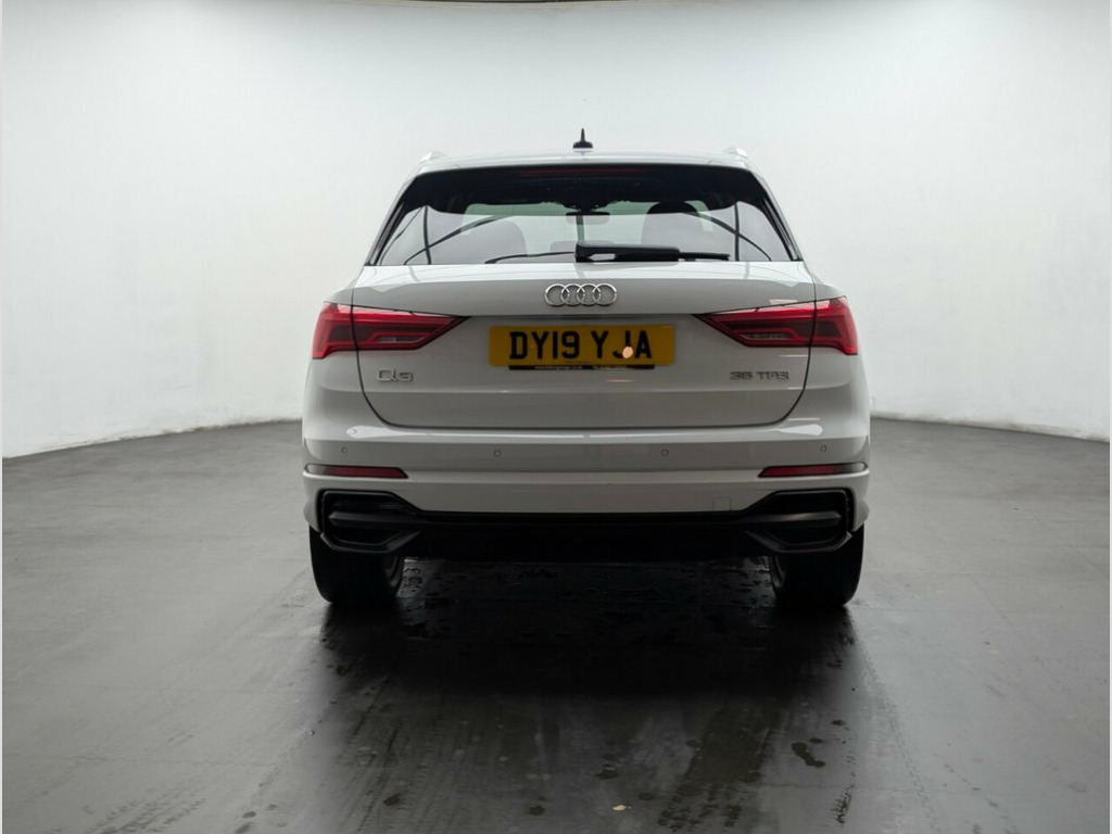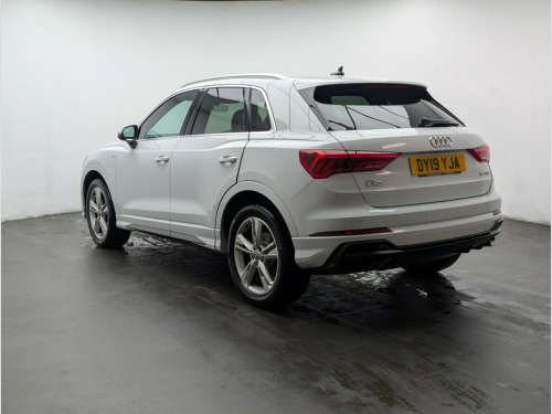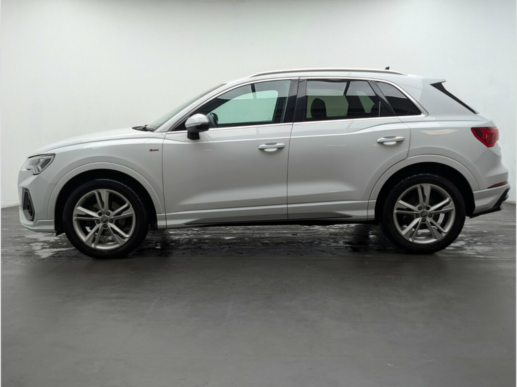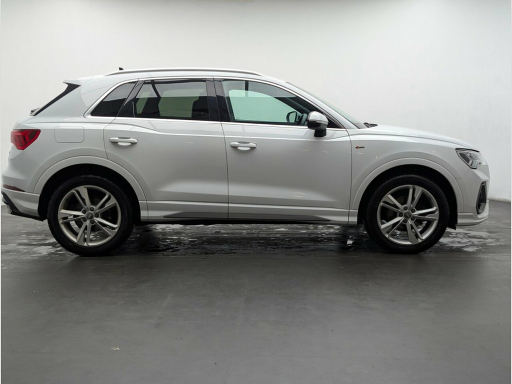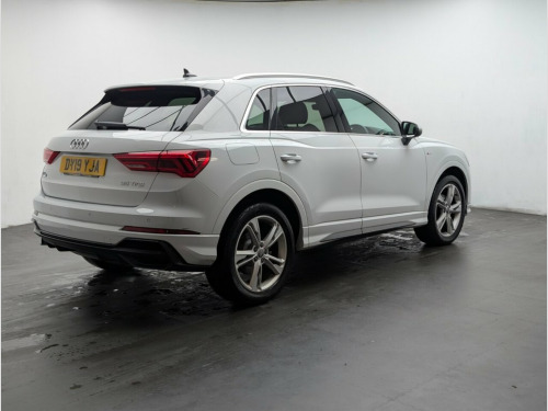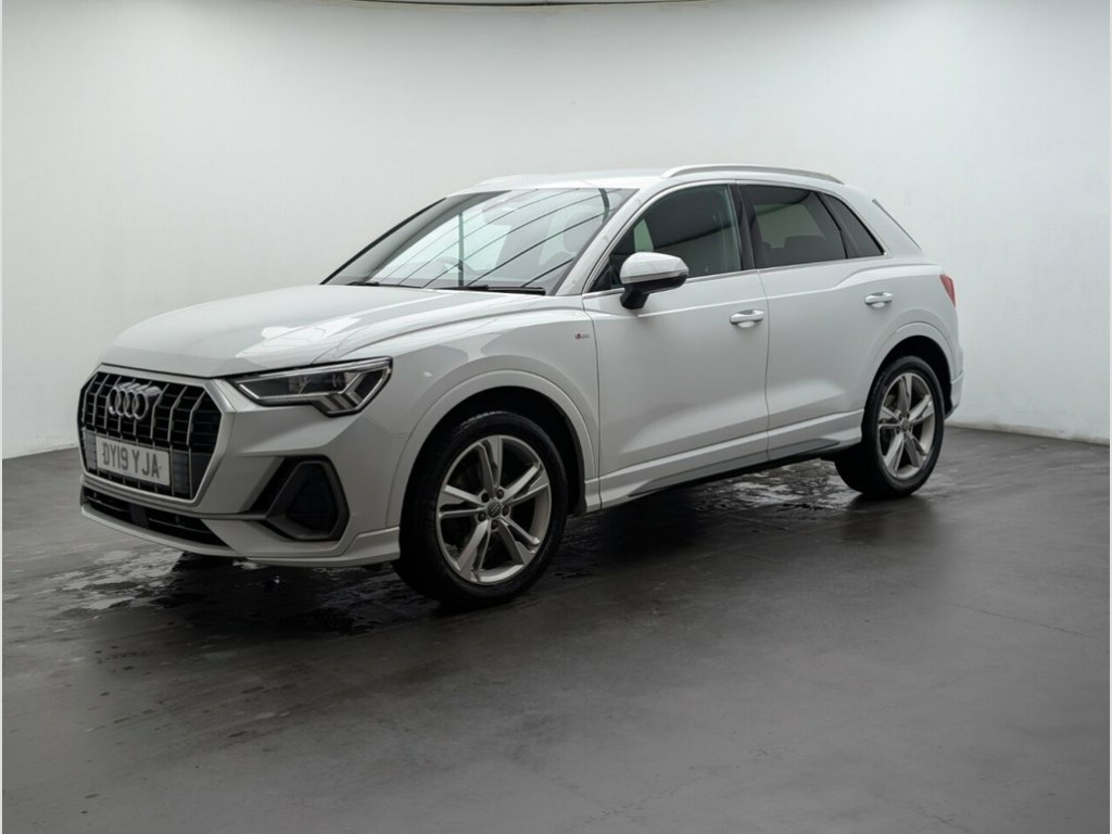 19" alloys, Navigation, Privacy glass, Hold assist and Bluetooth. This 2019 Audi Q3 TFSI S line boasts exceptionally low mileage for its age, having covered just 46,500 miles. This Euro 6 compliant model features a 1.5 litre petrol engine and is presented in the desirable S line trim. For your peace of mind, the MOT is valid until May 2026. The Q3 is equipped with advanced technology including Audi Side Assist with Blind Spot Assistance, rear parking sensors with parking assistance, and a Bluetooth interface for seamless connectivity. Driving is enhanced by LED headlights with LED daytime running lights and dynamic rear indicators, ensuring excellent visibility. Experience a refined drive with the Q3's dual zone electronic climate control, allowing you to set individual temperatures for driver and passenger. This particular Q3 offers a compelling blend of performance and efficiency, with a 0-60mph acceleration time of 9.1 seconds. Its low CO2 emissions highlight its consideration for the environment, making it a smart choice compared to many similar vehicles. This combination of low mileage, desirable features, and efficient performance makes this Audi Q3 a standout option. 19in Alloy Wheels - 5-Twin-Spoke Dynamic, 3-Spoke Leather Multi-Function Steering , 6 Passive Loud Speakers, 6-Airbag System, Adjustable Rear Seat Bench-Backrest with, Aluminium Roof Rails, Aluminium Window Trims, Ambient Lighting Pack, Anti Theft Locking Wheel Bolts, Anti-Theft Alarm, Audi Connect Infotainment Services Plus , Audi Connect Safety and Service - e-call, Audi Drive Select, Audi Pre-Sense Front with Pedestrian and, Audi Side Assist, Audi Smartphone Interface, Audi Virtual Cockpit - 10.25in Display, Auto Dimming and Frameless Rear View Mir, B and C-Pillar Trim in High-Gloss Black, Bluetooth Interface, Body Coloured Door Mirrors, Bumpers in Full Body Colour Paint Finish, Cloth Hea