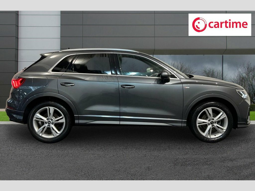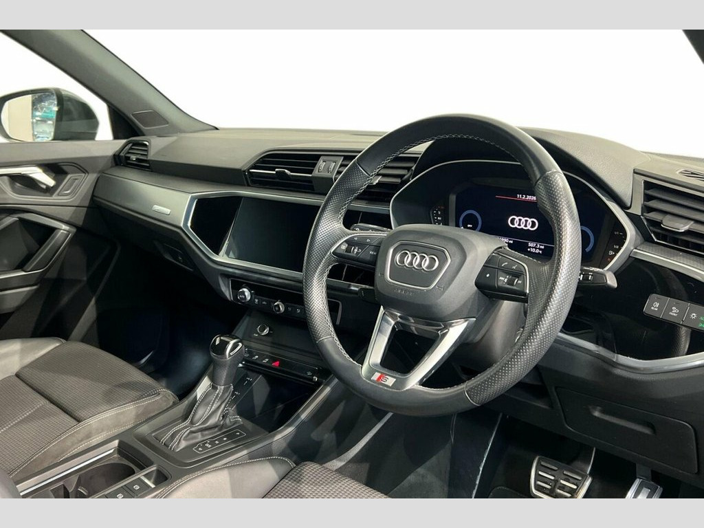 This 2021 Audi Q3 TFSI S line boasts exceptionally low mileage for its age, having covered just 31,800 miles. This well presented example features the desirable S line trim and is powered by an efficient 1.5 litre petrol engine, meeting Euro 6 emissions standards. For your peace of mind, the MOT is valid until July 2026. Experience seamless connectivity with the Audi Smartphone Interface, offering Wireless Apple CarPlay and Android Auto, alongside a Bluetooth interface for effortless calls and media streaming. The Q3 is equipped with LED headlights and daytime running lights for enhanced visibility, complemented by automatic headlights activated by the Light and Rain Sensor. Rear parking sensors make manoeuvring simple and safe. This Q3 accelerates from 0 to 60mph in 9.1 seconds, demonstrating a responsive driving experience that sets it apart from other vehicles in its class. 19in Alloy Wheels - 7.0J 5-Twin-Spoke - , 2 USB-C Ports with Charge and Data Funct, 3-Spoke Leather Multi-Function Steering , 6 Passive Loud Speakers, 6-Airbag System, Adjustable Rear Seat Bench-Backrest with, Aluminium Look Interior Elements, Aluminium Roof Rails, Aluminium Window Trims, Anti Theft Locking Wheel Bolts, Anti-Theft Alarm, Audi Connect Infotainment Services Plus , Audi Connect Safety and Service - e-call, Audi Drive Select, Audi Pre-Sense Basic, Audi Pre-Sense Front with Pedestrian and, Audi Smartphone Interface includes Wirel, Audi Virtual Cockpit - 10.25in Display, Auto Dimming and Frameless Rear View Mir, B and C-Pillar Trim in High-Gloss Black, Bluetooth Interface, Body Co