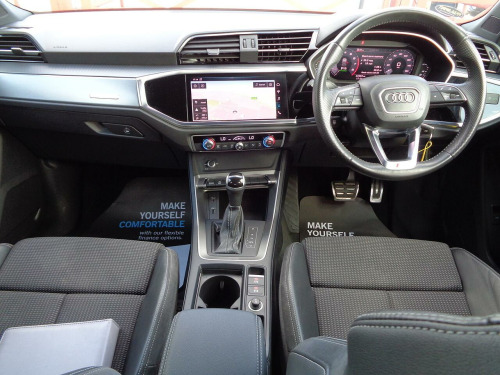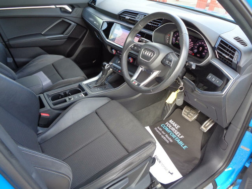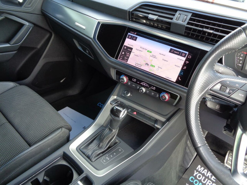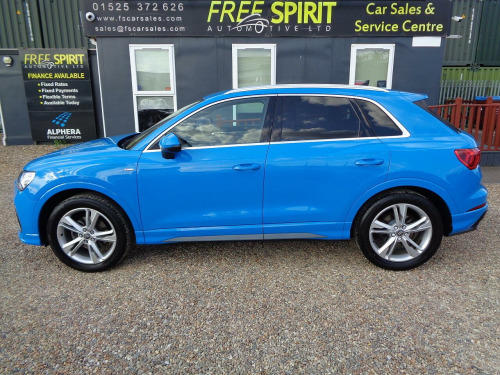 A Stunning Q3 S-Line Automatic with Full Service History, Specification includes, Satellite Navigation, Apple/Android Car Play, Front & Rear Parking Sensors, Cruise Control, DAB Radio, CD, Bluetooth Phone, Bluetooth Audio, Lane Departure Warning, Climate Control, Part Leather Seats, Electric Heated Power Fold Mirrors, Electric Windows, Electric Tailgate, Remote Central Locking, Alloy Wheels…………………. See Below For Further Specification................. The additional specification details below are provided by Autotrader not by Free Spirit. They are a general guide for the most recent model of this vehicle but may not be precisely correct for this actual vehicle so please don’t rely on them. We will happily assist you in carefully checking that this vehicle’s specification is in line with your requirements.Free Spirit Automotive have been trading since 2004. We fund cars with BMW Alphera Finance & have access to multiple lenders offering different lending criteria to accommodate all customer credit scores. All vehicles are fully Health Checked in our purpose-built workshop prior to delivery & are Serviced & MOT’d as required. Every vehicle comes with a Warranty as standard. We stock between 70-100 cars and have more vehicles stocked than advertised. Part Exchange welcome. We have sold & delivered over 10,000 cars since we opened in 2004.. 6 Passive Loud Speakers, Audi Connect Infotainment Services Plus (3 Year Subscription From New), Audi Connect Safety and Service - e-call, Audi Smartphone Interface, Bluetooth Interface, DAB Digital Radio, MMI Navigation Plus with High Resolution 10.1in Touchscreen Colour Display, Tow Bar Preparation, Audi Drive Select, Audi Side Assist, Cruise Control System with Speed Limiter, Lane Departure Warning, Rear Parking Sensors, Tyre Pressure Warning Light, Voice Control System with Natural Language Interaction, 19in Alloy Wheels - 5-Twin-Spoke Dynamic, Aluminium Roof Rails, Aluminium Window Trims, Anti Theft Locking Wheel Bolts, B and C-Pillar Trim in High-Gloss Black, Body Coloured Door Mirrors, Bumpers in Full Body Colour Paint Finish, Diffuser - Platinum Grey - Matt, Door Mirrors - Electrically Adjustable and Heated with Integrated LED Side Indicators, Frame of Front Side Air Inlets in Platinum Grey - Matt, Front Spoiler Blade in Platinum Grey - Matt, Grille Vertical Bars in Aluminium Silver - Matt, Privacy Glass, Radiator Grille - Titanium Black, S Line Badges on the Front Wings, S line Front and Rear Bumpers and Side Skirts, Side Skirt Insert in Platinum Grey - Matt, Tyre Repair Kit, Windscreen with Acoustic Glazing, LED Headlights with LED Daytime Running Lights and Dynamic Rear Indicator, LED Rear Lights, Light and Rain Sensor, 3-Spoke Leather Multi-Function Steering Wheel - S Badging and Grips in Perforated Leather with Contrast Stitching, Adjustable Rear Seat Bench-Backrest with Centre Armrest and Cupholder, Ambient Lighting Pack, Audi Virtual Cockpit - 10.25in Display, Auto Dimming and Frameless Rear View Mirror, Cloth Headlining in Black, Detail in Dashboard Around the MMI Touch Colour Display, Door Sill Trims with Aluminium Inlay, Dual-Zone Electronic Climate Control, Front and Rear Floor Mats in Black with Contrast Stitching in Rock Grey, Front Centre Armrest, Front Sport Seats with S Embossed Logo, Gear Knob - Perforated Leather, Illuminated Door Sill Trims with S Logo, Inlays - Matt Brushed Aluminium - Dark, Interior Elements in Leatherette, Luggage Compartment Sill Protection in Stainless Steel, Manual Seat Adjustment for Front Seats, Non-Smoking Package, Pedals in Stainless Steel, Power Operated Tailgate, Tool Kit, Progressive Steering, Sport Suspension, 6-Airbag System, Anti-Theft Alarm, Audi Pre-Sense Front with Pedestrian and Cyclist Recognition, ESC - Electronic Stabilisation Control inc ABS - ASR and EDL, First Aid Kit and Warning Triangle, Hold Assist, ISOFIX Child Seat Mounting for the Front Passenger Seat with Front Passenger Airbag Deactivation and ISOFIX Child Seat Mounting and Top Tether for the Outer Rear Seats, Pre-Sense Basic, Seat Belt Monitoring, Audi Virtual Cockpit Plus.
