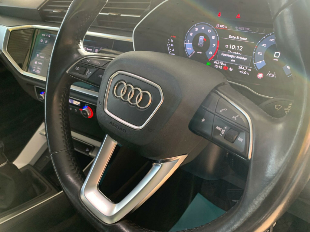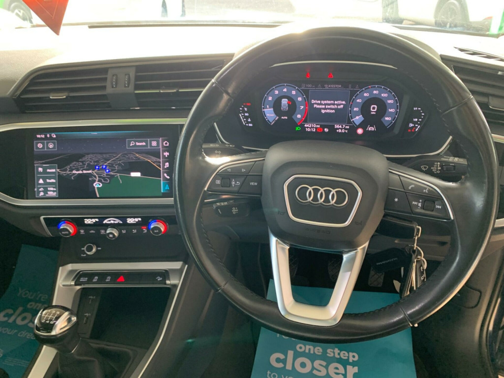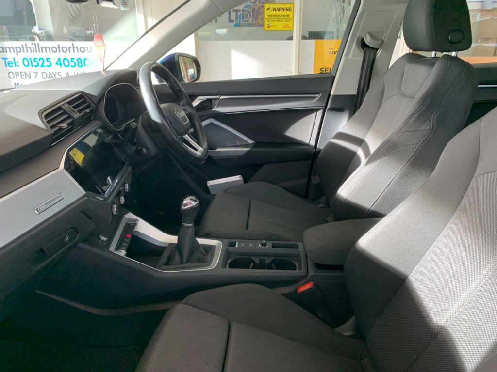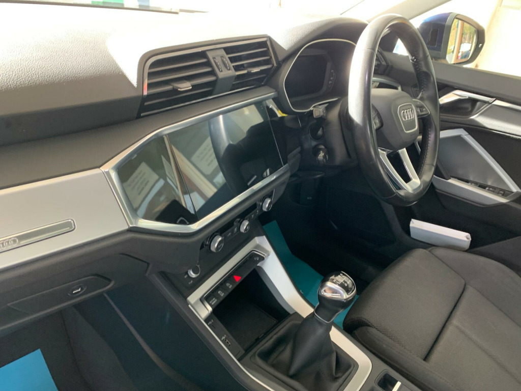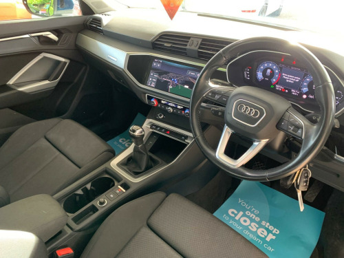 Satellite Navigation, Power Tailgate, Parking Sensors, One Owner, Two Keys, HPI Clear, Fully Inspected, This 2020 Audi Q3 TFSI Sport is a superb example, having been owned by just one person from new and boasting a clear vehicle history check. This Euro 6 compliant 1.5 litre petrol model comes in the Sport trim, offering a refined driving experience. Its MOT is valid until September 2026, providing peace of mind for the new owner. Notable features include automatic headlights that activate with the Light and Rain Sensor, alongside LED headlights with distinctive LED Daytime Running Lights and dynamic rear indicators. For convenience, it features a Bluetooth interface for seamless connectivity and Dual-Zone Electronic Climate Control to ensure comfort for all occupants. The Audi Side Assist system also enhances safety by providing blind spot assistance.The Q3 TFSI Sport excels with its practical design, offering generous boot space for all your needs. Its performance is equally impressive, achieving 0-62mph in a brisk 9.5 seconds, demonstrating a responsive and engaging drive. These highlights, such as the advanced lighting systems, driver assistance technology, and efficient performance, position this Audi Q3 as a superior choice compared to other vehicles in its class. x usb-c and 1 x usb-a port with charge and data functions, 18in alloy wheels - 5-double-arm design, 3-spoke leather multi-function steering wheel - height and reach adjustable, 6 passive loud speakers, 6-airbag system, adjustable rear seat bench-backrest, aluminium look interior elements, aluminium roof rails, aluminium window trims, anti theft locking wheel bolts, anti-theft alarm, audi connect infotainment services plus including amazon alexa integration (3 year subscription from new), audi connect safety and service - e-call, audi drive select, audi pre-sense front with pedestrian and cyclist recognition, audi side assist, audi smartphone interface includes wireless apple carplay, audi virtual cockpit - 10.25in display, auto dimming and frameless rear view mirror, b and c-pillar trim in high-gloss black, bluetooth interface, body coloured door mirrors, bumpers in full body colour paint finish, camera-based traffic sign recognition, cloth headlining in lunar silver, cruise control with speed limiter, dab digital radio, detail in dashboard around the mmi touch colour display in glass look - black with surround in aluminium look, door mirrors - electrically folding - adjustable and heated with integrated led side indicators and kerb-view function for passenger side, door sill trims with aluminium inlay, dual-zone electronic climate control, esc - electronic stabilisation control inc abs - asr and edl, electric windows - front, electromechanical parking brake, electronically operated child locks, first aid kit and warning triangle, frame of front side air inlets in selenite silver - matt, front centre armrest, front spoiler in selenite silver - matt, front and rear floor mats, grille surround in silver - chrome, grille vertical bars in aluminium silver - matt, hill descent control, hill hold assist, isofix child seat mounting for the front passenger seat with front passenger airbag deactivation and isofix child seat mounting and top tether for the outer rear seats, inlays - micrometallic silver, interior lighting, led headlights with led daytime running lights and dynamic rear indicator, led rear lights, lane departure warning, light and rain sensor, luggage compartment sill protection in stainless steel, mmi navigation plus with high resolution 10.1in touchscreen colour display, manual seat adjustment for front seats, non-smoking package, power operated tailgate, pre-sense basic, progressive steering, radiator grille - titanium black, rear diffuser in selenite silver - matt, rear parking sensors, seat belt monitoring, standard suspension, tool kit, tyre pressure warning light, tyre repair kit, voice control system with natural language interaction, windscreen in acoustic glazing