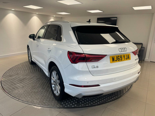 Discover this 2019 Audi Q3 TFSI Sport, a refined and capable compact SUV. This Euro 6 compliant model boasts a smooth 1.5 litre petrol engine, offering an engaging driving experience with a 0-62mph acceleration time of just 9.6 seconds. Its Sport trim level ensures a well appointed interior, complemented by practical features such as LED headlights with LED daytime running lights and dynamic rear indicators for enhanced visibility. This Audi Q3 also features a Bluetooth interface for seamless connectivity, Audi Side Assist to help monitor blind spots, and rear parking sensors to aid manoeuvring. Inside, youll appreciate the dual zone electronic climate control, ensuring comfort for all occupants. The generous boot space provides ample room for luggage or shopping, while its low CO2 emissions indicate a more environmentally conscious choice compared to many similar vehicles.