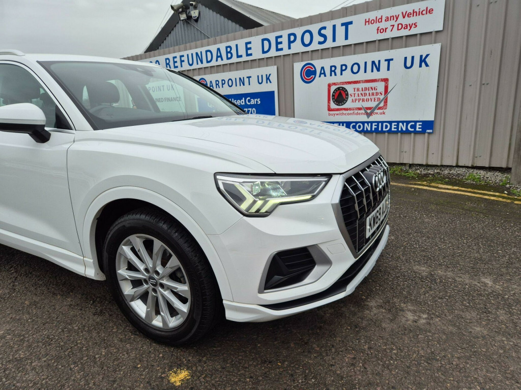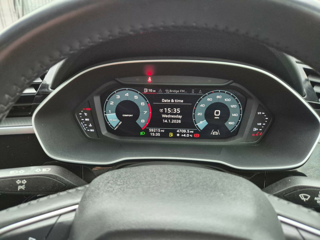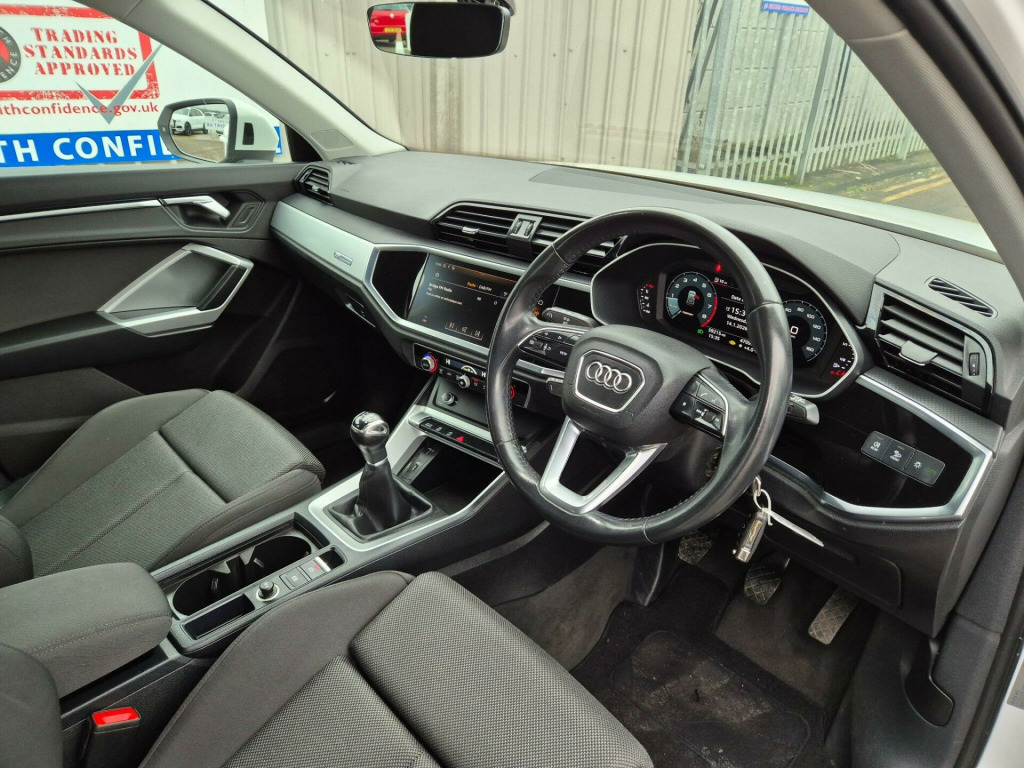 With a full service history and an MOT valid until January 2027, this 2019 Audi Q3 TFSI Sport offers excellent peace of mind. This Euro 6 compliant model features a 1.5 litre petrol engine and has been meticulously maintained, with its last service completed on 14 January 2026 at 58,950 miles. The Sport trim level ensures a well equipped interior, enhanced by practical features such as a Bluetooth interface for seamless connectivity and a light and rain sensor that automatically adjusts headlights.Experience the convenience of LED headlights with dynamic rear indicators and daytime running lights, alongside Audi Side Assist for enhanced blind spot monitoring. Parking is made easier with rear parking sensors, and you'll appreciate the generous boot space for all your needs. This Q3 also boasts low CO2 emissions, making it an environmentally conscious choice. Its brisk acceleration, reaching 0 to 62mph in just 9.6 seconds, demonstrates its capable performance, setting it apart from other vehicles in its class.. 18in Alloy Wheels - 5-Double-Arm Design, 3-Spoke Leather-Trimmed Multi-Function Steering Wheel - Height and Reach Adjustable, 6 Passive Loud Speakers, 6-Airbag System, Adjustable Rear Seat Bench-Backrest, Aluminium Look Interior Elements, Aluminium Roof Rails, Aluminium Window Trims, Anti Theft Locking Wheel Bolts, Anti-Theft Alarm, Audi Connect Infotainment Services Plus (3 Year Subscription From New), Audi Connect Safety and Service - e-call, Audi Drive Select, Audi Pre-Sense Front with Pedestrian and Cyclist Recognition, Audi Side Assist, Audi Smartphone Interface, Audi Virtual Cockpit - 10.25in Display, Auto Dimming and Frameless Rear View Mirror, B and C-Pillar Trim in High-Gloss Black, Bluetooth Interface, Body Coloured Door Mirrors, Bumpers in Full Body Colour Paint Finish, Cloth Headlining in Lunar Silver, Cruise Control System with Speed Limiter, DAB Digital Radio, Detail in Dashboard Around the MMI Touch Colour Display, Door Mirrors - Electrically Adjustable and Heated with Integrated LED Side Indicators, Door Sill Trims with Aluminium Inlay, Dual-Zone Electronic Climate Control, ESC - Electronic Stabilisation Control inc ABS - ASR and EDL, First Aid Kit and Warning Triangle, Frame of Front Side Air Inlets in Selenite Silver - Matt, Front Centre Armrest, Front Spoiler in Selenite Silver - Matt, Front and Rear Floor Mats, Grille Vertical Bars in Aluminium Silver - Matt, Hold Assist, ISOFIX Child Seat Mounting for the Front Passenger Seat with Front Passenger Airbag Deactivation and ISOFIX Child Seat Mounting and Top Tether for the Outer Rear Seats, Inlays - Micrometallic Silver, LED Headlights with LED Daytime Running Lights and Dynamic Rear Indicator, LED Rear Lights, Lane Departure Warning, Light and Rain Sensor, Luggage Compartment Sill Protection in Stainless Steel, MMI Navigation Plus with High Resolution 10.1in Touchscreen Colour Display, Manual Seat Adjustment for Front Seats, Non-Smoking Package, Power Operated Tailgate, Pre-Sense Basic, Progressive Steering, Radiator Grille - Titanium Black, Rear Diffuser in Selenite Silver - Matt, Rear Parking Sensors, Seat Belt Monitoring, Standard Suspension, Tool Kit, Tow Bar Preparation, Tyre Pressure Warning Light, Tyre Repair Kit, Voice Control System with Natural Language Interaction, Windscreen with Acoustic Glazing. Full service history