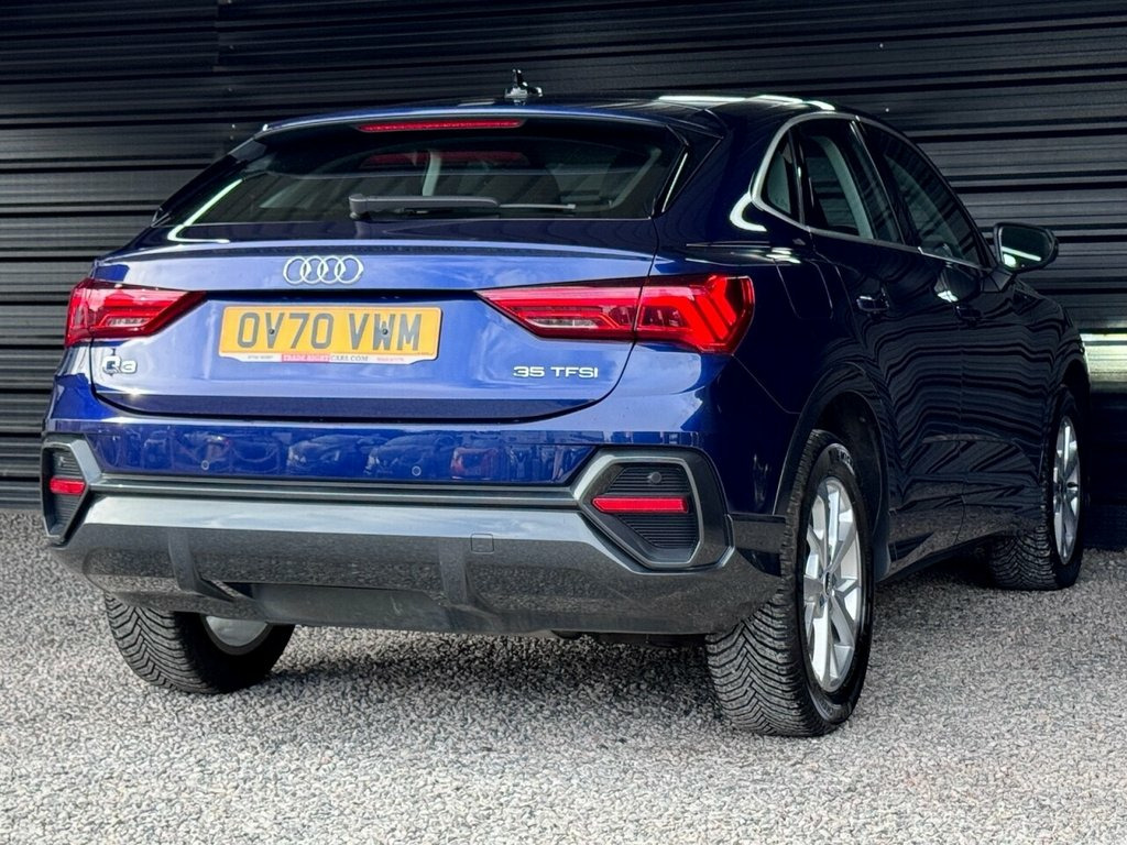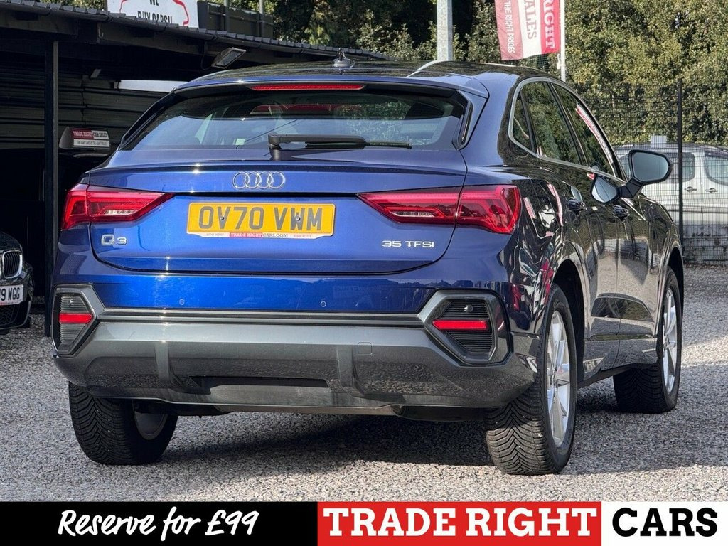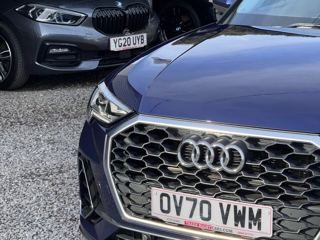 JUST ARRIVED & READY TO DRIVE AWAY! 2020/70 Audi Q3 1.5 TFSi CoD 35 Sport [Nav] Sportback finished in Navarra Blue. We are pleased to offer this lovely 5 door petrol SUV. This is the highly desirable 1.5 litre model with a 6 speed manual transmission that offers 148 BHP. It has covered just 31,830 miles with service history (3 services) and drives as you would expect. Recently serviced @ 29,369 miles. MOT until 29th August 2026 with no advisories. The car is ready to drive away. Four matching Michelin tyres. We will also include a complimentary 12 month AA breakdown cover. Two owners from new. Euro 6 status - ULEZ compliant. A superb low mileage example with the sought-after and upgraded Sport specification. Key features include; flat bottom steering wheel, electric powered tailgate, 10.25" virtual cockpit, DAB, 18" diamond cut alloy wheels, dual zone A/C climate control, LED DRL's and MMi navigation plus. Advertised below the AutoTrader RRP. Please let us know if you would like any further information or a video sent via WhatsApp. Please be aware many of our cars sell before the photos go live so please call or reserve to avoid any disappointment. 19in Alloy Wheels - 7.0J 5-Arm-Spoke - D, Index Cloth - Sport Seats - Black-Silver, 18in Alloy Wheels - 7.0J 5-Y-Spoke Desig, Navarra Blue, 18in Alloy Wheels - 7.0J 5-Double-Arm-Sp, 2 USB-C Ports with Charge and Data Funct, 3-Spoke Leather Multi-Function Steering , 6 Passive Loud Speakers, 6-Airbag System, Adjustable Rear Seat Bench-Backrest, Aluminium Look Interior Elements, Aluminium Window Trims, Anti Theft Locking Wheel Bolts, Anti-Theft Alarm, Audi Connect Infotainment Services Plus , Audi Connect Safety and Service - e-call, Audi Drive Select, Audi Pre-Sense Basic, Audi Pre-Sense Front with Pedestrian and, Audi Smartphone Interface includes Wirel, Audi Virtual Cockpit - 10.25in Display