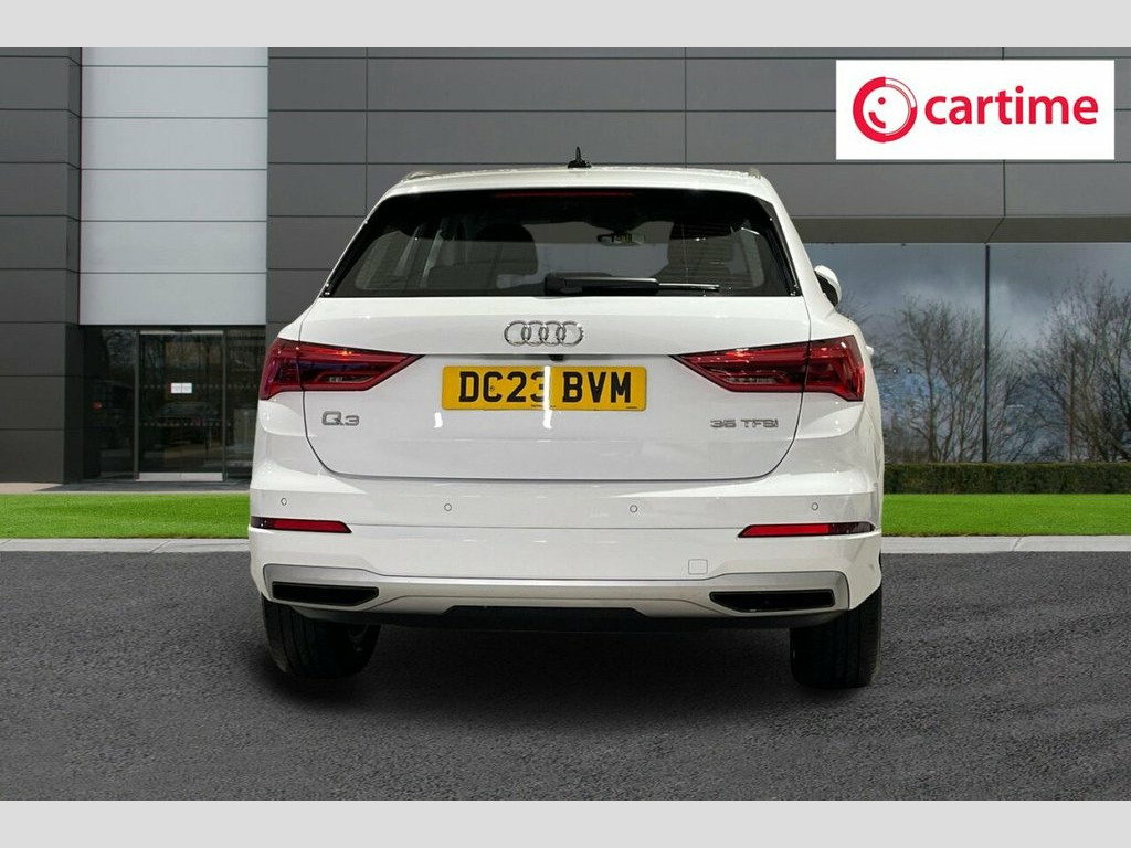This 2023 Audi Q3 TFSI Sport is a superb example, having had only one owner since new. This stylish SUV is equipped with a responsive 1.5 litre petrol engine and meets Euro 6 emission standards. For your peace of mind, the MOT is valid until February 2027. Inside, you'll find a comfortable cabin featuring Dual Zone Electronic Climate Control and the convenience of a Bluetooth Interface. The Light and Rain Sensor automatically manages your headlights, while the Audi Smartphone Interface seamlessly integrates your phone with Wireless Apple CarPlay and Android Auto. Powerful LED Headlights with LED Daytime Running Lights ensure excellent visibility. Experience impressive performance with a 0-60mph acceleration time of just 9.4 seconds, demonstrating its capability. This Q3 also boasts low CO2 emissions, making it a more environmentally conscious choice compared to many similar vehicles. Furthermore, you'll appreciate the generous boot space, offering ample room for all your luggage and shopping needs. 18in Alloy Wheels - 7.0J 5-Double-Arm-Sp, 2 USB-C Ports with Charge and Data Funct, 3-Spoke Leather Multi-Function Steering , 6 Passive Loud Speakers, 6-Airbag System, Adjustable Rear Seat Bench-Backrest, Aluminium Look Interior Elements, Aluminium Roof Rails, Aluminium Window Trims, Anti Theft Locking Wheel Bolts, Anti-Theft Alarm, Arkona White, Audi Connect Infotainment Services Plus , Audi Drive Select, Audi Pre-Sense Basic, Audi Pre-Sense Front with Pedestrian and, Audi Smartphone Interface includes Wirel, Audi Virtual Cockpit - 10.25in Display, Auto Dimming and Frameless Rear View Mir, B and C-Pillar Trim in High-Gloss Black, Bluetooth Interface, Body Coloured Door Mirrors, Camera-Based