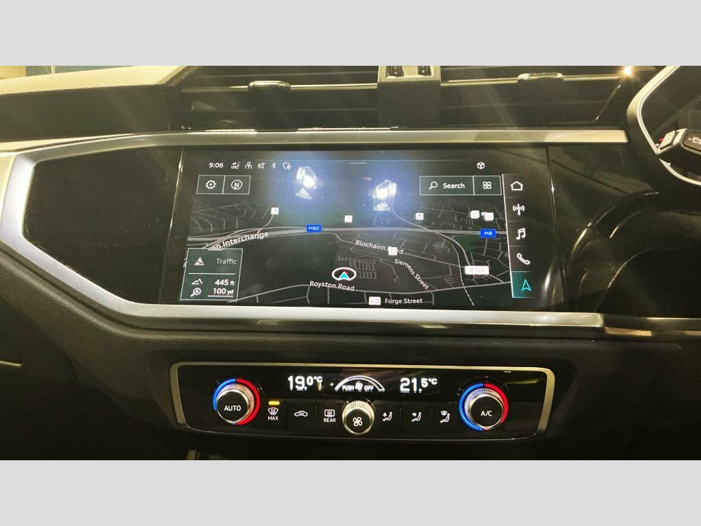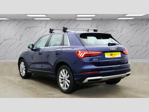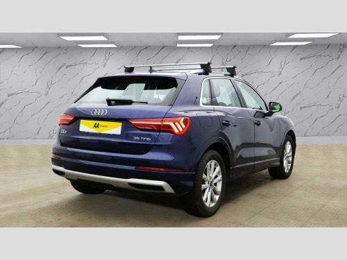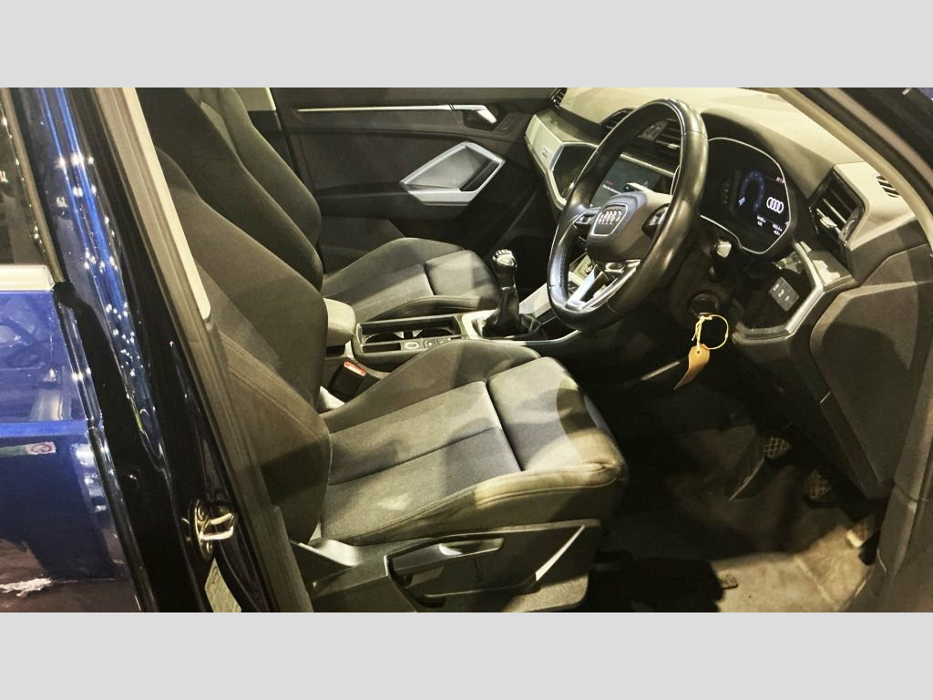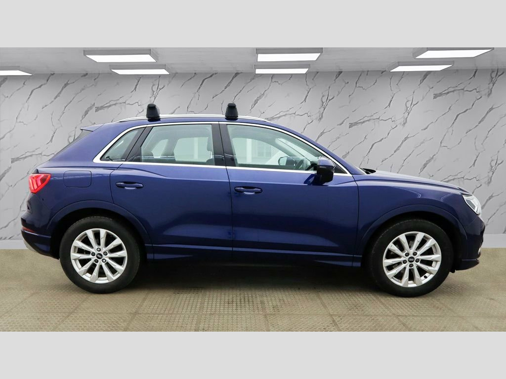 This 2020 Audi Q3 TFSI Sport offers exceptional provenance, having been owned by just one careful keeper and boasting an MOT valid until February 2027, with a clear vehicle history check. This Euro 6 compliant model features a responsive 1.5 litre petrol engine, delivering an acceleration of 0-60mph in 9.4 seconds. Inside, you'll find a host of convenient features including a Bluetooth interface for seamless connectivity, rear parking sensors to aid manoeuvring, and dual zone electronic climate control for personalised comfort. The light and rain sensor automatically adjusts headlights, while LED headlights with LED daytime running lights and dynamic rear indicators ensure excellent visibility. The Audi Q3 TFSI Sport stands out with its generous boot space, providing ample room for all your needs. The inclusion of LED headlights with dynamic rear indicators, for example, demonstrates a higher level of lighting technology compared to many other vehicles in its class. Furthermore, the combination of rear parking sensors and automatic headlights, managed by the light and rain sensor, highlights a thoughtful integration of driver assistance features that enhance the overall driving experience and safety. Index Cloth - Sport Seats - Black-Silver, Navarra Blue, 18in Alloy Wheels - 7.0J 5-Double-Arm-Sp, 2 USB-C Ports with Charge and Data Funct, 3-Spoke Leather Multi-Function Steering , 6 Passive Loud Speakers, 6-Airbag System, Adjustable Rear Seat Bench-Backrest, Aluminium Look Interior Elements, Aluminium Roof Rails, Aluminium Window Trims, Anti Theft Locking Wheel Bolts, Anti-Theft Alarm, Audi Connect Infotainment Services Plus , Audi Connect Safety and Service - e-call, Audi Drive Select, Audi Pre-Sense Basic, Audi Pre-Sense Front with Pedestrian and, Audi Smartphone Interface includes Wirel, Audi Virtual Cockpit - 10.25in Display, Auto Dimming and Frameless Rear View Mir, B and C-Pillar Tri