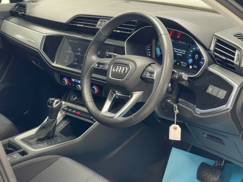 This 2023 Audi Q3 TFSI Technik is a superb example, having had only one owner since new. This stylish SUV boasts a 1.5 litre petrol engine, meeting Euro 6 emissions standards. Inside, you'll find the convenience of Dual Zone Electronic Climate Control, ensuring comfort for all occupants. The Audi Smartphone Interface seamlessly integrates your phone, offering Wireless Apple CarPlay and Android Auto for easy access to your favourite apps. Stay connected with the Bluetooth Interface, and navigate tight spaces with confidence thanks to the Rear Parking Sensors. Automatic headlights are also included, activated by the Light and Rain Sensor.The Audi Q3 TFSI Technik offers a responsive driving experience, accelerating from 0 to 62 miles per hour in just 9.4 seconds. These features, combined with its single owner provenance, demonstrate a well cared for vehicle that stands out from others. This Q3 provides a refined and technologically advanced way to travel, perfect for everyday journeys and longer trips alike. in alloy wheels - 5-twin-spoke design, 2 usb-c ports with charge and data functions, 3-spoke leather multi-function steering wheel - height and reach adjustable, 6 passive loud speakers, 6-airbag system, adjustable rear seat bench-backrest, anti theft locking wheel bolts, anti-theft alarm, audi connect infotainment services plus (3 year subscription from new), audi connect safety and service - e-call, audi drive select, audi pre-sense basic, audi pre-sense front with pedestrian and cyclist recognition, audi smartphone interface includes wireless apple carplay, audi virtual cockpit - 10.25in display, auto dimming and frameless rear view mirror, black roof rails, bluetooth interface, body coloured door mirrors, camera-based traffic sign recognition, child locks - manual, cloth headlining in lunar silver, cruise control system with speed limiter, dab digital radio, detail in dashboard around the mmi touch colour display in glass look - black with surround in aluminium look, diffuser in grained anthracite, door mirrors - electrically folding - adjustable and heated with integrated led side indicators and kerb-view function for passenger side, dual-zone electronic climate control, esc - electronic stabilisation control inc abs - asr and edl, electric windows - front, electromechanical parking brake, exterior bumpers - wheel arch trims and side sill trims in grained matt black, first aid kit and warning triangle, front centre armrest, front and rear floor mats, hill descent control, hill hold assist, isofix child seat mounting for the front passenger seat with front passenger airbag deactivation and isofix child seat mounting and top tether for the outer rear seats, inlays - micrometallic silver, interior lighting, led headlights with led daytime-running lights - halogen lights in the rear, lane departure warning, light and rain sensor, luggage compartment sill protection in stainless steel, mmi navigation plus with high resolution 10.1in touchscreen colour display, manually adjustable front seats, non-smoking package, power operated tailgate, progressive steering, radiator protective grille - grained, rear parking sensors, seat belt monitoring, standard suspension, tool kit, tyre pressure warning light, tyre repair kit, voice control system with natural language interaction, windscreen in acoustic glazing