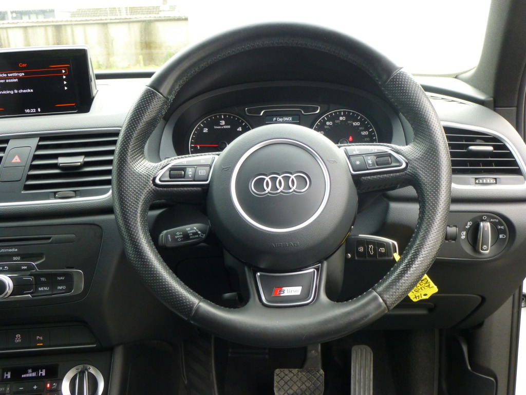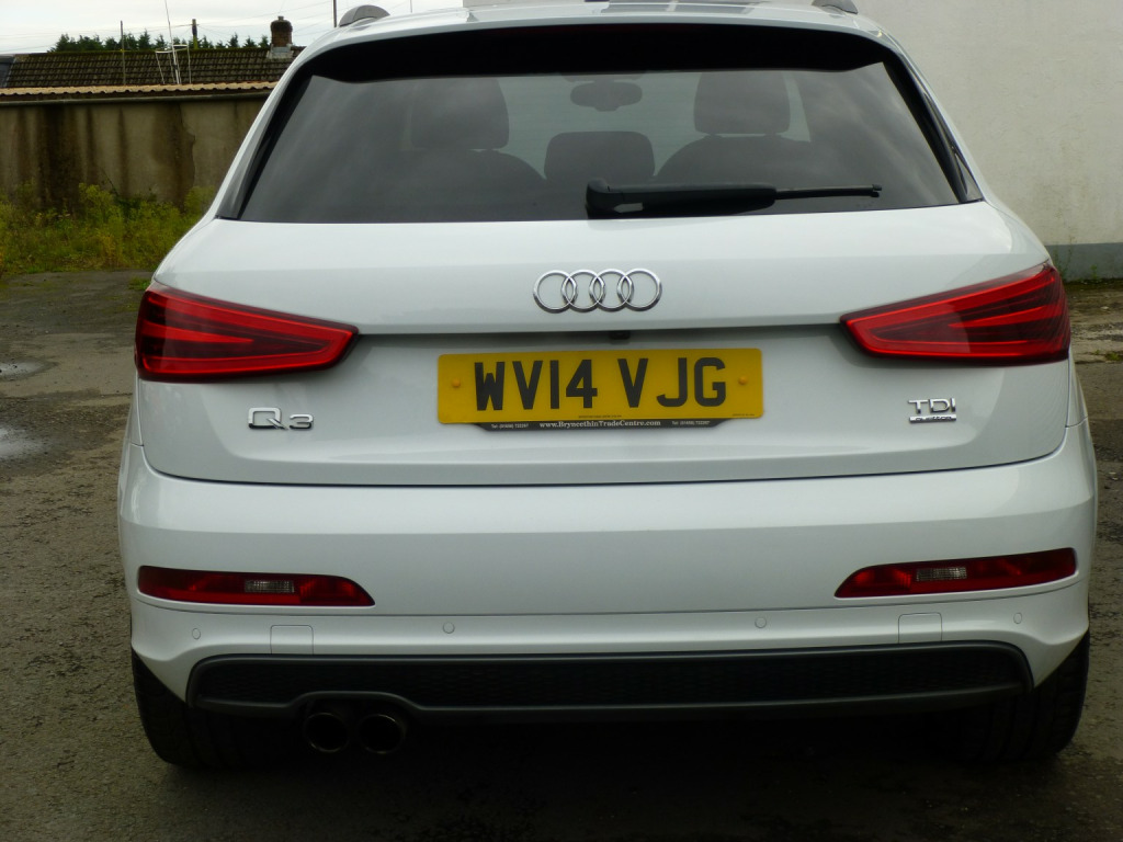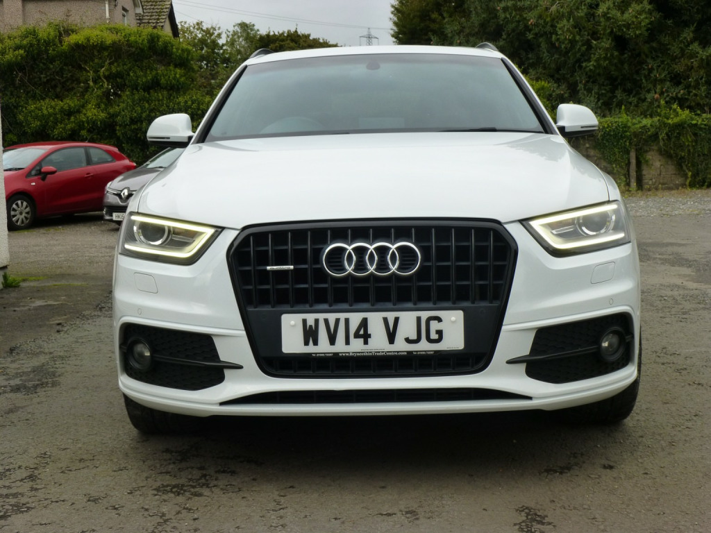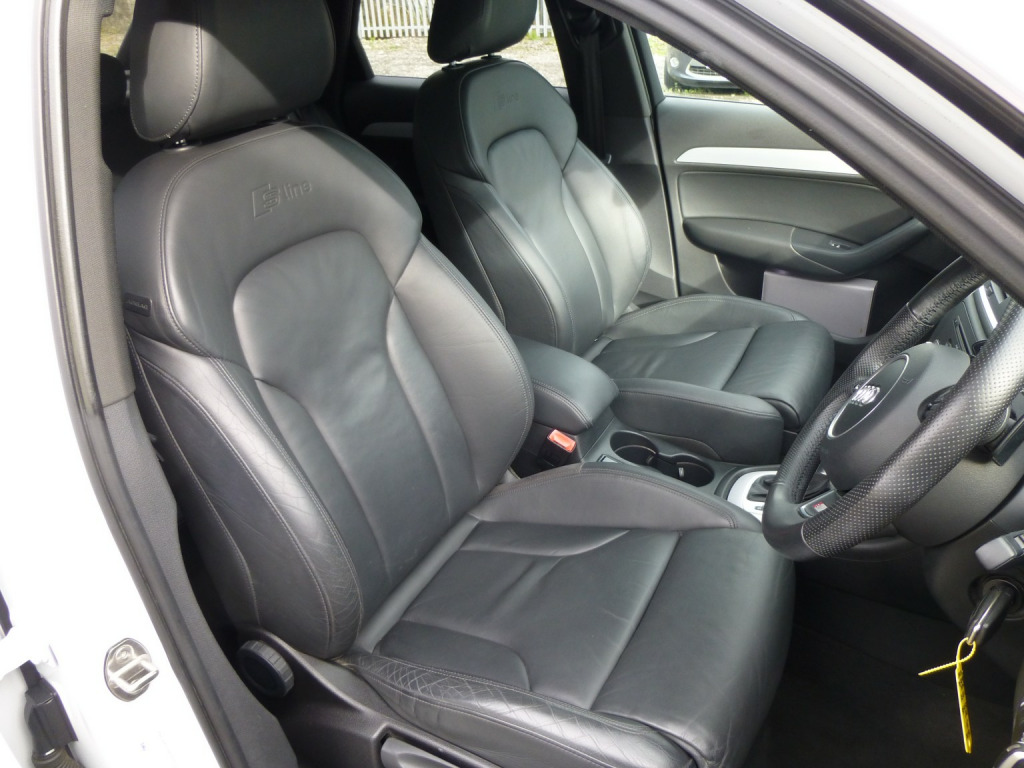 audi q3 2.0 tdi 177 bhp quattro  s-line plus edition 7 spd s-tronic autonatic transsmission euro5 suv,stunning looking q3,fully loaded with factory goodies,such as, 2V Power Socket in the Rear Centre Console,6.5 inch colour Display Screen,[AMI] Audi Music interface MP3/CD Player,, DAB Digital Radio,Full European Map Data,Mobile Telephone Preparation,Bluetooth Interface,Preparation for SD Card-Based Navigation System,SDHC Card Reader x2,Satellite Navigation System  [SD Card Based],8 x Speakers,Towbar Preparation,Cruise Control, [dis] Drivers Information System ,Efficiency Program in the Drivers Information System,front Parking Sensor,Rear Parking Sensors,[tps] Tyre Pressure Monitoring System,telephone Voice Control,19 inch Alloy Wheels 5-Segment spoke Design with 4 x matching pirelli pzero tyres,[led] Brake Lights,full S Line Design bodykit, Diffuser Insert and Centre Front Spoiler Lip Painted in Platinum Grey,Body Coloured door mirrors with Integrated LED Indicators Electrically Adjustable and Heated,Electric Windows x4,chrome plated Exhaust Tailpipe,Full colour coded Paint Finish,Heated Windscreen Washer Jets,[LED] Rear Indicators,Privacy Glass,Radiator Grille with Vertical gloss black Bars,black Roof Rails ,S Line Badges on Front Wings,S Line Body Styling,Sunband for Windscreen window surrounds and beltline in gloss black,Front Fog Lights,Automatic headlight  Activation with Automatic Adjustment,Headlights with Automatic Dynamic Range Control and Bi-Xenon Plus with coming and leaving home function,Headlight power Washers,[LED] Daytime Running Lights,7-Digit Postcode Recognition,Auto-Dimming Rear-View Mirror,Automatic Wipers with Rain Sensor,black Cloth Headlining,Door Sill Trims with S Line Logo,Dual-Zone Electronic Climate Control and air conditioning,Electrically Adjustable 4-Way Lumbar Support,Front and Rear floor mats in Velour,Folding Storage Compartment in Front Centre Armrest adjustable Front Centre Armrest,Perforated Leather gear knob,Ventilated glove box,Matt Brushed Aluminium inlays,Rear air vents in rear centre console,Reversible Luggage Compartment Floor,frpnt Drivers Manual Height Adjustment,Front Sports S Line Embossed,full leather upholstery,Split-Folding Rear leather Seats,Stainless Steel Loading Sill Protector,3-Spoke Leather Trimmed Sports Steering Wheel with Gear-Shift Paddles,Steering Wheel Height and Reach Adjustable,Multi-function steering wheel,TP Memo Automatically Saves Traffic news, Dynamic Suspension,[EDL] Electronic Differential Lock,Electromechanical Power Steering,[ABS] mAnti-Lock Braking System,[ASR] Anti Slip Regulation,Thatcham Category,Audi Parking System Plus,[EBD] Electronic Brakeforce Distribution,[ESP] Electronic Stability Programme Front Passenger Airbag Deactivation Switch,ISOFIX Child Seat Mounting for Front Passenger,ISOFIX Child Seat Preparation for Rear Seats with Top Tether,Remote Central Locking with 2 Fold Away Keys,panoramic glass sunroof,7 spd s-tronic silky smooth automatic transmission,looks and drives superb,not a black edition but the next best thing,106,000 with service history,current mot till june 2026, fully colour coded in audis nice and bright [s9r] glacier white metallic, , , , , , , , , , , , , hpi report available on all vehicles , ,