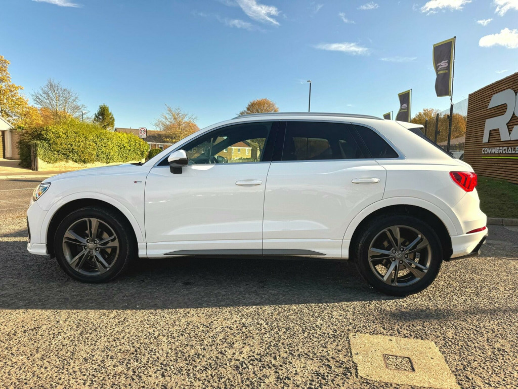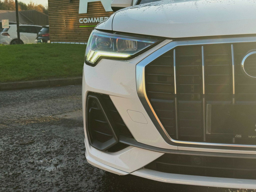 This 2019 Audi Q3 TDI S line offers an impressive blend of style and practicality, making it a superb choice for those seeking a premium compact SUV. Powered by an efficient 2.0 litre Euro 6 diesel engine, this model delivers a strong performance while maintaining a commendable fuel economy of 47 miles per gallon. The S line trim enhances its sporty appeal, and you'll find convenience features such as rear parking sensors to aid manoeuvring, dual zone electronic climate control for personalised comfort, and a Bluetooth interface for seamless connectivity. The intelligent light and rain sensor system automatically adjusts headlights and wipers, while the striking LED headlights with dynamic rear indicators ensure excellent visibility and a distinctive presence.Beyond its sophisticated features, this Audi Q3 stands out with its generous boot space, offering ample room for luggage, shopping, or sports equipment. Its low CO2 emissions highlight its environmental consideration, making it a more responsible choice. These aspects, combined with its efficient diesel engine and the overall quality associated with the Audi brand, indicate that this Q3 is designed to offer a superior driving experience compared to many other vehicles in its class. in alloy wheels - 5-twin-spoke dynamic, 3-spoke leather multi-function steering wheel - s badging and grips in perforated leather with contrast stitching, 6 passive loud speakers, 6-airbag system, adjustable rear seat bench-backrest with centre armrest and cupholder, aluminium roof rails, aluminium window trims, ambient lighting pack, anti theft locking wheel bolts, anti-theft alarm, audi connect infotainment services plus (3 year subscription from new), audi connect safety and service - e-call, audi drive select, audi pre-sense front with pedestrian and cyclist recognition, audi side assist, audi smartphone interface, audi virtual cockpit - 10.25in display, auto dimming and frameless rear view mirror, b and c-pillar trim in high-gloss black, bluetooth interface, body coloured door mirrors, bumpers in full body colour paint finish, cloth headlining in black, cruise control system with speed limiter, dab digital radio, detail in dashboard around the mmi touch colour display, diffuser - platinum grey - matt, door mirrors - electrically adjustable and heated with integrated led side indicators, door sill trims with aluminium inlay, dual-zone electronic climate control, esc - electronic stabilisation control inc abs - asr and edl, first aid kit and warning triangle, frame of front side air inlets in platinum grey - matt, front centre armrest, front spoiler blade in platinum grey - matt, front sport seats with s embossed logo, front and rear floor mats in black with contrast stitching in rock grey, gear knob - perforated leather, grille vertical bars in aluminium silver - matt, hold assist, isofix child seat mounting for the front passenger seat with front passenger airbag deactivation and isofix child seat mounting and top tether for the outer rear seats, illuminated door sill trims with s logo, inlays - matt brushed aluminium - dark, interior elements in leatherette, led headlights with led daytime running lights and dynamic rear indicator, led rear lights, lane departure warning, light and rain sensor, luggage compartment sill protection in stainless steel, mmi navigation plus with high resolution 10.1in touchscreen colour display, manual seat adjustment for front seats, non-smoking package, pedals in stainless steel, power operated tailgate, pre-sense basic, privacy glass, progressive steering, radiator grille - titanium black, rear parking sensors, s line badges on the front wings, s line front and rear bumpers and side skirts, seat belt monitoring, side skirt insert in platinum grey - matt, sport suspension, tool kit, tow bar preparation, tyre pressure warning light, tyre repair kit, voice control system with natural language interaction, windscreen with acoustic glazing