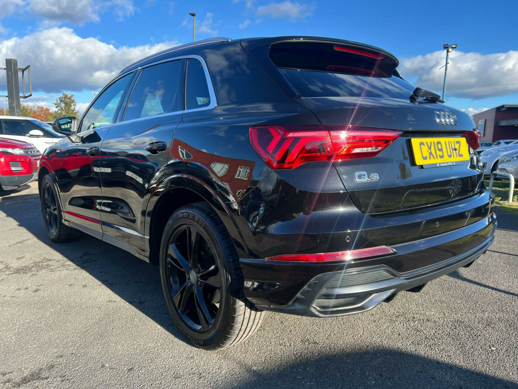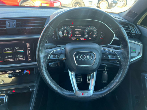 This 2019 Audi Q3 TDI S line presents an exceptional opportunity with  52,000  complemented by a full service history and a clear vehicle history check. This Euro 6 compliant model boasts a 2.0 litre diesel engine, offering an impressive fuel economy of 47 miles per gallon. Inside, you'll find a host of desirable features including rear parking sensors for easier manoeuvring, a Bluetooth interface for seamless connectivity, and dual-zone electronic climate control to ensure comfort for all occupants. The convenience continues with automatic headlights activated by the light and rain sensor, and striking LED headlights with LED daytime running lights and dynamic rear indicators.The Audi Q3 TDI S line is designed to impress, offering a large boot space perfect for all your needs, whether it's for daily errands or weekend getaways. Its low CO2 emissions further highlight its efficiency and environmental consideration. These factors, combined with its excellent fuel economy of 47 mpg, demonstrate how this Q3 stands out from other vehicles in its class, providing a more economical and practical ownership experience.. 19in Alloy Wheels - 5-Twin-Spoke Dynamic, 3-Spoke Leather Multi-Function Steering Wheel - S Badging and Grips in Perforated Leather with Contrast Stitching, 6 Passive Loud Speakers, 6-Airbag System, Adjustable Rear Seat Bench-Backrest with Centre Armrest and Cupholder, Aluminium Roof Rails, Aluminium Window Trims, Ambient Lighting Pack, Anti Theft Locking Wheel Bolts, Anti-Theft Alarm, Audi Connect Infotainment Services Plus (3 Year Subscription From New), Audi Connect Safety and Service - e-call, Audi Drive Select, Audi Pre-Sense Front with Pedestrian and Cyclist Recognition, Audi Side Assist, Audi Smartphone Interface, Audi Virtual Cockpit - 10.25in Display, Auto Dimming and Frameless Rear View Mirror, B and C-Pillar Trim in High-Gloss Black, Bluetooth Interface, Body Coloured Door Mirrors, Bumpers in Full Body Colour Paint Finish, Cloth Headlining in Black, Cruise Control System with Speed Limiter, DAB Digital Radio, Detail in Dashboard Around the MMI Touch Colour Display, Diffuser - Platinum Grey - Matt, Door Mirrors - Electrically Adjustable and Heated with Integrated LED Side Indicators, Door Sill Trims with Aluminium Inlay, Dual-Zone Electronic Climate Control, ESC - Electronic Stabilisation Control inc ABS - ASR and EDL, First Aid Kit and Warning Triangle, Frame of Front Side Air Inlets in Platinum Grey - Matt, Front Centre Armrest, Front Spoiler Blade in Platinum Grey - Matt, Front Sport Seats with S Embossed Logo, Front and Rear Floor Mats in Black with Contrast Stitching in Rock Grey, Gear Knob - Perforated Leather, Grille Vertical Bars in Aluminium Silver - Matt, Hold Assist, ISOFIX Child Seat Mounting for the Front Passenger Seat with Front Passenger Airbag Deactivation and ISOFIX Child Seat Mounting and Top Tether for the Outer Rear Seats, Illuminated Door Sill Trims with S Logo, Inlays - Matt Brushed Aluminium - Dark, Interior Elements in Leatherette, LED Headlights with LED Daytime Running Lights and Dynamic Rear Indicator, LED Rear Lights, Lane Departure Warning, Light and Rain Sensor, Luggage Compartment Sill Protection in Stainless Steel, MMI Navigation Plus with High Resolution 10.1in Touchscreen Colour Display, Manual Seat Adjustment for Front Seats, Non-Smoking Package, Pedals in Stainless Steel, Power Operated Tailgate, Pre-Sense Basic, Privacy Glass, Progressive Steering, Radiator Grille - Titanium Black, Rear Parking Sensors, S Line Badges on the Front Wings, S line Front and Rear Bumpers and Side Skirts, Seat Belt Monitoring, Side Skirt Insert in Platinum Grey - Matt, Sport Suspension, Tool Kit, Tow Bar Preparation, Tyre Pressure Warning Light, Tyre Repair Kit, Voice Control System with Natural Language Interaction, Windscreen with Acoustic Glazing. Full service history
