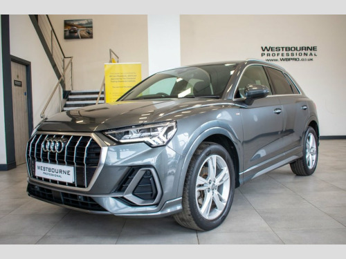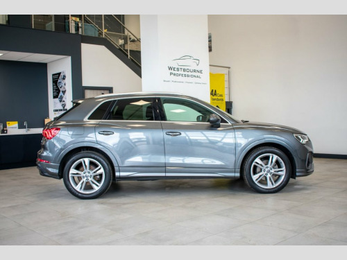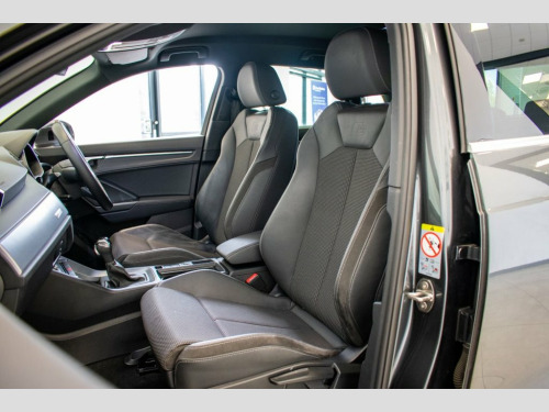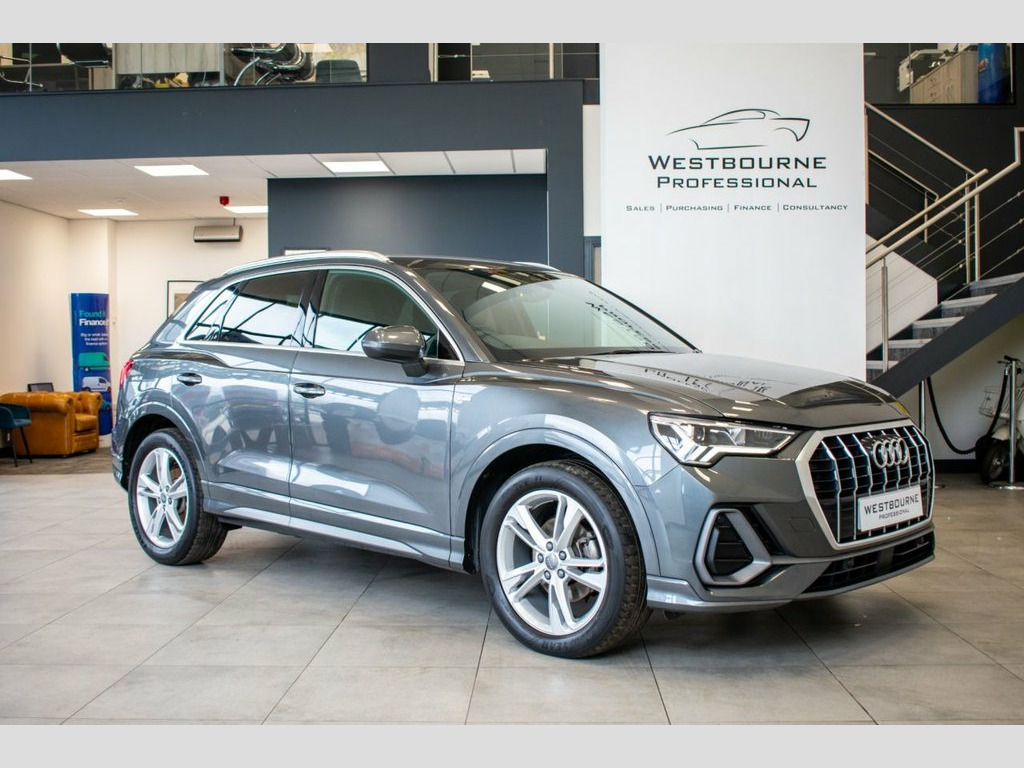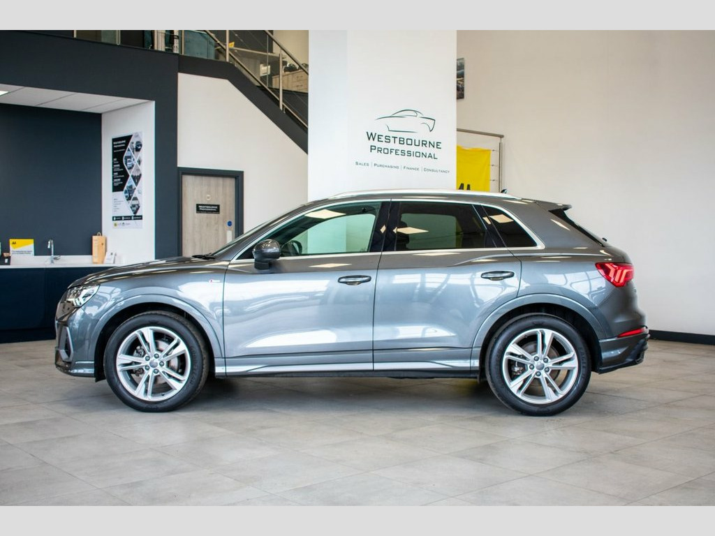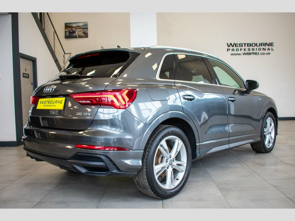 2020 '20' Audi Q3 2.0 TDI 35 S Line, finished in Daytona Grey with Black Half Leather interior. Equipped with excellent specification including Audi Virtual Cockpit, MMI Satellite Navigation System, Wireless Smartphone Interface for Apple CarPlay / Android Auto, Power Tailgate, Automatic LED Headlights, Cruise Control, Front & Rear Parking Sensors, Heated Power Folding Mirrors, Leather Multifunction Steering Wheel, Automatic Dual Zone Climate Control, Audi Drive Select, DAB Radio, Bluetooth Telephone & Audio Connectivity, Folding Tow Bar and more. 1 x USB-C and 1 x USB-A Port with Charge, 19in Alloy Wheels - 7.0J 5-Twin-Spoke - , 3-Spoke Leather Multi-Function Steering , 6 Passive Loud Speakers, 6-Airbag System, Adjustable Rear Seat Bench-Backrest with, Aluminium Look Interior Elements, Aluminium Roof Rails, Aluminium Window Trims, Ambient Lighting Pack, Anti Theft Locking Wheel Bolts, Anti-Theft Alarm, Audi Connect Infotainment Services Plus , Audi Connect Safety and Service - e-call, Audi Drive Select, Audi Pre-Sense Basic, Audi Pre-Sense Front with Pedestrian and, Audi Side Assist, Audi Smartphone Interface includes Wirel, Audi Virtual Cockpit - 10.25in Display, Auto Dimming and Frameless Rear View Mir, B and C-Pillar Trim in High-