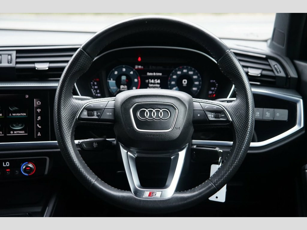 Prestige Car Supermarket in York presents this highly capable and attractive 2019 Audi Q3 2.0 TDI 35 S line SUV. Finished in Chronos Grey metallic paint, a desirable factory option costing £575.00, and featuring a luxurious Black Alcantara Frequency-Twin Leather interior with Rock Grey Stitching, this automatic diesel SUV offers a dynamic and refined driving experience. It rides on 19in 5-Twin-Spoke Dynamic alloy wheels and features S line Exterior Styling with Aluminium Roof Rails and Window Trims. Illumination is provided by LED Headlights with LED Daytime Running Lights and Dynamic Rear Indicators. Step inside the highly appointed cabin to find Sport Seats with S Embossing, a 3-Spoke Leather Multi-Function Steering Wheel, and Dual-Zone Electronic Climate Control. Technology is comprehensive with MMI Navigation Plus with a 10.1in Touchscreen, Audi Virtual Cockpit, and a Voice Control System. Convenience is a priority with Rear Parking Sensors, a Power Operated Tailgate, and Electrically Folding, Adjustable, and Heated Door Mirrors. Safety and driver assistance systems are extensive, including Audi Pre-Sense Front, Lane Departure Warning, and a Tyre Pressure Warning Light, ensuring a secure and confident drive. Alcantara Frequency-Twin Leather - Sport, Chronos Grey, 1 x USB-C and 1 x USB-A Port with Charge, 19in Alloy Wheels - 5-Twin-Spoke Dynamic, 3-Spoke Leather Multi-Function Steering , 6 Passive Loud Speakers, 6-Airbag System, Adjustable Rear Seat Bench-Backrest with, Aluminium Look Interior Elements, Aluminium Roof Rails, Aluminium Window Trims, Ambient Lighting Pack, Anti Theft Locking Wheel Bolts, Anti-Theft Alarm, Audi Connect Infotainment Services Plus , Audi Connect Safety and Service - e-call, Audi Drive Select, Audi Pre-Sense Front with Pedestrian and, Audi Side Assist, Audi Smartphone Interface Includes Wirel, Audi Virtual Cockpit - 10.25in Display, Auto Dimming and Frameless Rear View