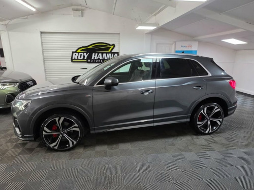 A truly beautiful 2019 Audi Q3 S Line ready for viewing at Roy Hanna Motors! 2 Owners from new. 3 services on service history we will cover next mot if it fails under our 6 month warranty This jeep is in lovely condition both inside and out, looks very smart, we have it fully serviced and checked over ready to drive away. **Brand new Alloy Wheels & Tyres shown in pictures are an optional extra £900 ** * We have a variety of wheels to chose from for each vehicle* This model is packed full of factory extras like - ~ MMI - Multi Media Interface control system. ~ Comfort & sound pack. ~ Heated seats. ~ Front & rear parking sensors. ~ Reverse camera. ~ Audi Virtual Cockpit - 10.25" display. ~ Information display system. ~ Audi music interface. ~ Optional rear tinted windows. ~ Front fog lights. ~ Front sports seats. ~ Twin exhaust tailpipe. ~ Multi Media Interface control system. ~ Remote electric boot opening/closing. ~ Voice control system. ~ Remote central locking. ~ Climate and traction controls. ~ Steering wheel mounted controls. ~ AUX & USB connectivity. ~ CD/Radio Player. ~ Body Coloured Bumpers. ~ Electric windows. *We Have Many Different Finance HP & PCP Deals Available To Suit Your Budget, You Can Drive Away In Your New Car With £0 Deposit & Pay Nothing For 2 Full Months! *For A Personalised Quote Give Us A PM / Text / Call Or Propose Yourself For Finance On Our Website *All Usual Dealer Facilities Available. *Credit/De 19in Alloy Wheels - 5-Twin-Spoke Dynamic, 3-Spoke Leather Multi-Function Steering , 6 Passive Loud Speakers, 6-Airbag System, Adjustable Rear Seat Bench-Backrest with, Aluminium Roof Rails, Aluminium Window Trims, Ambient Lighting Pack, Anti Theft Locking Wheel Bolts, Anti-Theft Alarm, Audi Connect Infotainment Services Plus , Audi Connect Safety and Service - e-call, Audi Drive Select, Audi Pre-Sense Front with Pedestrian and, Audi Side Assist, Audi Smartphone Interface, Audi Virtual Cockpit - 10.25in Display, Auto Dimming and Frameless Rear View Mir, B and C-Pillar Trim in High-Gloss Black, Bluetooth Interface, Body Coloured Door Mirrors, Bumpers in Full Body Colour Paint Finish, Cloth Hea