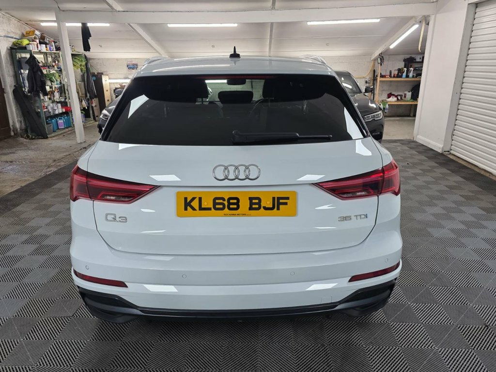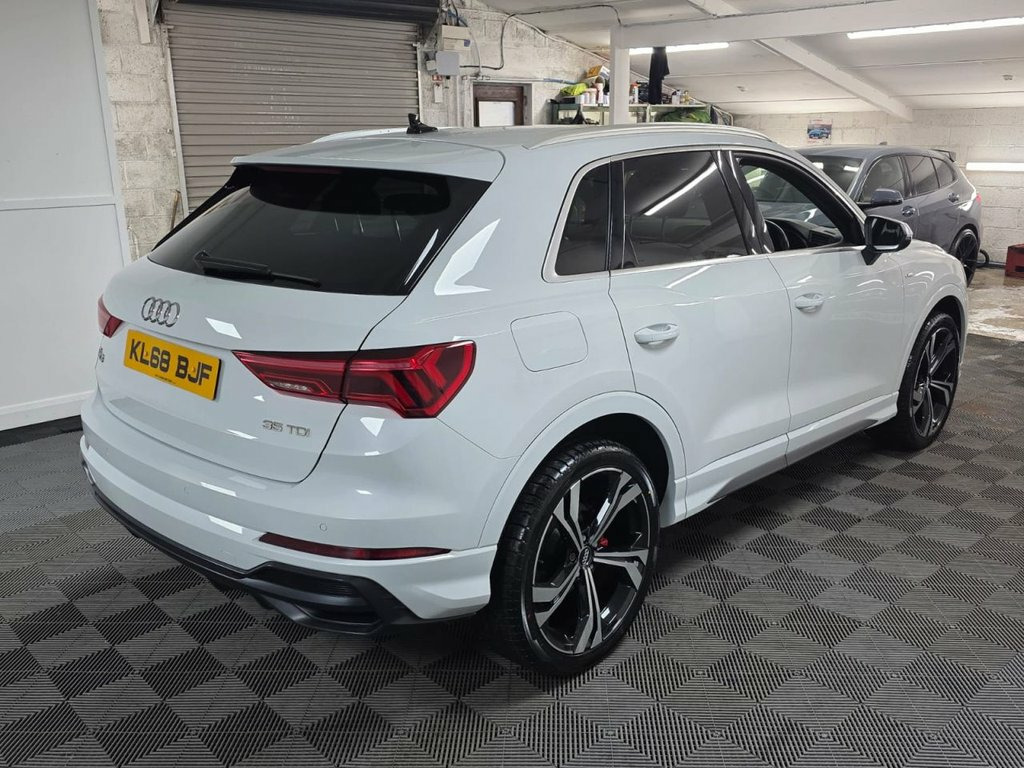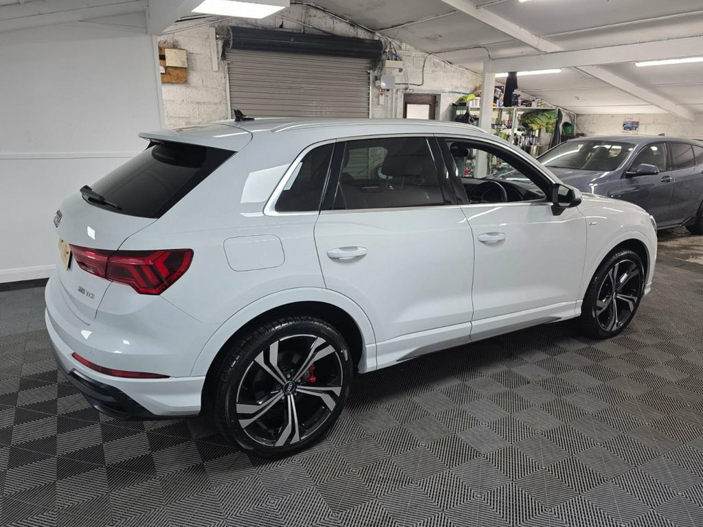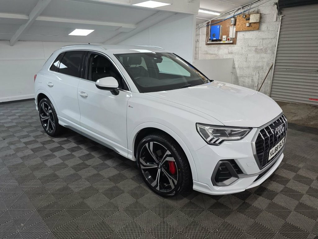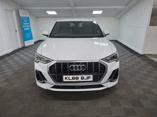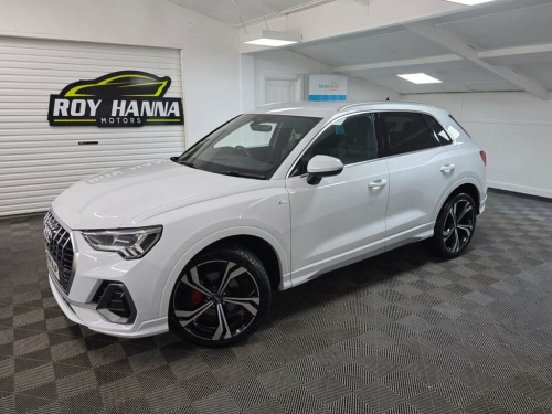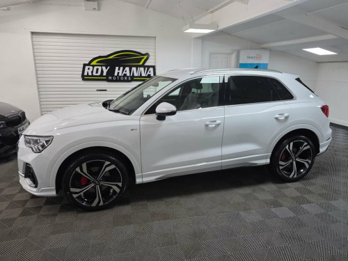 A beautiful 2019 Audi Q3 S Line ready for viewing at Roy Hanna Motors! 2 keys 4 services on service history Glacier White, metallic we will put 1 years mot on jeep Upgraded Bang & Olufsen speakers This jeep is in lovely condition both inside and out, looks very smart, we have it fully serviced and checked over ready to drive away. **Brand new Alloy Wheels & Tyres shown in pictures are an optional extra £900 ** * We have a variety of wheels to chose from for each vehicle* This model is packed full of factory extras like - ~ MMI - Multi Media Interface control system. ~ Comfort & sound pack. ~ Heated seats. ~ Front & rear parking sensors. ~ Reverse camera. ~ Audi Virtual Cockpit - 10.25" display. ~ Information display system. ~ Audi music interface. ~ Optional rear tinted windows. ~ Front fog lights. ~ Front sports seats. ~ Twin exhaust tailpipe. ~ Multi Media Interface control system. ~ Remote electric boot opening/closing. ~ Voice control system. ~ Remote central locking. ~ Climate and traction controls. ~ Steering wheel mounted controls. ~ AUX & USB connectivity. ~ CD/Radio Player. ~ Body Coloured Bumpers. ~ Electric windows. *We Have Many Different Finance HP & PCP Deals Available To Suit Your Budget, You Can Drive Away In Your New Car With £0 Deposit & Pay Nothing For 2 Full Months! *For A Personalised Quote Give Us A PM / Text / Call Or Propose Yourself For Finance On Our Website *All Usual Dealer Facilities Availab 19in Alloy Wheels - 5-Twin-Spoke Dynamic, 3-Spoke Leather Multi-Function Steering , 6 Passive Loud Speakers, 6-Airbag System, Adjustable Rear Seat Bench-Backrest with, Aluminium Roof Rails, Aluminium Window Trims, Ambient Lighting Pack, Anti Theft Locking Wheel Bolts, Anti-Theft Alarm, Audi Connect Infotainment Services Plus , Audi Connect Safety and Service - e-call, Audi Drive Select, Audi Pre-Sense Front with Pedestrian and, Audi Side Assist, Audi Smartphone Interface, Audi Virtual Cockpit - 10.25in Display, Auto Dimming and Frameless Rear View Mir, B and C-Pillar Trim in High-Gloss Black, Bluetooth Interface, Body Coloured Door Mirrors, Bumpers in Full Body Colour Paint Finish, Cloth Hea