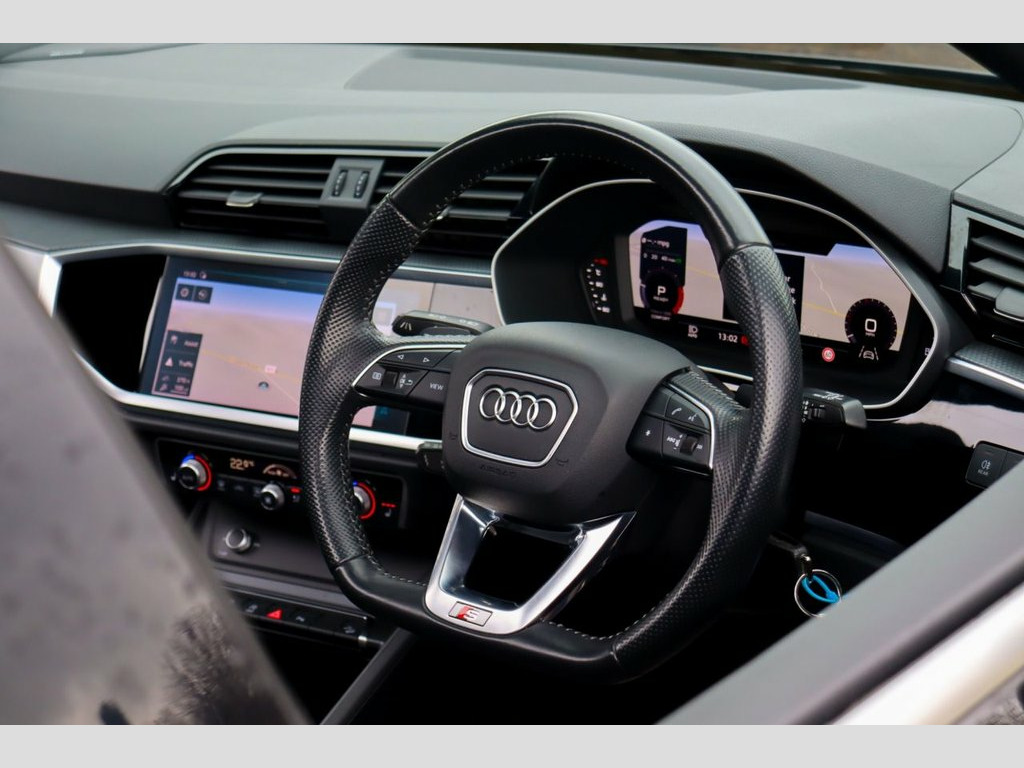 2020 Audi Q3 2.0 35 TDI S-Line S-Tronic 150BHP Full Audi Service History, Comfort + Sound Pack! Mythos Black with a Fully Loaded Spec to Include the Panoramic Sunroof, Heated Leather, Reversing Camera and Bang and Olufsen Sound! No additional Duty to ROI, VRT is €4700 - Sold with a Full Years MOT - Cruise Control - Parking Sensors - Auto Headlights - Heated Leather - Reversing Camera - Bang and Olufsen Sound - Apple CarPlay - Parking Sensors - Self Opening / Closing Boot - Sat Nav Alloy Wheels are Optional Extra £995 No additional Duty to ROI, VRT is €4700 Finance options available with £0 deposit Part exchange welcome Check us out on Facebook, Instagram and Google reviews 1 x USB-C and 1 x USB-A Port with Charge, 19in Alloy Wheels - 5-Twin-Spoke Dynamic, 3-Spoke Leather Multi-Function Steering , 6 Passive Loud Speakers, 6-Airbag System, Adjustable Rear Seat Bench-Backrest with, Aluminium Look Interior Elements, Aluminium Roof Rails, Aluminium Window Trims, Ambient Lighting Pack, Anti Theft Locking Wheel Bolts, Anti-Theft Alarm, Audi Connect Infotainment Services Plus , Audi Connect Safety and Service - e-call, Audi Drive Select, Audi Pre-Sense Front with Pedestrian and, Audi Side Assist, Audi Smartphone Interface Includes Wirel, Audi Virtual Cockpit - 10.25in Display, Auto Dimming and Frameless Rear View Mir, B and C-Pillar Trim in High-Gloss Black, Bluetooth