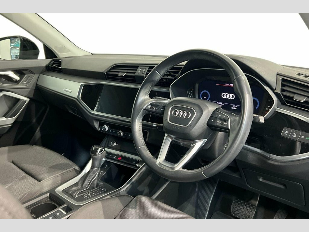 This 2020 Audi Q3 TDI Sport boasts an MOT valid until October 2026, offering excellent peace of mind for the new owner. This stylish SUV features a 2.0 litre Euro 6 diesel engine, combining efficiency with performance. The Sport trim level includes the Audi Smartphone Interface, bringing Wireless Apple CarPlay and Android Auto seamlessly into your drive, alongside a Bluetooth Interface for easy connectivity. For convenience and safety, it is equipped with rear parking sensors and LED headlights with dynamic rear indicators, complemented by a light and rain sensor for automatic headlight activation. The Audi Q3 TDI Sport stands out with its impressive fuel economy, achieving up to 52 miles per gallon, which indicates it is more economical than many similar vehicles. Furthermore, its low CO2 emissions highlight its environmental consideration. This model also offers generous boot space, making it a practical choice for families or those who require ample storage. 18in Alloy Wheels - 7.0J 5-Double-Arm-Sp, 2 USB-C Ports with Charge and Data Funct, 3-Spoke Leather Multi-Function Steering , 6 Passive Loud Speakers, 6-Airbag System, Adjustable Rear Seat Bench-Backrest, Aluminium Look Interior Elements, Aluminium Roof Rails, Aluminium Window Trims, Anti Theft Locking Wheel Bolts, Anti-Theft Alarm, Audi Connect Infotainment Services Plus , Audi Connect Safety and Service - e-call, Audi Drive Select, Audi Pre-Sense Basic, Audi Pre-Sense Front with Pedestrian and, Audi Smartphone Interface includes Wirel, Audi Virtual Cockpit - 10.25in Display, Auto Dimming and Frameless Rear View Mir, B and C-Pillar Trim in High-Gloss Black, Bluetooth Interface, Body Coloure