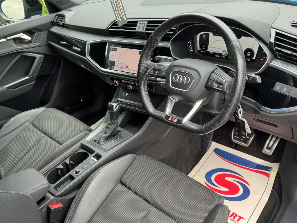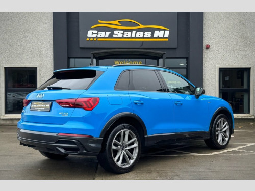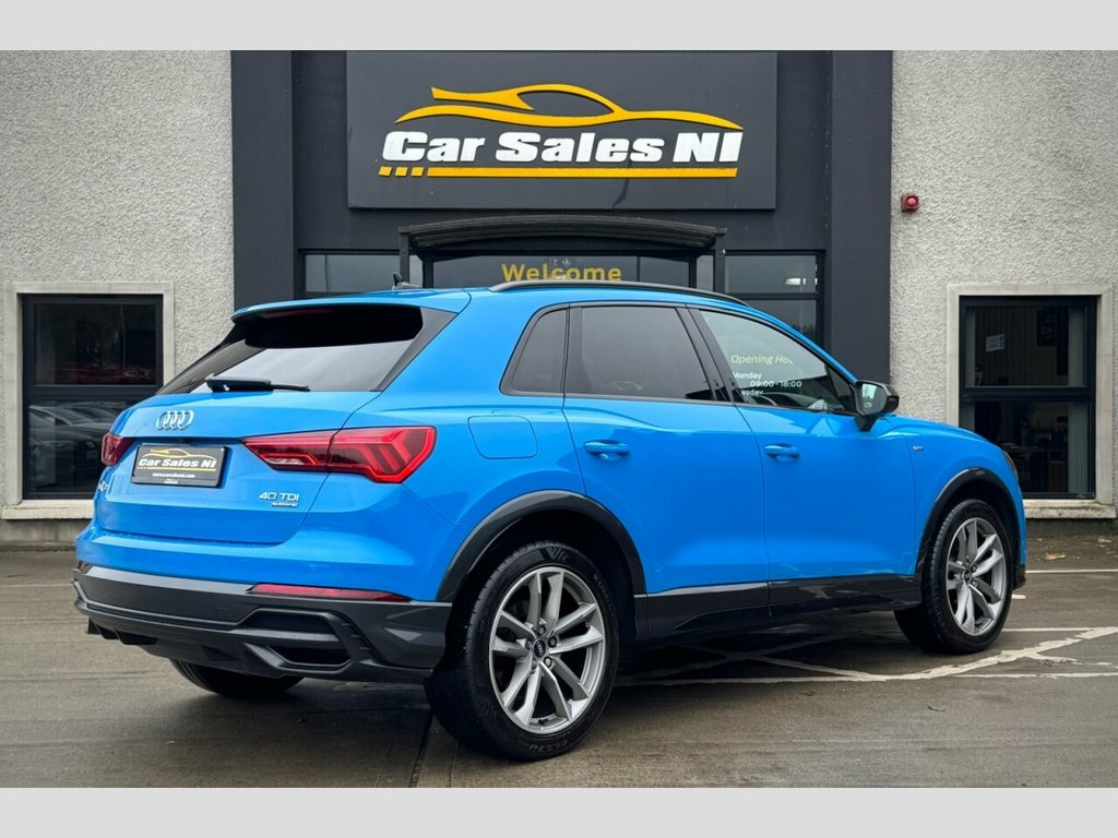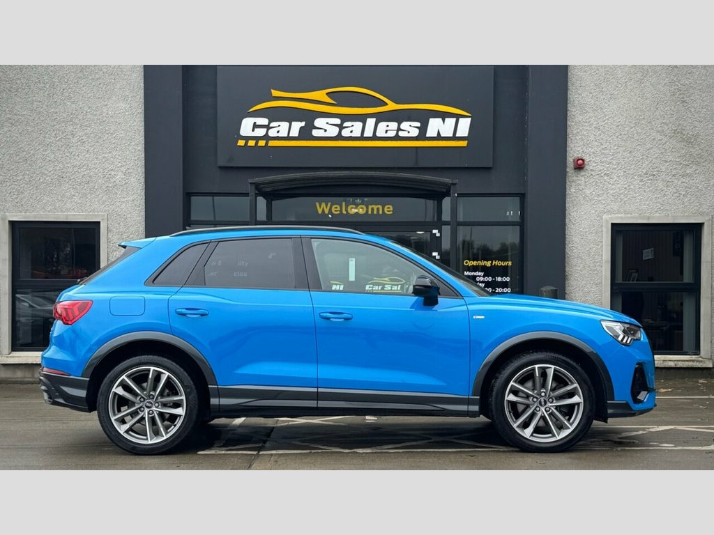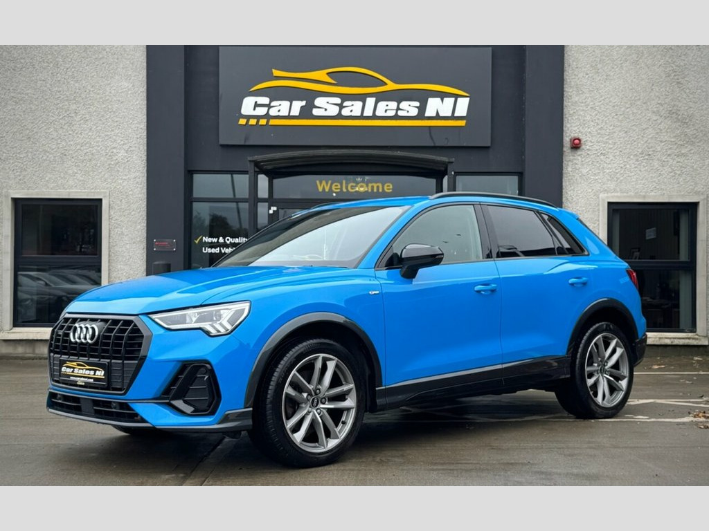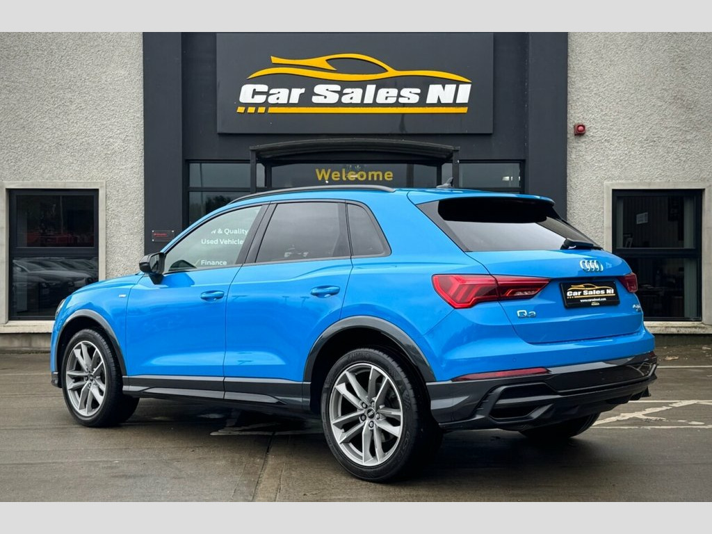 2022 AUDI Q3 BLACK EDITION QUATTRO 40 TDI 197 BHP 1 Owner from new, 2.0 Diesel Model, Covered 55k miles, Finished in Turbo Blue, Key Features include: 19'' Factory fitted alloy wheels Rear Privacy glass Factory Black Edition Styling Front and Rear Parking sensors Reversing Camera Half Leather S Line interior Flat Bottom S Line steering wheel Paddle shift Heated front seats Dual Climate control Virtual cockpit DAB Radio / Bluetooth / Sat Nav Apple / Android Car Play AUDI Drive Mode Select ISOFIX Child seat points And so much more... Call today to arrange a test drive Tailored finance packages available to suit your needs (Excludes ROI) Comprehensive warranty on all cars Trade ins welcome Delivery to North and South of Ireland if required 19in Alloy Wheels - 5-Twin-Arm Design in, 2 USB-C Ports with Charge and Data Funct, 6 Passive Loud Speakers, 6-Airbag System, Adjustable Rear Seat Bench-Backrest with, Aluminium Look Interior Elements, Ambient Lighting Pack, Anti Theft Locking Wheel Bolts, Anti-Theft Alarm, Audi Connect Infotainment Services Plus , Audi Drive Select, Audi Pre-Sense Basic, Audi Pre-Sense Front with Pedestrian and, Audi Smartphone Interface includes Wirel, Audi Virtual Cockpit - 10.25in Display, Auto Dimming and Frameless Rear View Mir, B and C-Pillar Trim in High-Gloss Black, Black Roof Rails, Black Styling Package, Bluetooth Interface, Camera-Based Traffic Sign Recognition, Cloth Headlining in Black, Cruise