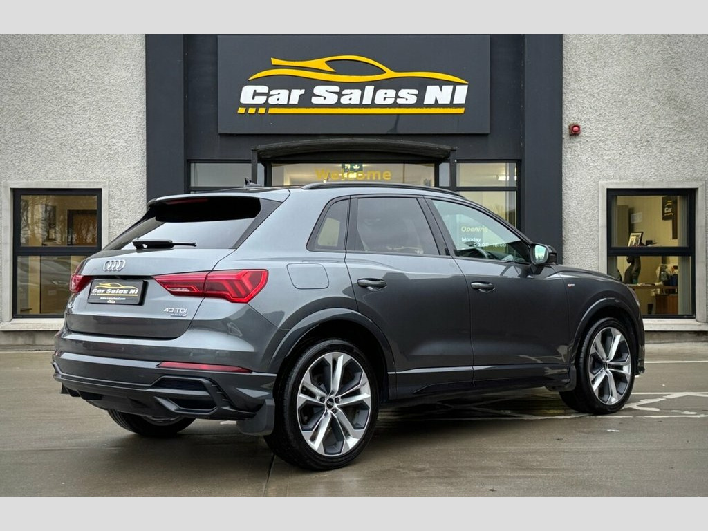 2022 AUDI Q3 BLACK EDITION 40 TDI QUATTRO 197 BHP 1 Owner from new, 2.0 Diesel Model, Covered 39k miles, Finished in Grey, Key Features include: 4x4 Wheel Drive 19'' Factory fitted alloy wheels Rear Privacy glass Factory Black Edition styling Front and Rear Parking sensors Reversing camera Half Leather S Line Interior Flat Bottom S Line steering wheel Heated front seats Dual Climate control Virtual cockpit DAB Radio / Bluetooth / Sat Nav Apple / Android Car Play AUDI Drive Mode Select Electronic Tailgate ISOFIX Child seat Points And so much more... Call today to arrange a test drive Tailored finance packages available to suit your needs Comprehensive warranty on all cars Trade ins welcome Delivery to North and South of Ireland if required 19in Alloy Wheels - 5-Twin-Arm Design in, 2 USB-C Ports with Charge and Data Funct, 6 Passive Loud Speakers, 6-Airbag System, Adjustable Rear Seat Bench-Backrest with, Aluminium Look Interior Elements, Ambient Lighting Pack, Anti Theft Locking Wheel Bolts, Anti-Theft Alarm, Audi Connect Infotainment Services Plus , Audi Drive Select, Audi Pre-Sense Basic, Audi Pre-Sense Front with Pedestrian and, Audi Smartphone Interface includes Wirel, Audi Virtual Cockpit - 10.25in Display, Auto Dimming and Frameless Rear View Mir, B and C-Pillar Trim in High-Gloss Black, Black Roof Rails, Black Styling Package, Bluetooth Interface, Camera-Based Traffic Sign Recognition, Cloth Headlining in Black, Cruise