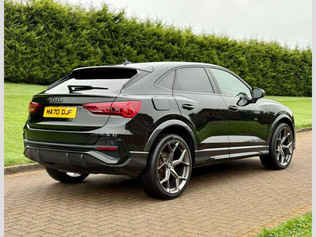 September 2020 Audi Q3 Sportback 40TDI Quattro Edition 1 S-Tronic in Mythos Black. Full Service History & MOT'd to November 2026. Loaded with spec including Full Leather Interior, Heated Seats, Virtual Cockpit, Flat Bottom Steering Wheel, 3D Navigation System, Bang & Olufsen Sound, Bluetooth, Cruise Control, LED Daytime Running Lights, Privacy Glass, Black Pack, DAB Radio, Central Armrest, Dual Climate Control etc. Fitted with Brand New 21" Alloys & Tyres (Optional Extra £1295) FINANCE AVAILABLE AT KEEN RATES Viewing by Appointment Only Please 1 x USB-C and 1 x USB-A Port with Charge, 20in Alloy Wheels - 8.5J 5-Twin-Spoke - , 4-Way Electric Lumbar Support, 6 Passive Loud Speakers, 6-Airbag System, Adjustable Rear Seat Bench-Backrest with, Aluminium Look Interior Elements, Anti Theft Locking Wheel Bolts, Anti-Theft Alarm, Audi Beam, Audi Connect Infotainment Services Plus , Audi Connect Safety and Service - e-call, Audi Drive Select, Audi Matrix LED Headlights with Dynamic , Audi Pre-Sense Basic, Audi Pre-Sense Front with Pedestrian and, Audi Side Assist, Audi Smartphone Interface includes Wirel, Audi Virtual Cockpit Plus, Auto Dimming and Frameless Rear View Mir, B and C-Pillar Trim in High-Gloss Black, Black Styling Package, Blue