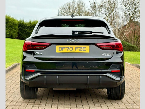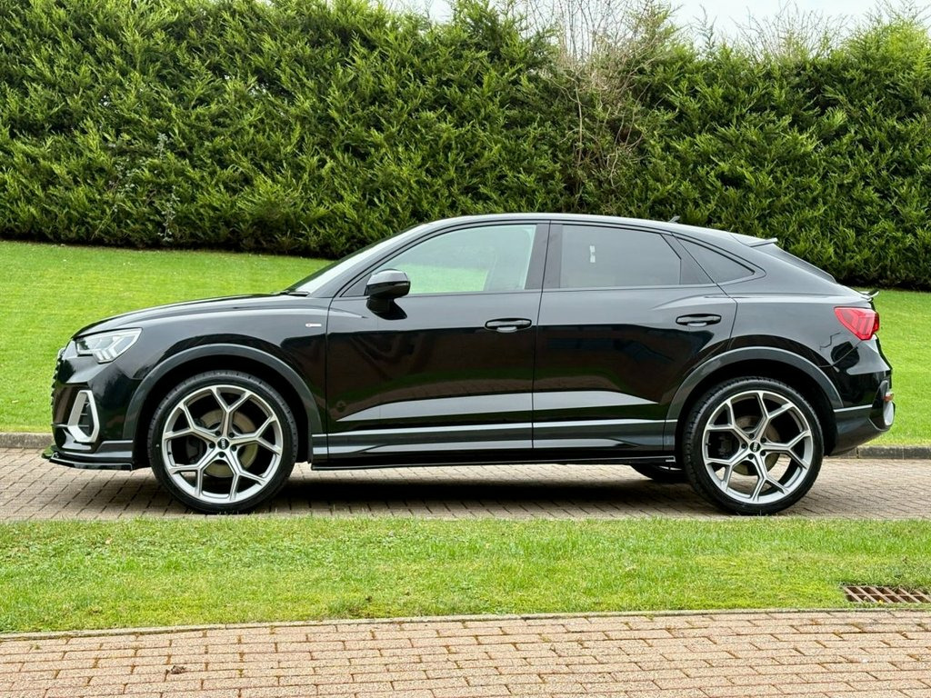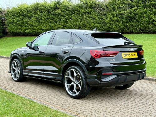 December 2020 Audi Q3 Sportback 40TDI 200 Quattro S-Line S-Tronic in Mythos Black. Full Service History & MOT'd to October 2026. Loaded with spec including Half Leather Interior, Virtual Cockpit, 3D Navigation System, Bluetooth, Cruise Control, LED Daytime Running Lights, Privacy Glass, Black Pack, DAB Radio, Central Armrest, Dual Climate Control, Aero Styling Kit etc. Fitted with Brand New 21" Alloys & Tyres (Optional Extra £1295) FINANCE AVAILABLE AT KEEN RATES Viewing by Appointment Only Please 19in Alloy Wheels - 7.0J 5-Twin-Spoke - , 2 USB-C Ports with Charge and Data Funct, 3-Spoke Leather Multi-Function Steering , 6 Passive Loud Speakers, 6-Airbag System, Adjustable Rear Seat Bench-Backrest with, Aluminium Look Interior Elements, Aluminium Window Trims, Ambient Lighting Pack, Anti Theft Locking Wheel Bolts, Anti-Theft Alarm, Audi Connect Infotainment Services Plus , Audi Connect Safety and Service - e-call, Audi Drive Select, Audi Pre-Sense Basic, Audi Pre-Sense Front with Pedestrian and, Audi Smartphone Interface includes Wirel, Audi Virtual Cockpit - 10.25in Display, Auto Dimming and Frameless Rear View Mir, B and C-Pillar Trim in High-Gloss Black, Bluetooth Interface, Body C